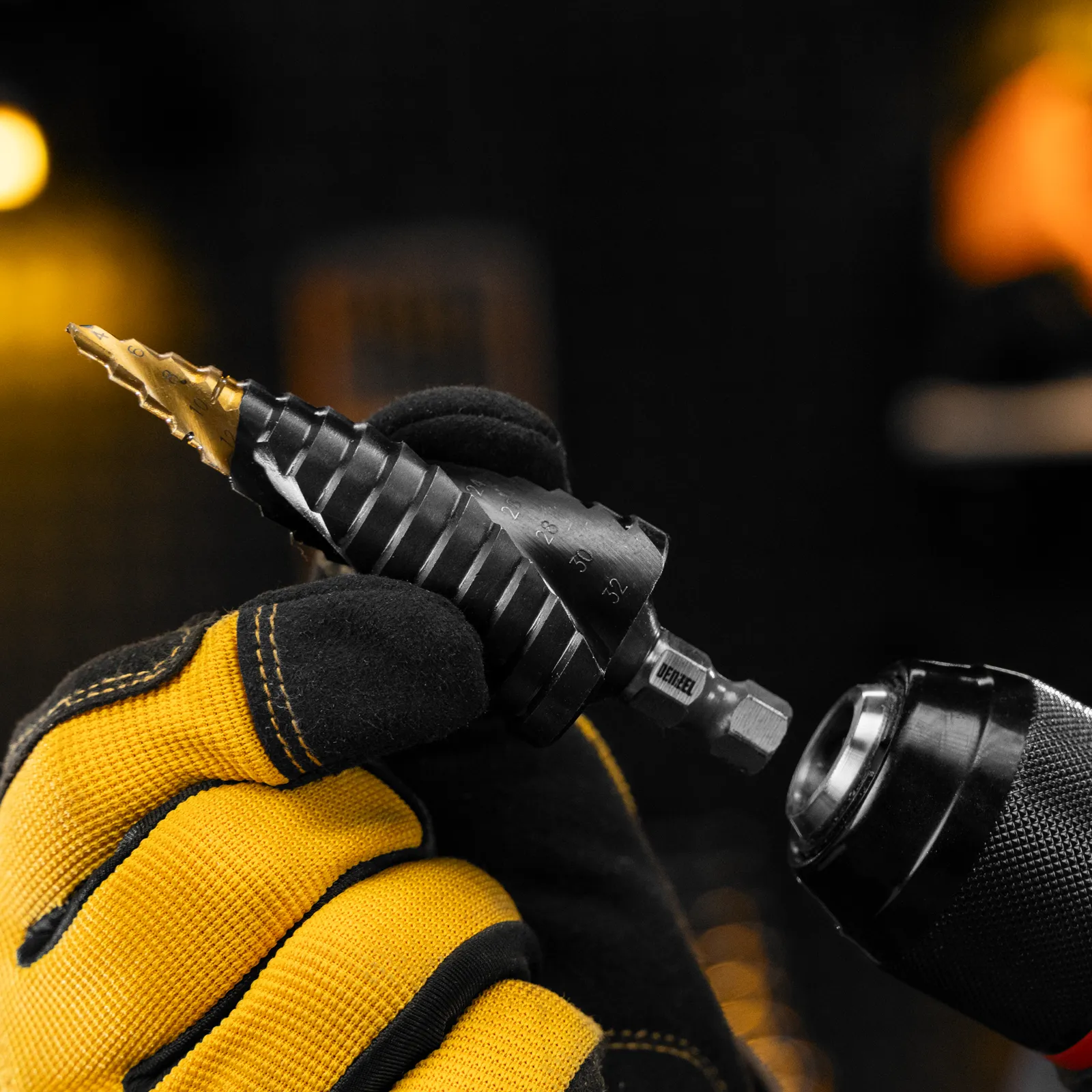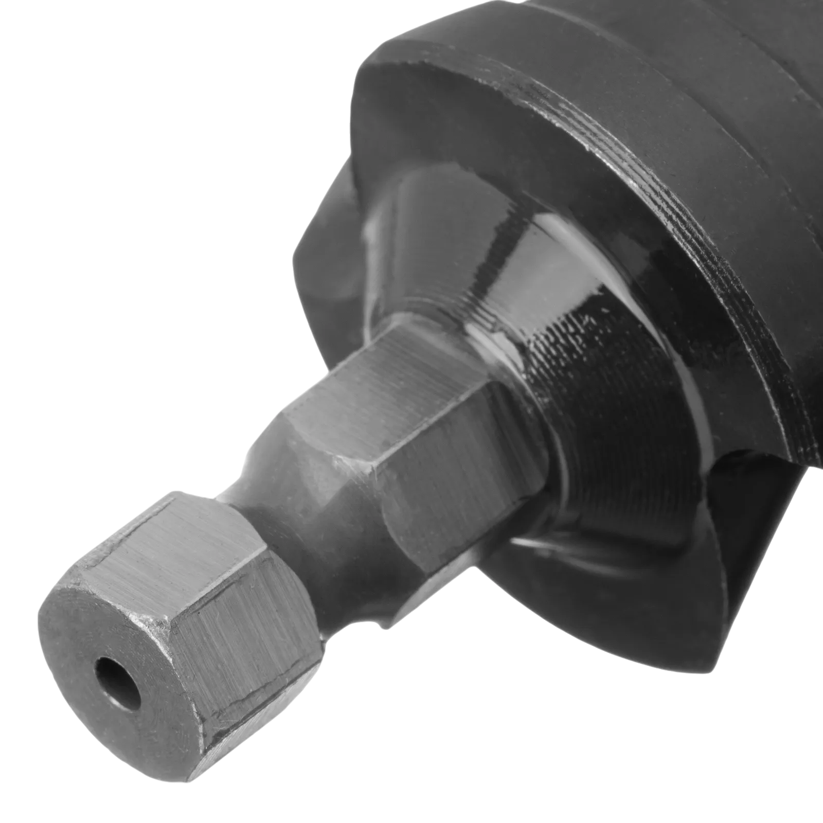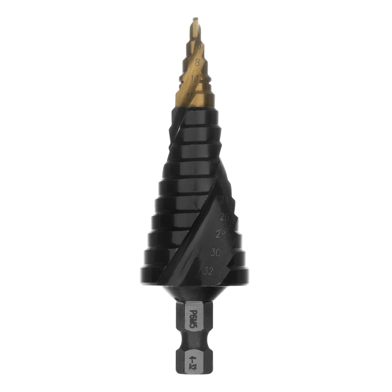 Ступенчатое сверло Denzel 723606 из стали P6M5, с 6-гранным хвостовиком, предназначено для сверления отверстий диаметром от 4 до 32 мм в сталях, цветных металлах и пластике. Избавляет от необходимости иметь при себе целый набор традиционных сверл. Позволяет получать отверстия с ровными краями и уже снятой фаской под гайку или болт. Оснастке присвоен класс точности A1. Сверло пригодится дома и в мастерской.