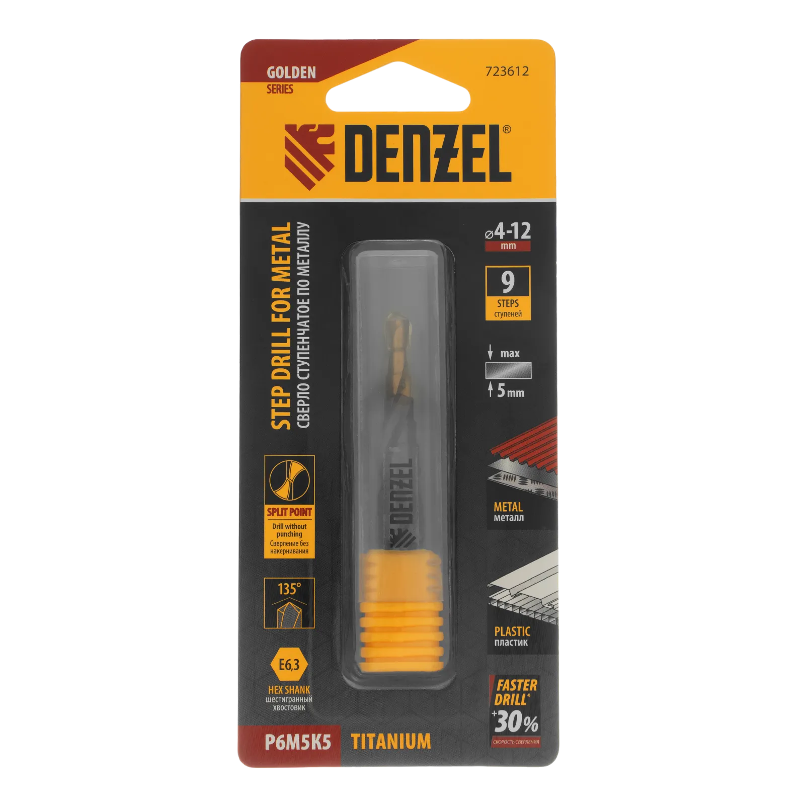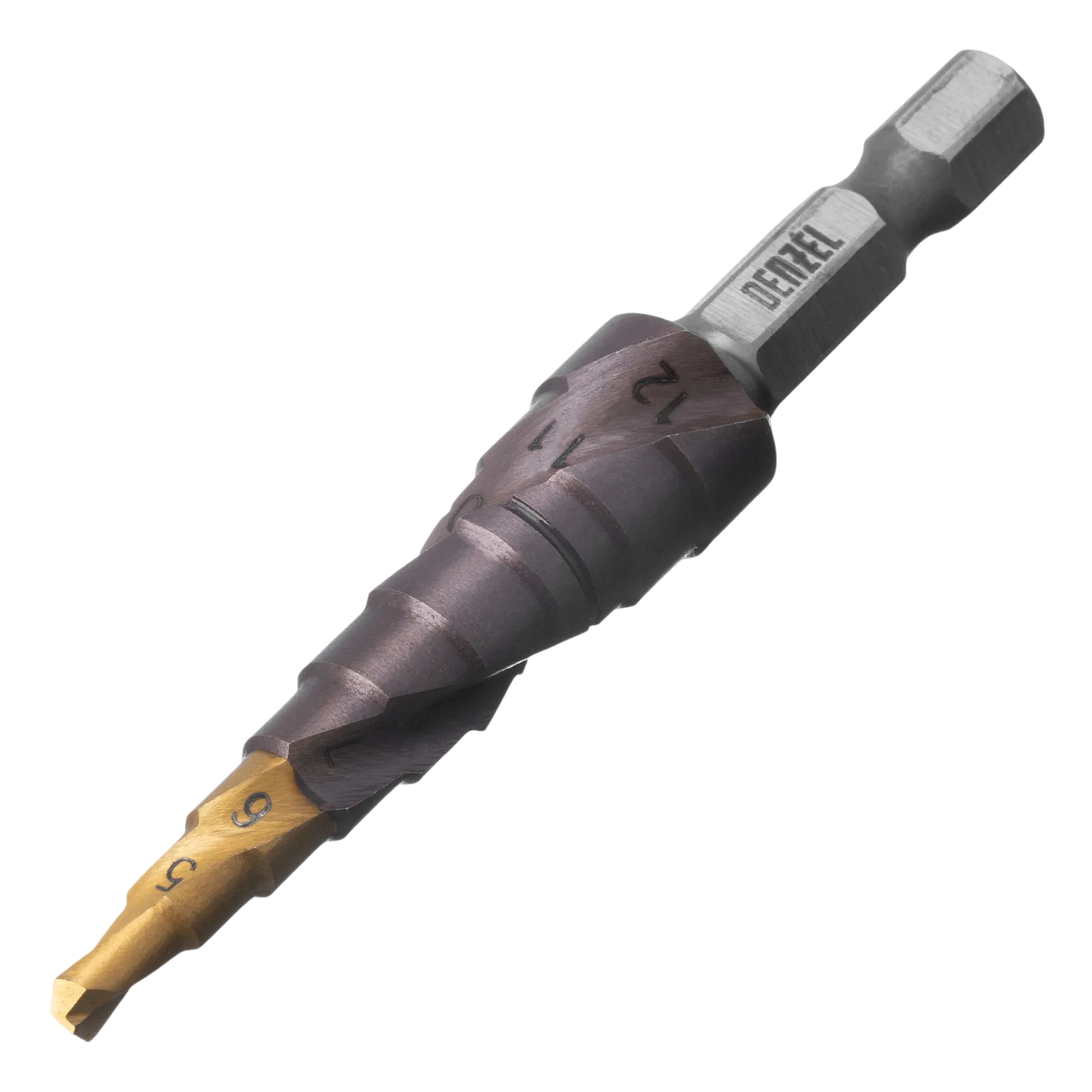 Ступенчатое сверло Denzel 723612 из стали P6M5K5, с 6-гранным хвостовиком, предназначено для сверления отверстий диаметром от 4 до 12 мм в сталях, цветных металлах и пластике. Избавляет от необходимости иметь при себе целый набор традиционных сверл. Позволяет получать отверстия с ровными краями и уже снятой фаской под гайку или болт. Оснастке присвоен класс точности A1. Сверло пригодится дома и в мастерской.