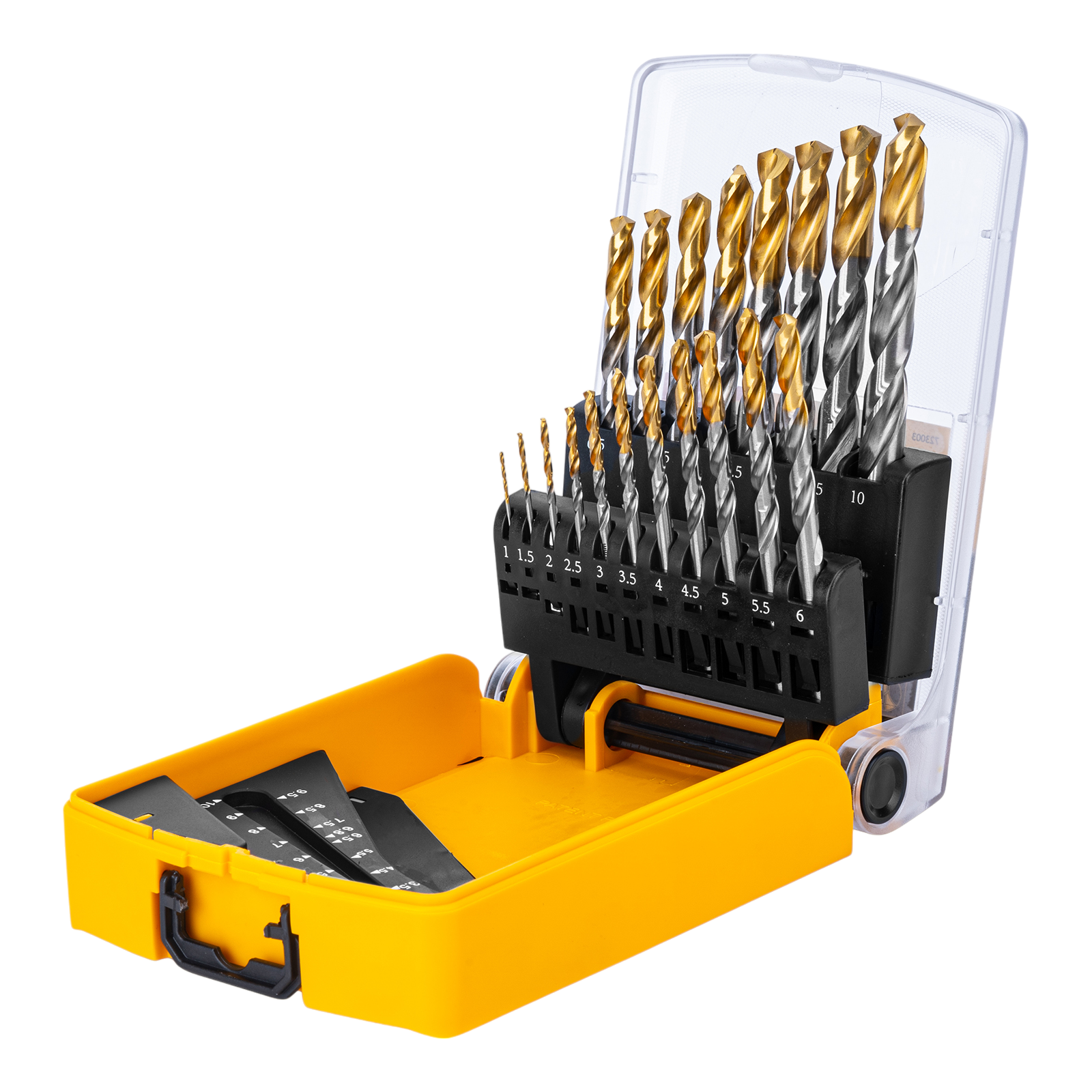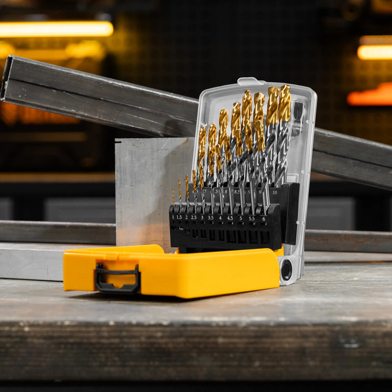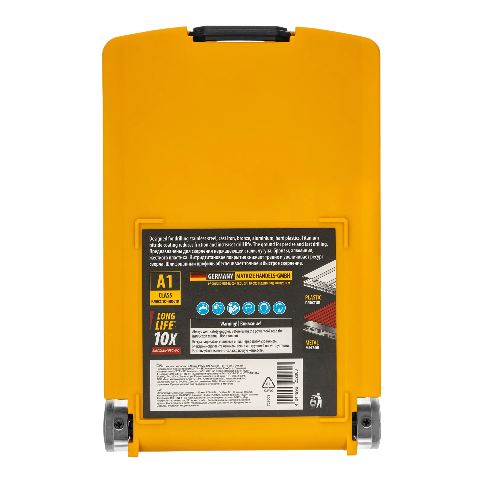 Набор Denzel Golden Tip 723003 состоит из 19 сверл по металлу диаметром 1-10 мм, изготовленных из стали P6M5. Угол заточки составляет 135°, что позволяет получать чистые и ровные отверстия в нержавеющей стали, чугуне, бронзе, алюминии, а также жестком пластике. Сверлам присвоен класс точности A1, что гарантирует высокое качество выполняемых работ. Оснастка характеризуется пониженным коэффициентом трения, что облегчает сверление и улучшает отвод стружки. Набор будет полезен дома и в мастерской.