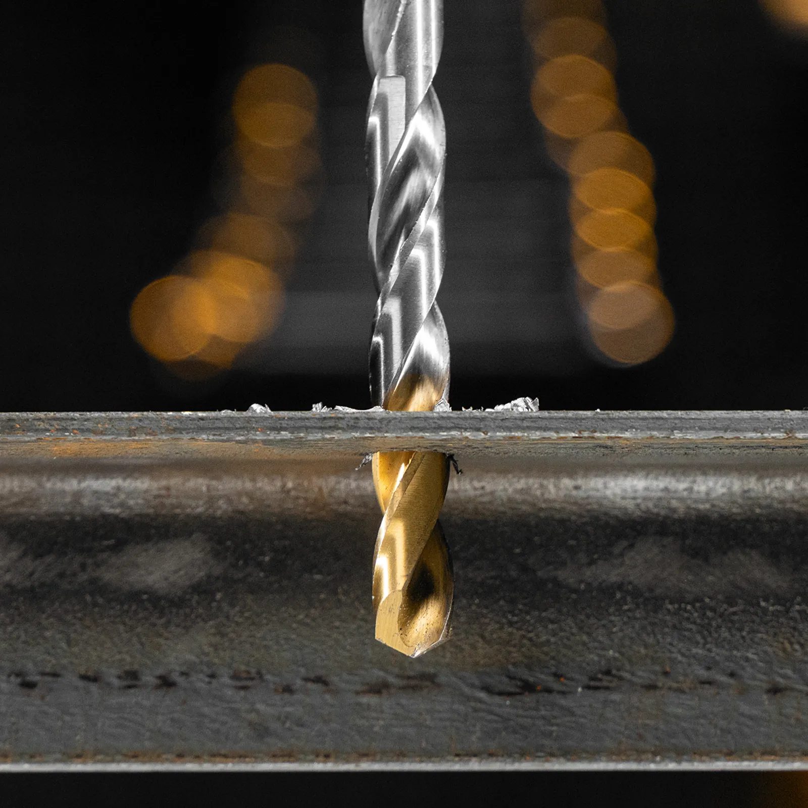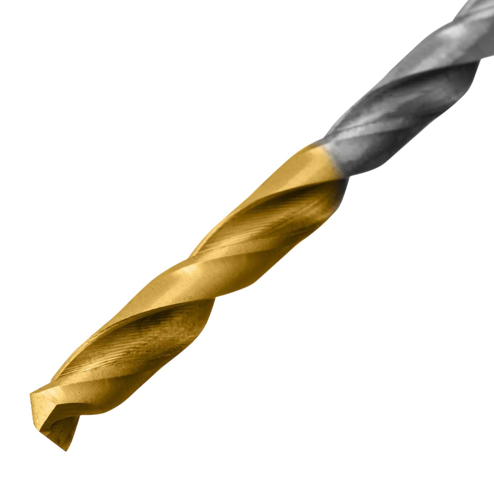 - Высокий ресурс — нитридтитановое покрытие уменьшает трение и увеличивает стойкость сверл к нагреву и износу.