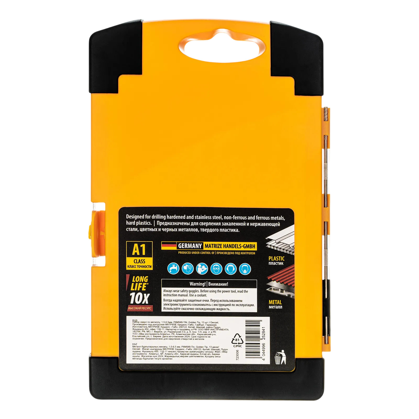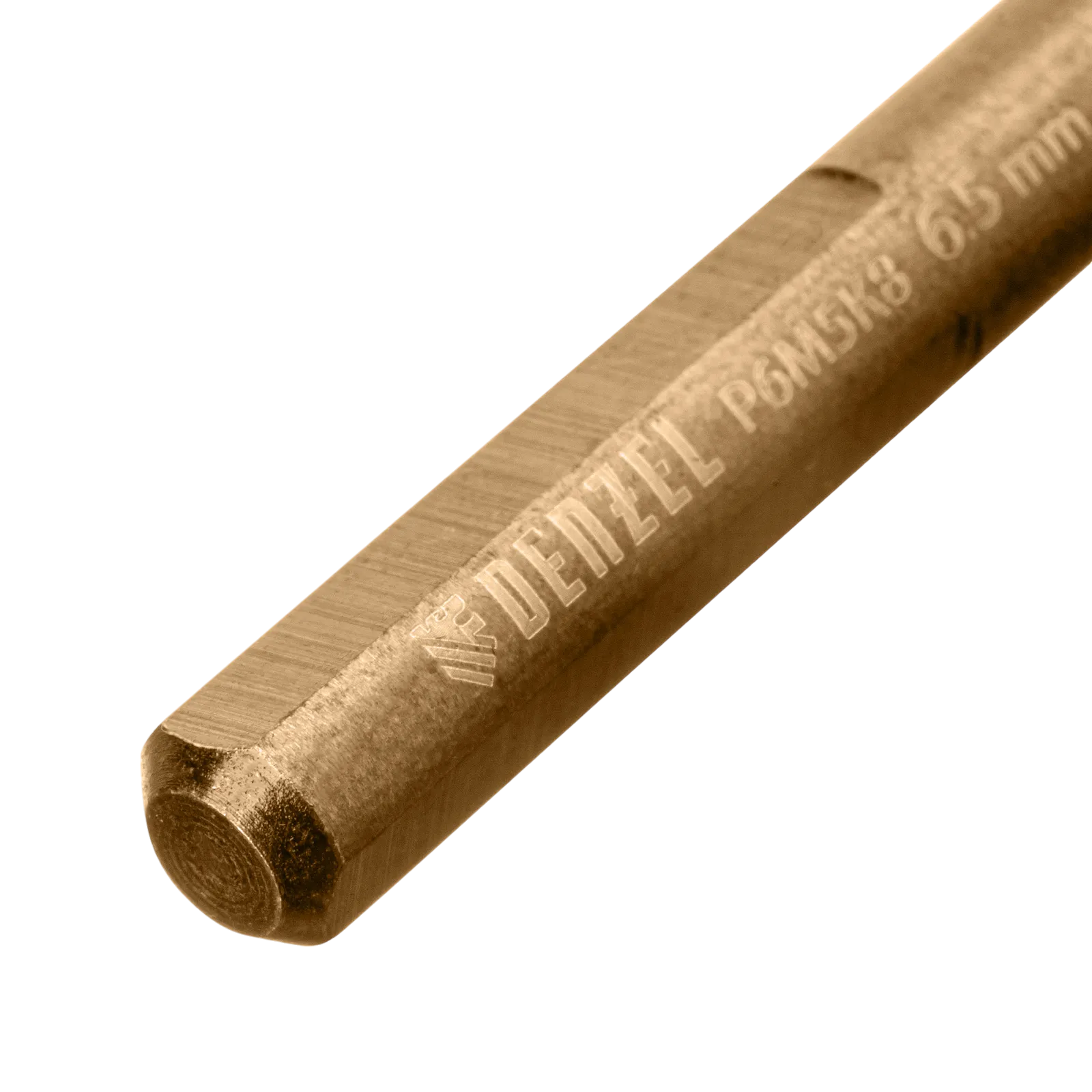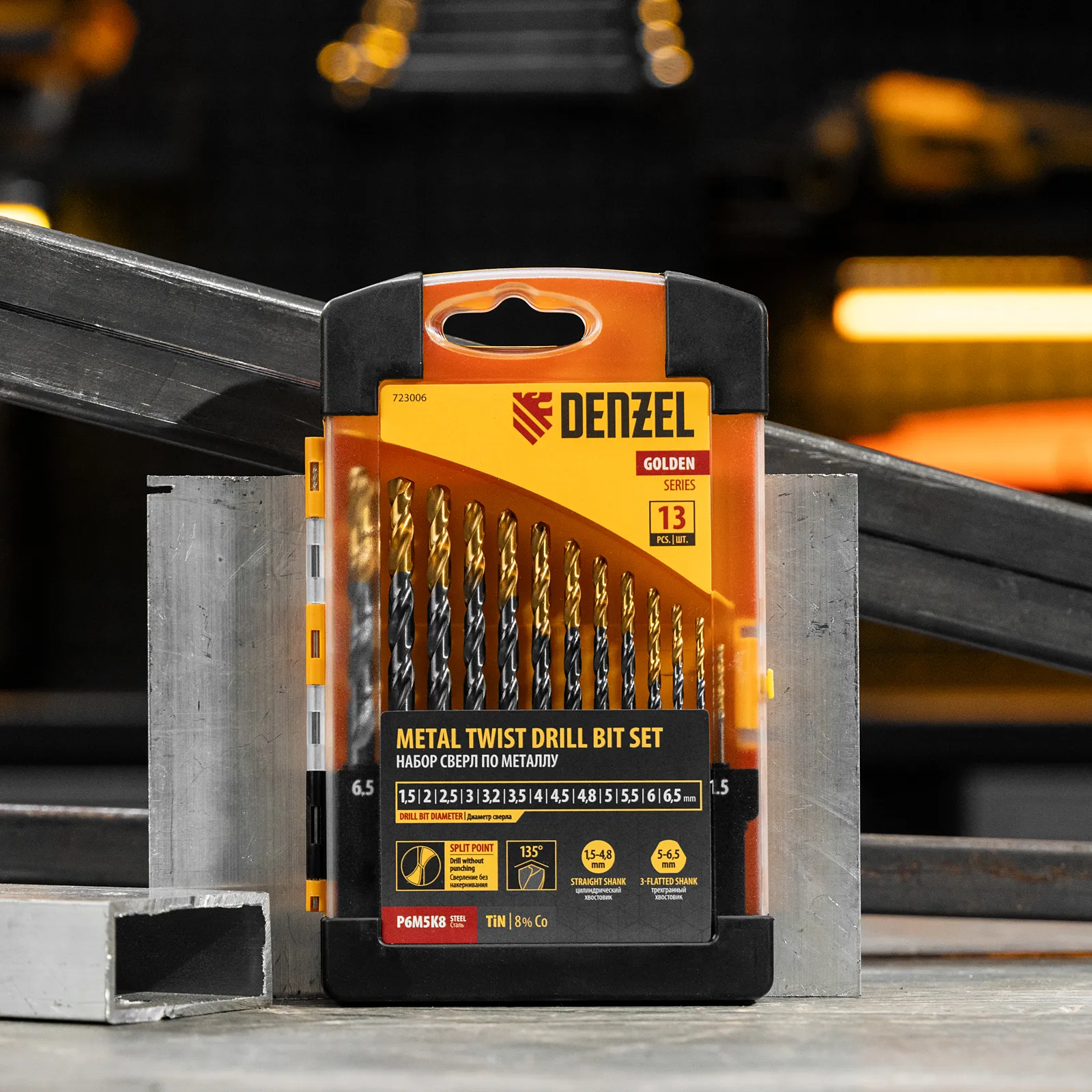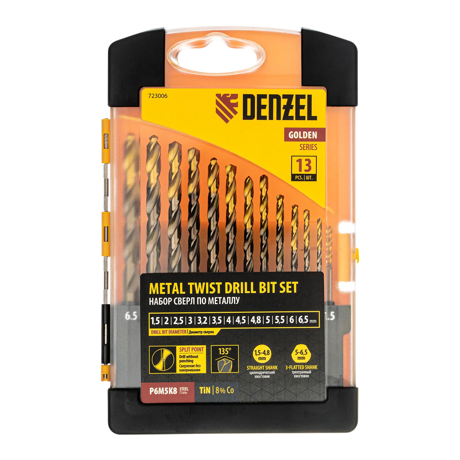 Набор Denzel Golden Tip 723006 состоит из 13 сверл по металлу диаметром 1,5-6,5 мм, изготовленных из стали P6M5K8. Угол заточки составляет 135°, что позволяет получать чистые и ровные отверстия в закаленной и нержавеющей стали, цветных и черных металлах, а также жестком пластике. Сверлам присвоен класс точности A1, что гарантирует высокое качество выполняемых работ. Оснастка характеризуется пониженным коэффициентом трения, что облегчает сверление и улучшает отвод стружки. Набор будет полезен дома и в мастерской.
