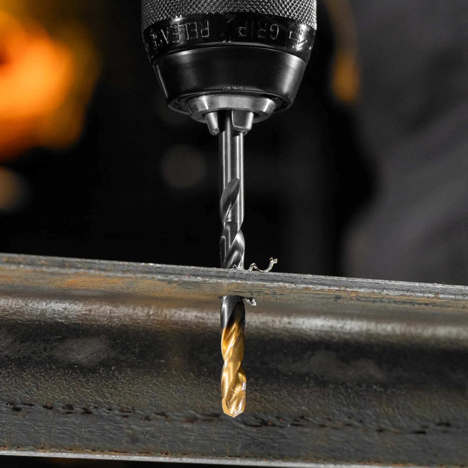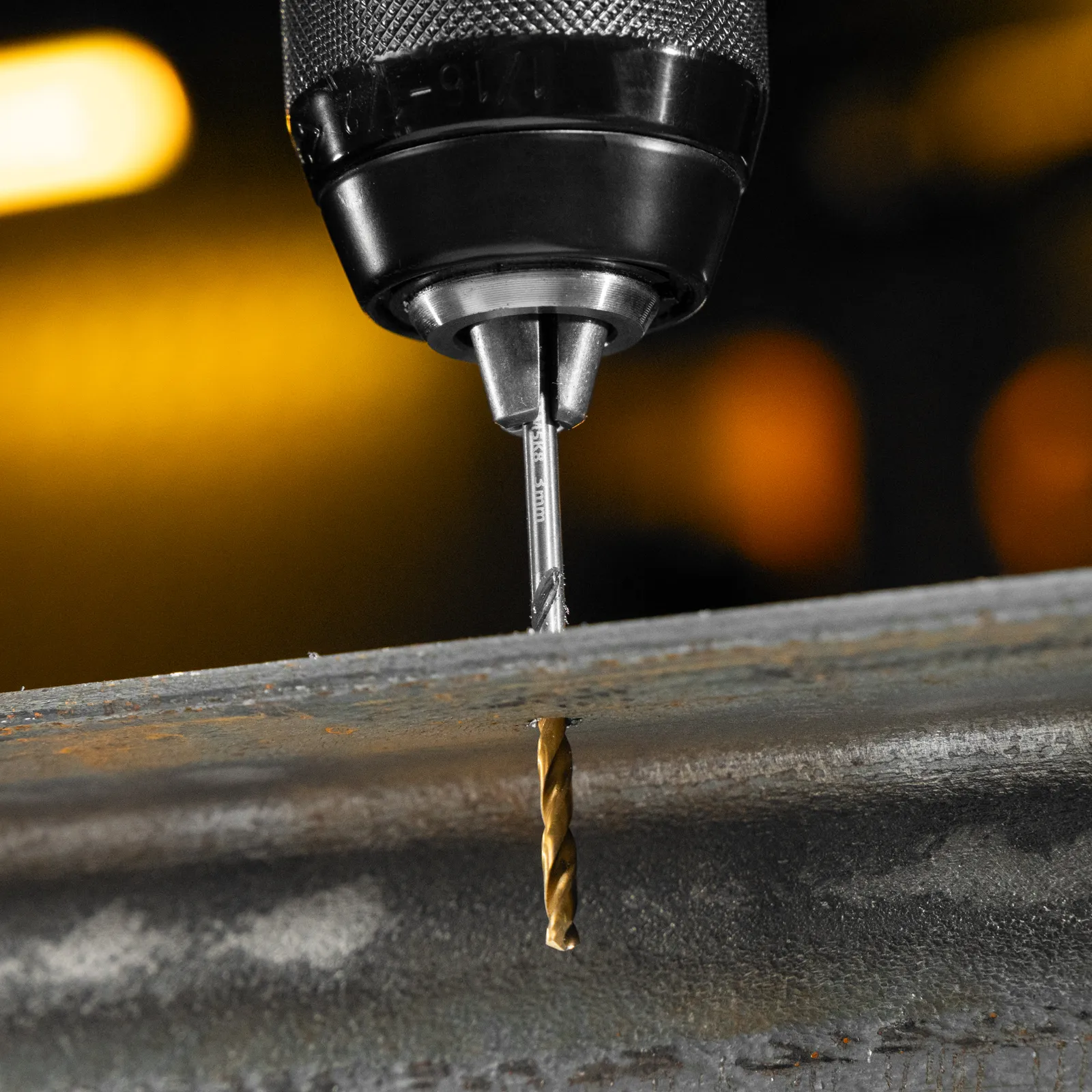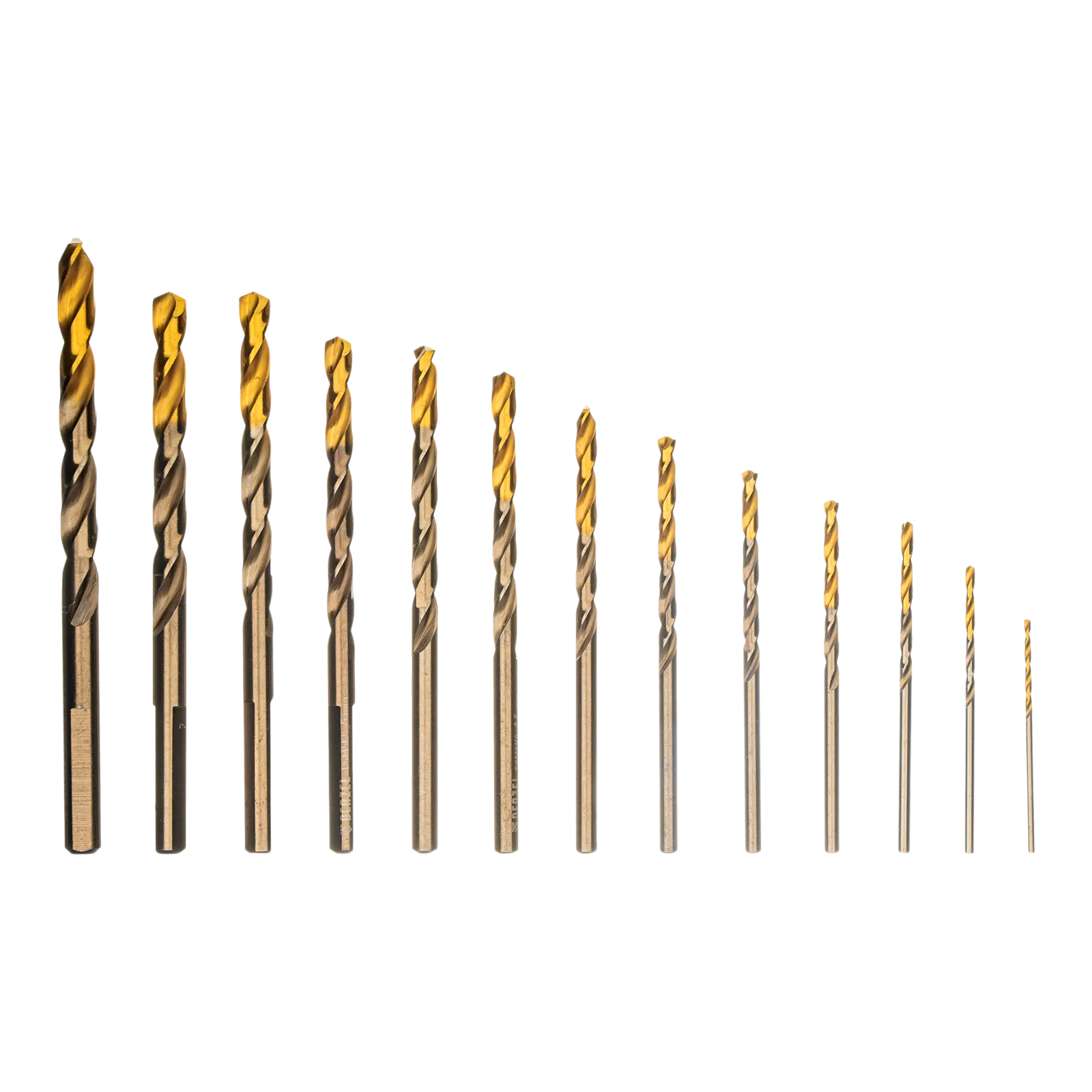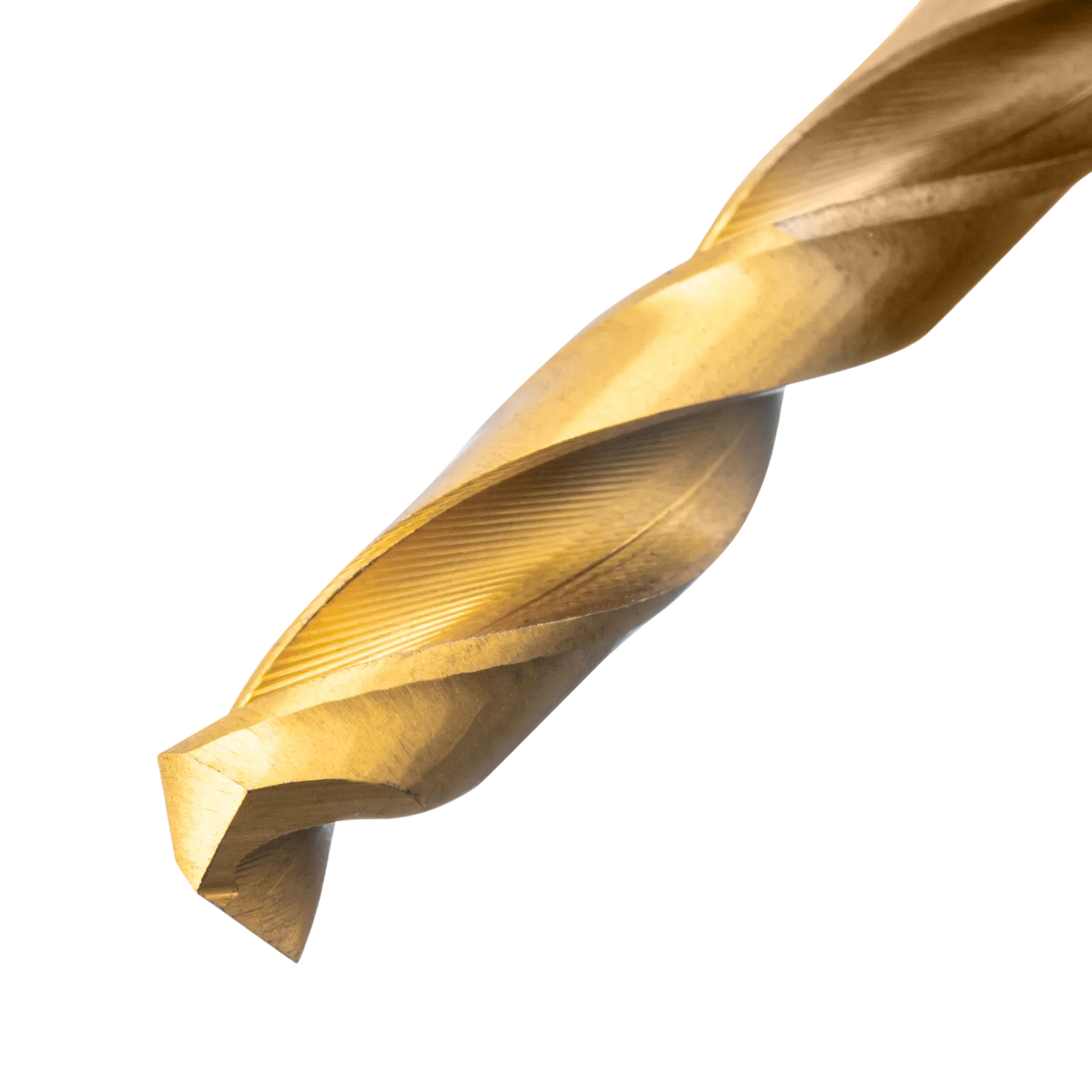 - Высокий ресурс — нитридтитановое покрытие уменьшает трение и увеличивает стойкость сверл к нагреву и износу.