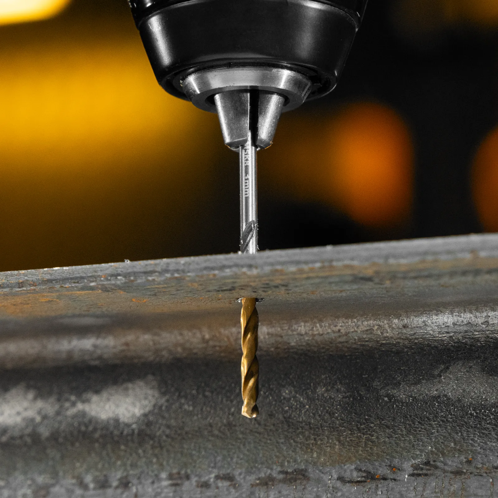 - Высокий ресурс — нитридтитановое покрытие уменьшает трение и увеличивает стойкость сверл к нагреву и износу.