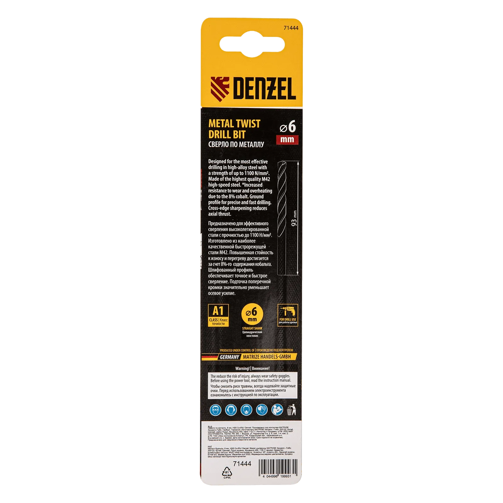 Кобальтовое сверло по металлу Denzel 71444 диаметром 6 мм, из стали HSS Co-8%, позволяет получать отверстия высокой точности в нержавеющей стали, цветных металлах, легированных и нелегированных сталях с пределом прочности до 1100 Н/мм2, а также в жестком пластике. Угол заточки 135° обеспечивает повышенную точность и чистоту сверления.