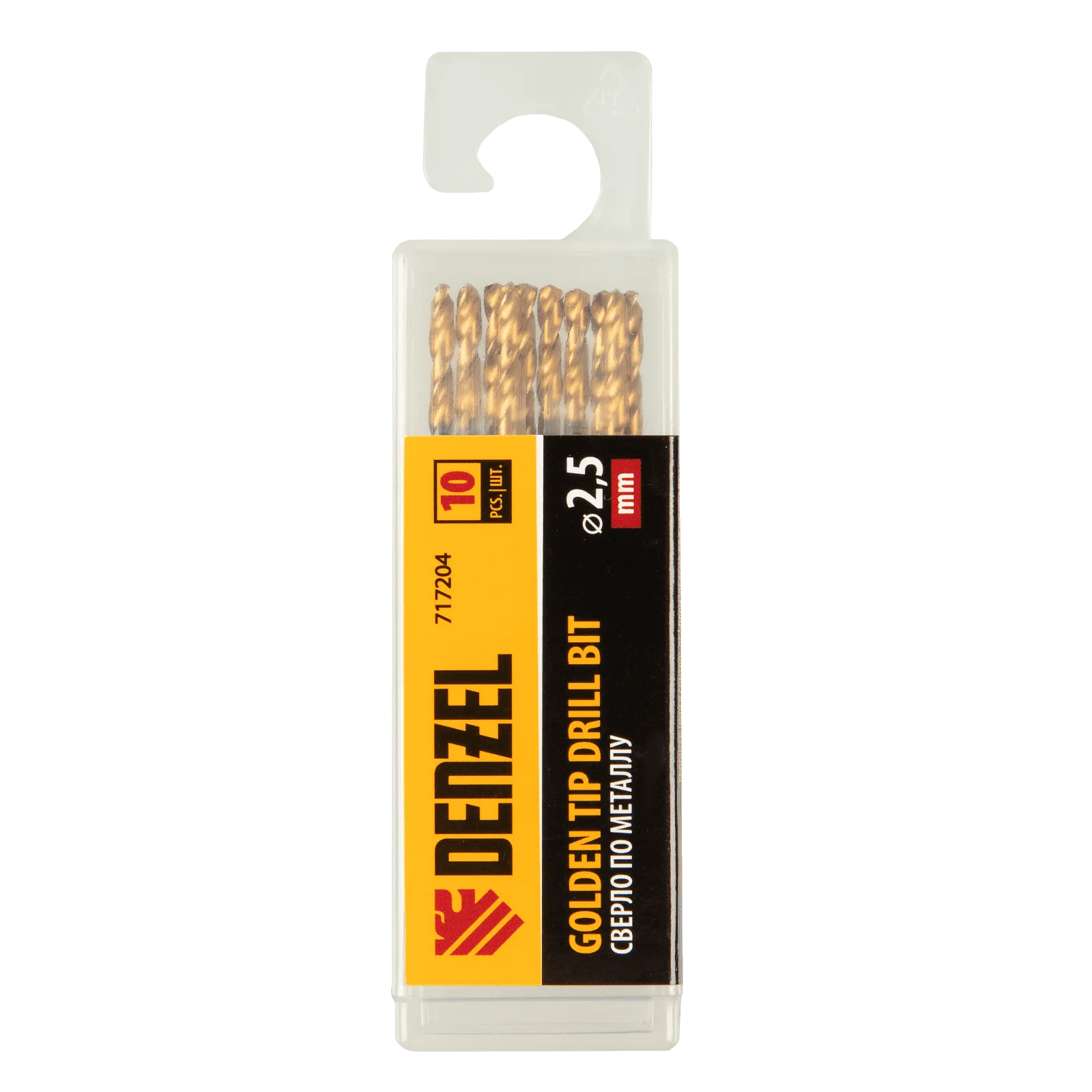 Сверло по металлу Denzel Golden Tip 717204 диаметром 2,5 мм, из стали HSS-TiN, 10 шт. в упаковке, используется для получения отверстий в стальных заготовках. Оснастка вышлифована на современном оборудовании и имеет класс точности A1, что позволяет получить отверстия высокого качества. Набор применяется во время слесарных работ.