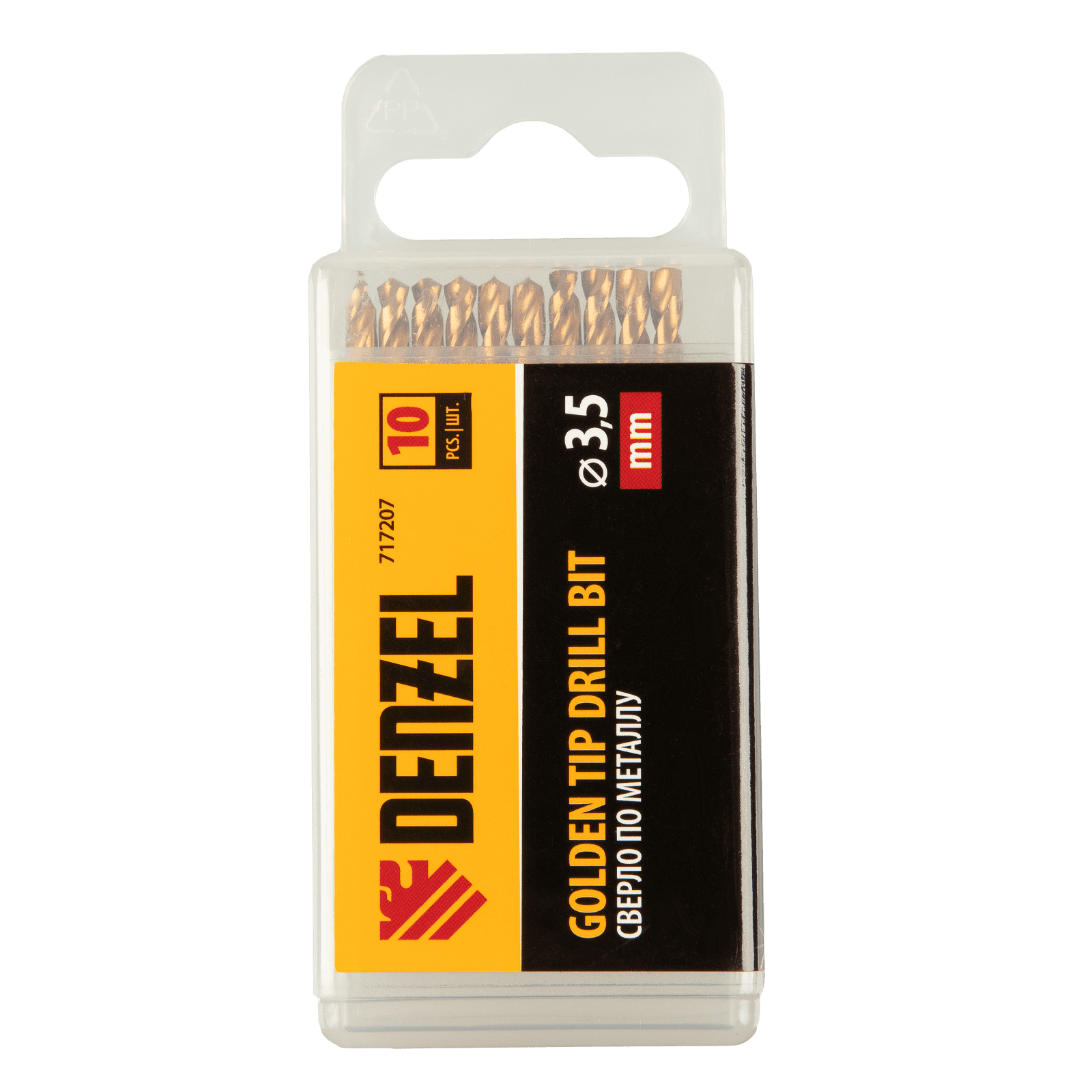 Сверло по металлу Denzel Golden Tip 717207 диаметром 3,5 мм, из стали HSS-TIn, 10 шт. в упаковке, используется для получения отверстий в стальных заготовках. Оснастка вышлифована на современном оборудовании и имеет класс точности A1, что позволяет получить отверстия высокого качества. Набор применяется во время слесарных работ.