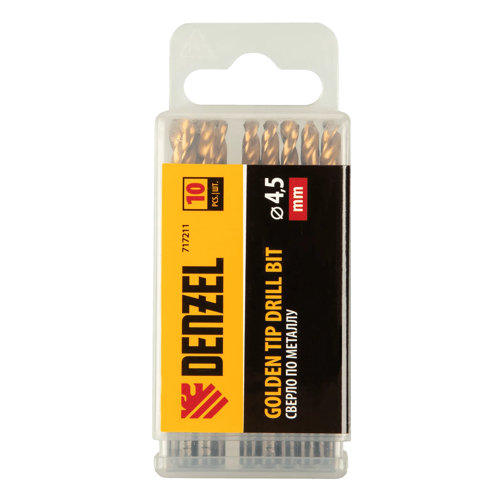 Сверло по металлу Denzel Golden Tip 717211 диаметром 4,5 мм, из стали HSS-TIn, 10 шт. в упаковке, используется для получения отверстий в стальных заготовках. Оснастка вышлифована на современном оборудовании и имеет класс точности A1, что позволяет получить отверстия высокого качества. Набор применяется во время слесарных работ.