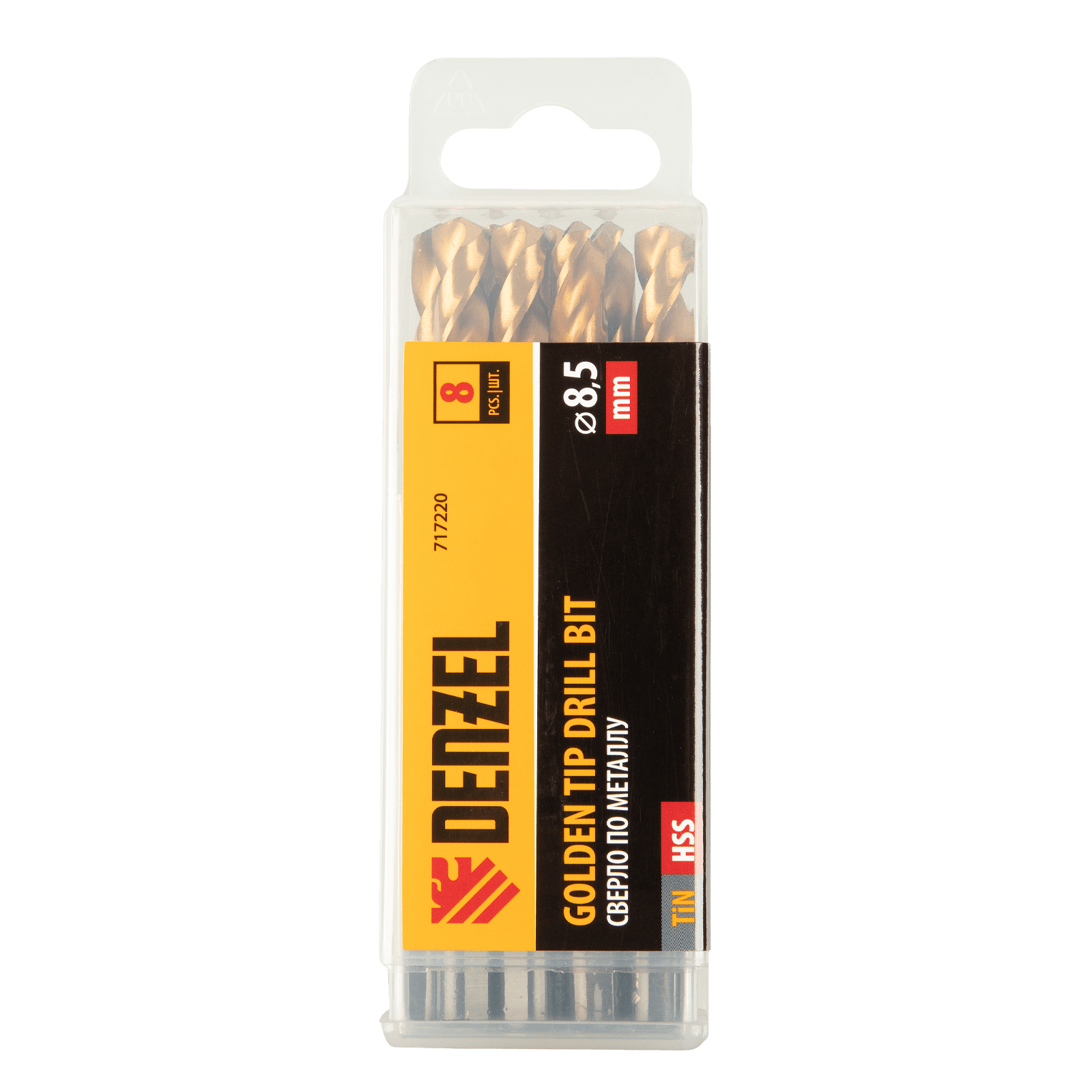 Сверло по металлу Denzel Golden Tip 717220 диаметром 8,5 мм, из стали HSS-TiN, 8 шт. в упаковке, используется для получения отверстий в стальных заготовках. Оснастка вышлифована на современном оборудовании и имеет класс точности A1, что позволяет получить отверстия высокого качества. Набор применяется во время слесарных работ.