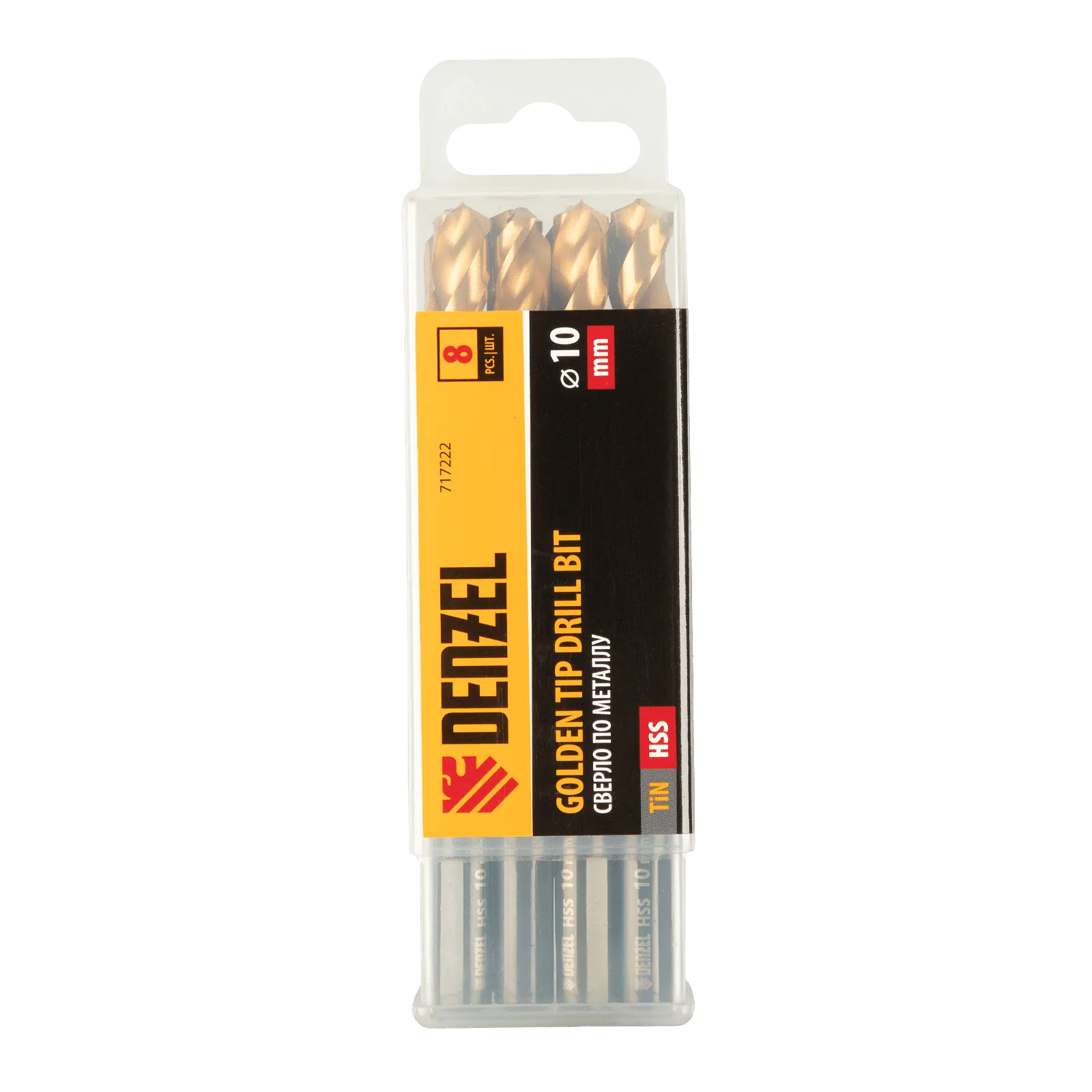 Сверло по металлу Denzel Golden Tip 717222 диаметром 10 мм, из стали HSS-TIn, 8 шт. в упаковке, используется для получения отверстий в стальных заготовках. Оснастка вышлифована на современном оборудовании и имеет класс точности A1, что позволяет получить отверстия высокого качества. Набор применяется во время слесарных работ.