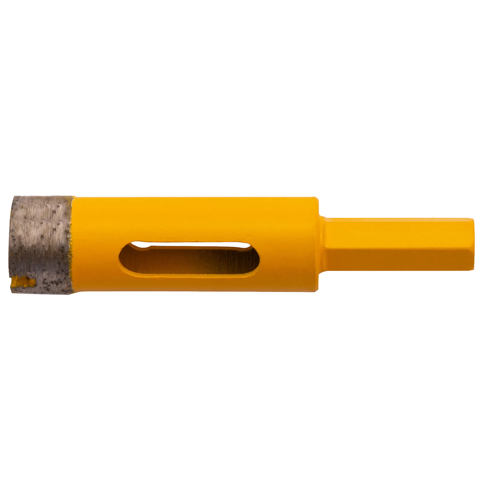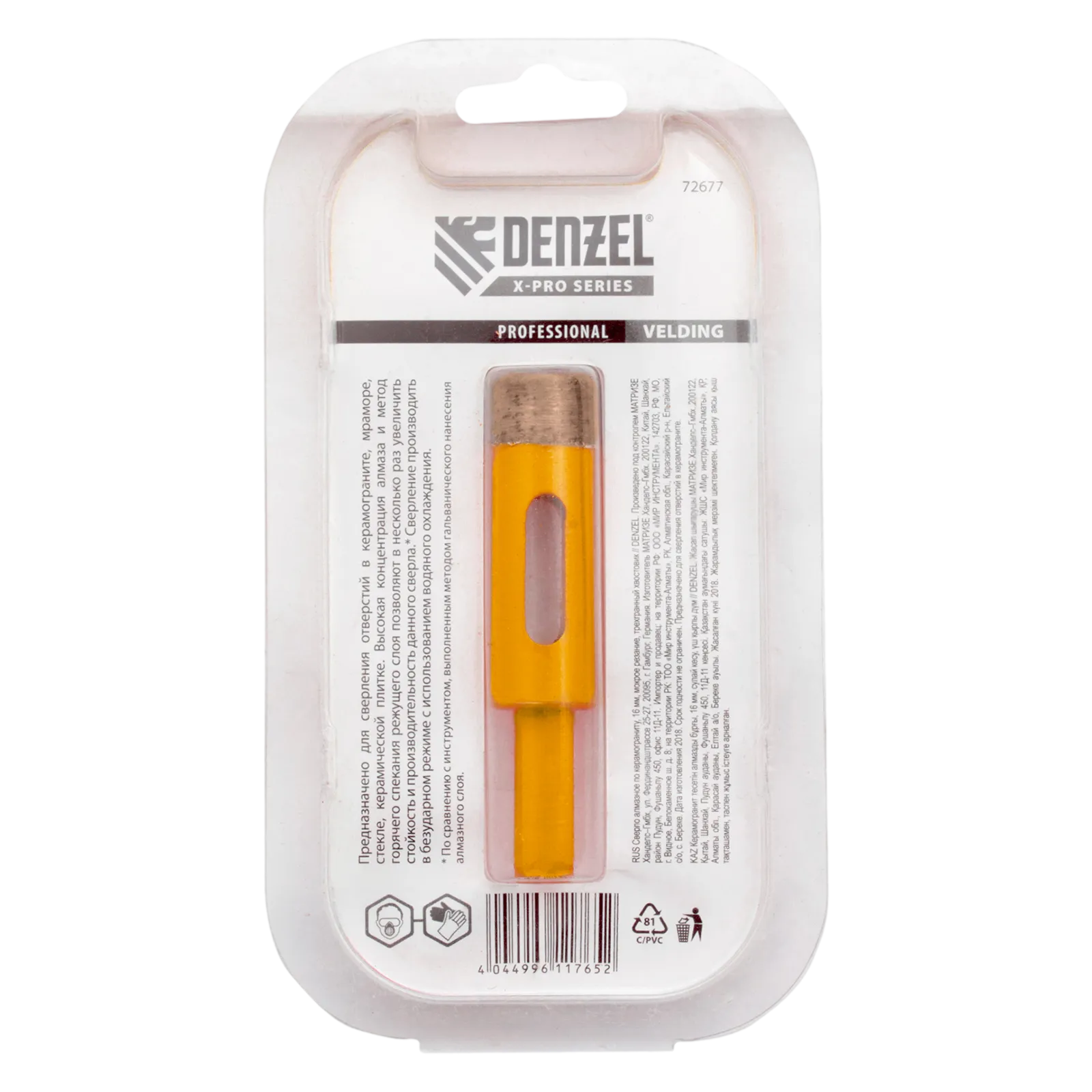 Алмазное сверло Denzel 72677 с шестигранным хвостовиком, для «мокрой» резки, — режущий инструмент для получения точных отверстий диаметром 16 мм. Подходит для работ по стеклу, керамике, керамограниту и мрамору. Используется в качестве оснастки для дрелей и шуруповертов. Сверление с применением водяного охлаждения позволит избежать перегрева сверла и продлить срок его службы. Использование кондуктора 72830 препятствует смещению коронки и облегчает засверливание. Оснастка предназначена для профессионального использования.