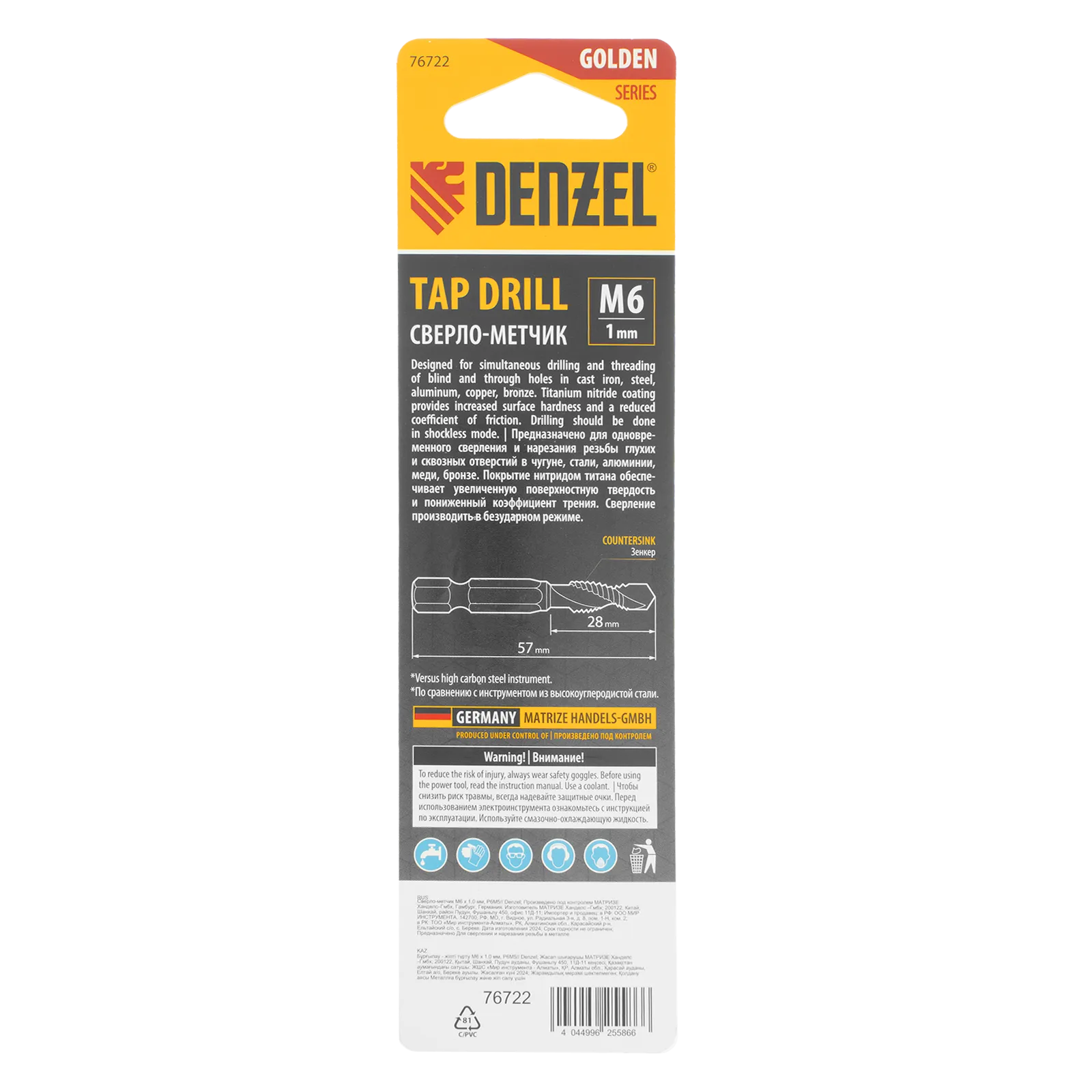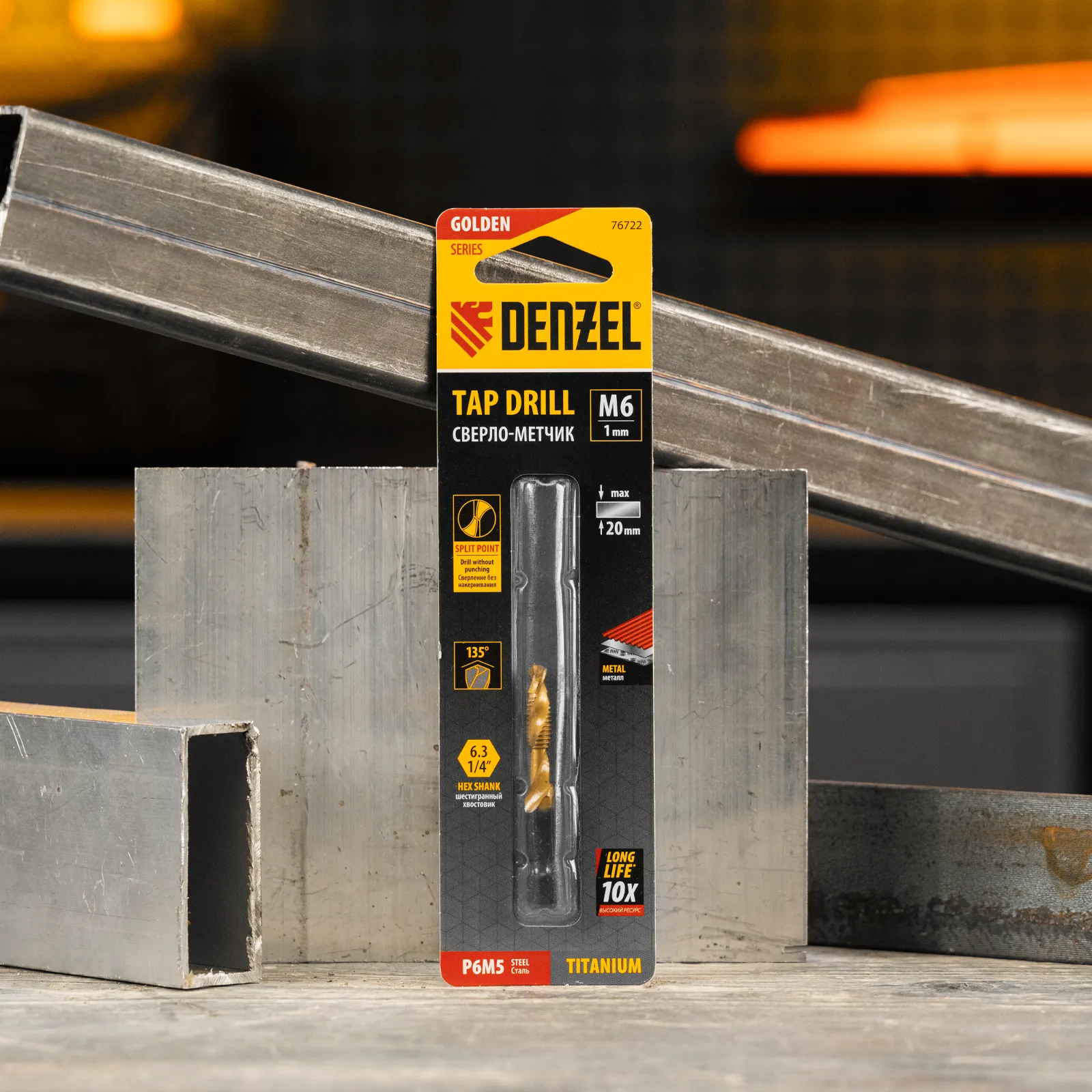 Сверло-метчик Denzel 76722 из стали P6M5 предназначено для получения глухих и сквозных отверстий в металлических заготовках с одновременным нарезанием правой резьбы M6 с шагом 1,0 мм. Позволяет существенно сэкономить время работы, объединив две операции в одну. Угол заточки 135° оптимален для работы с чугуном, сталью, алюминием, медью, бронзой. Ресурс оснастки увеличен в 10 раз по сравнению с аналогичными моделями из углеродистой стали.