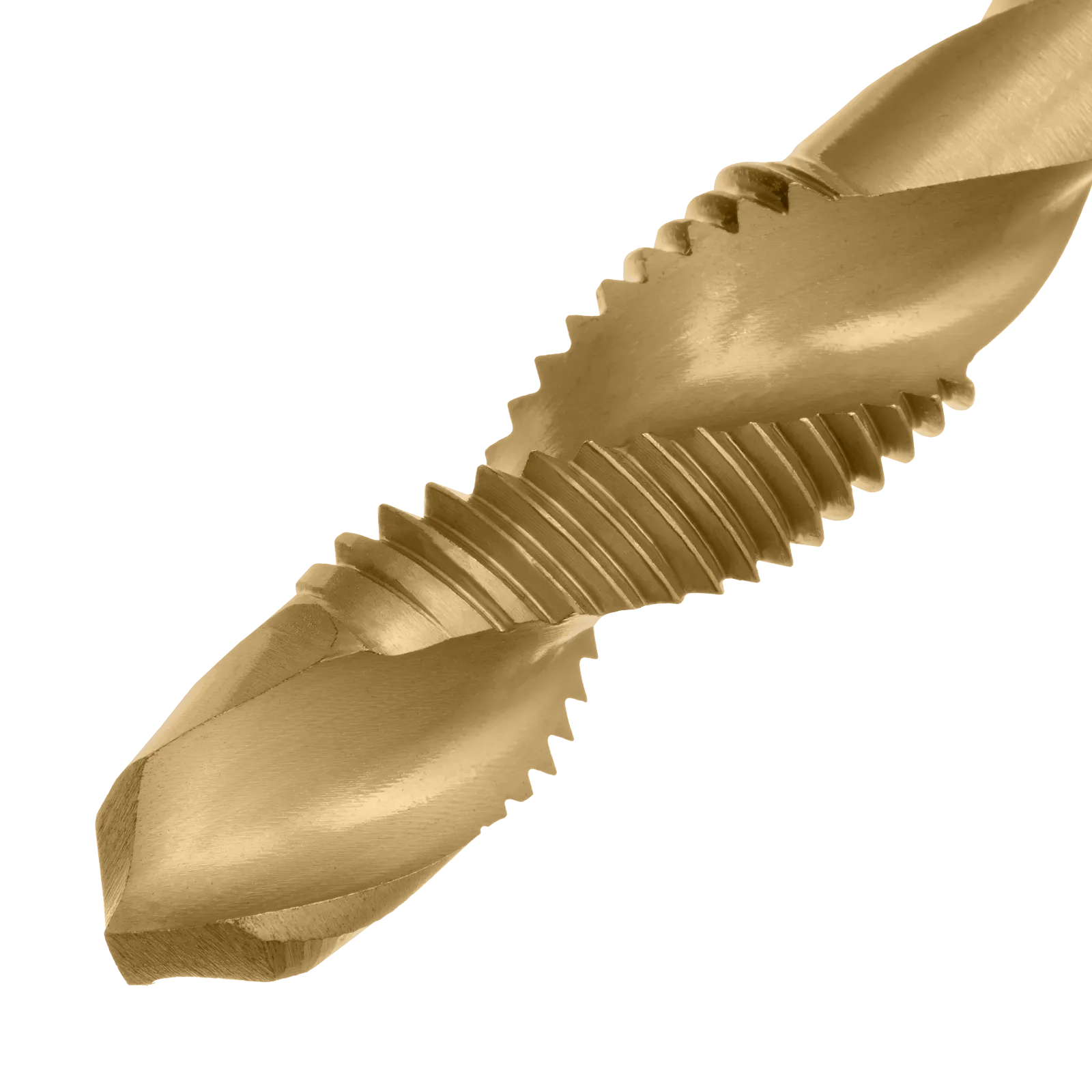 - Долговечность — нитридтитановое покрытие защищает от повреждений и уменьшает трение, что увеличивает устойчивость сверла-метчика к износу.