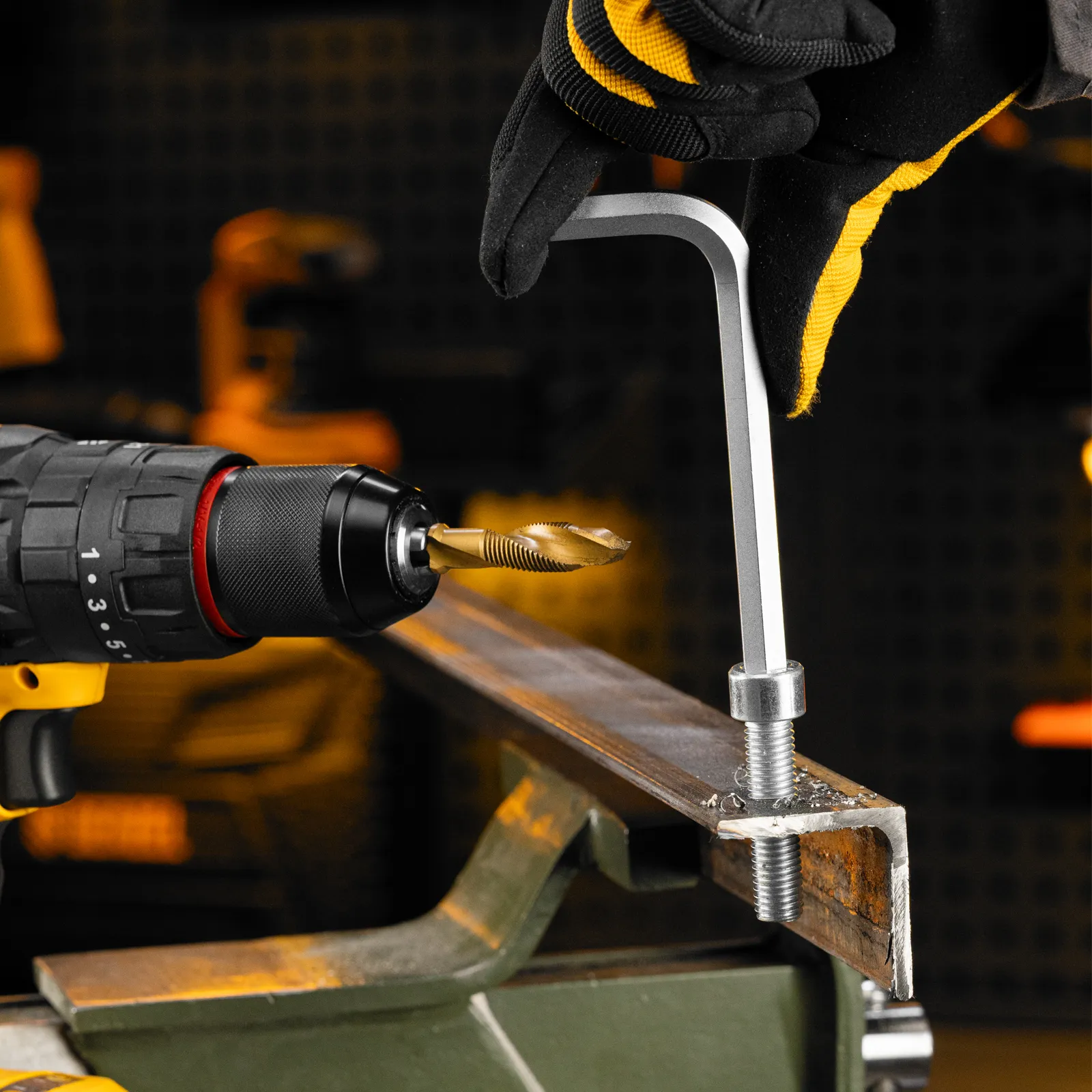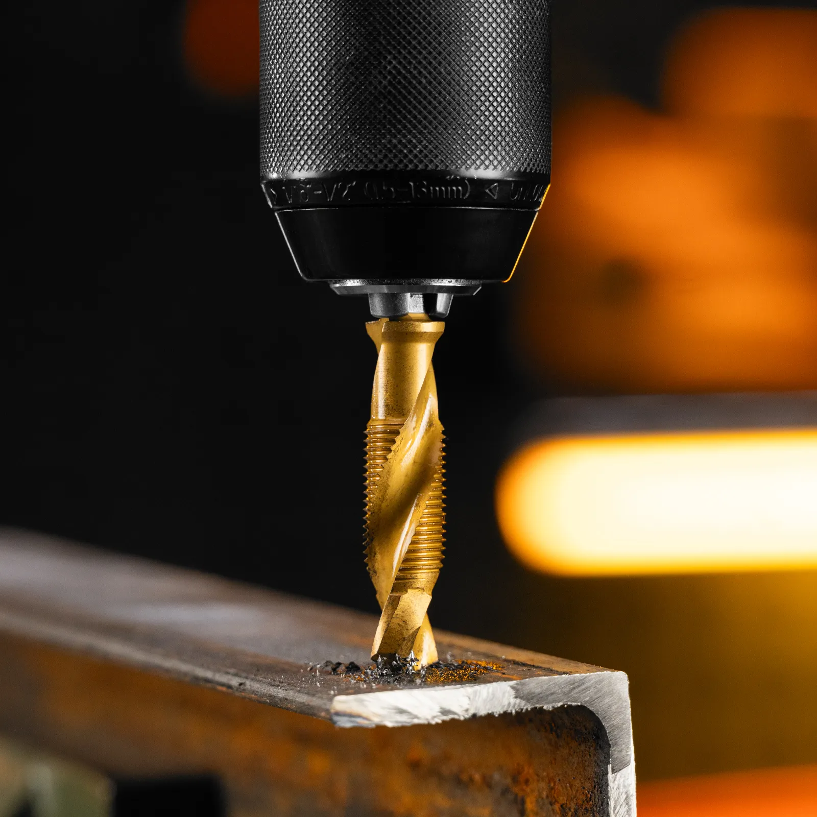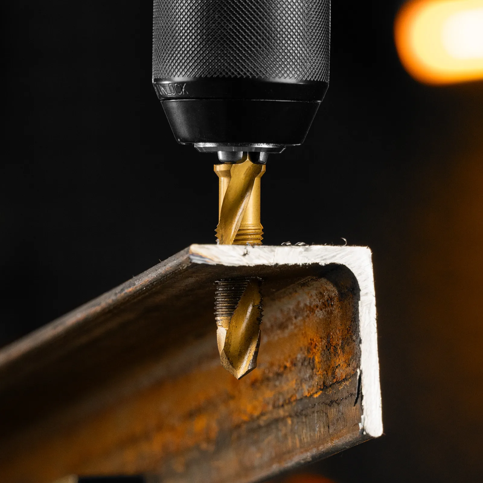 - Долговечность — нитридтитановое покрытие защищает от повреждений и уменьшает трение, что увеличивает устойчивость сверла-метчика к износу.