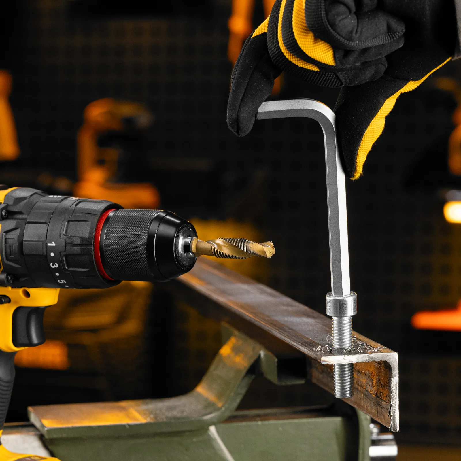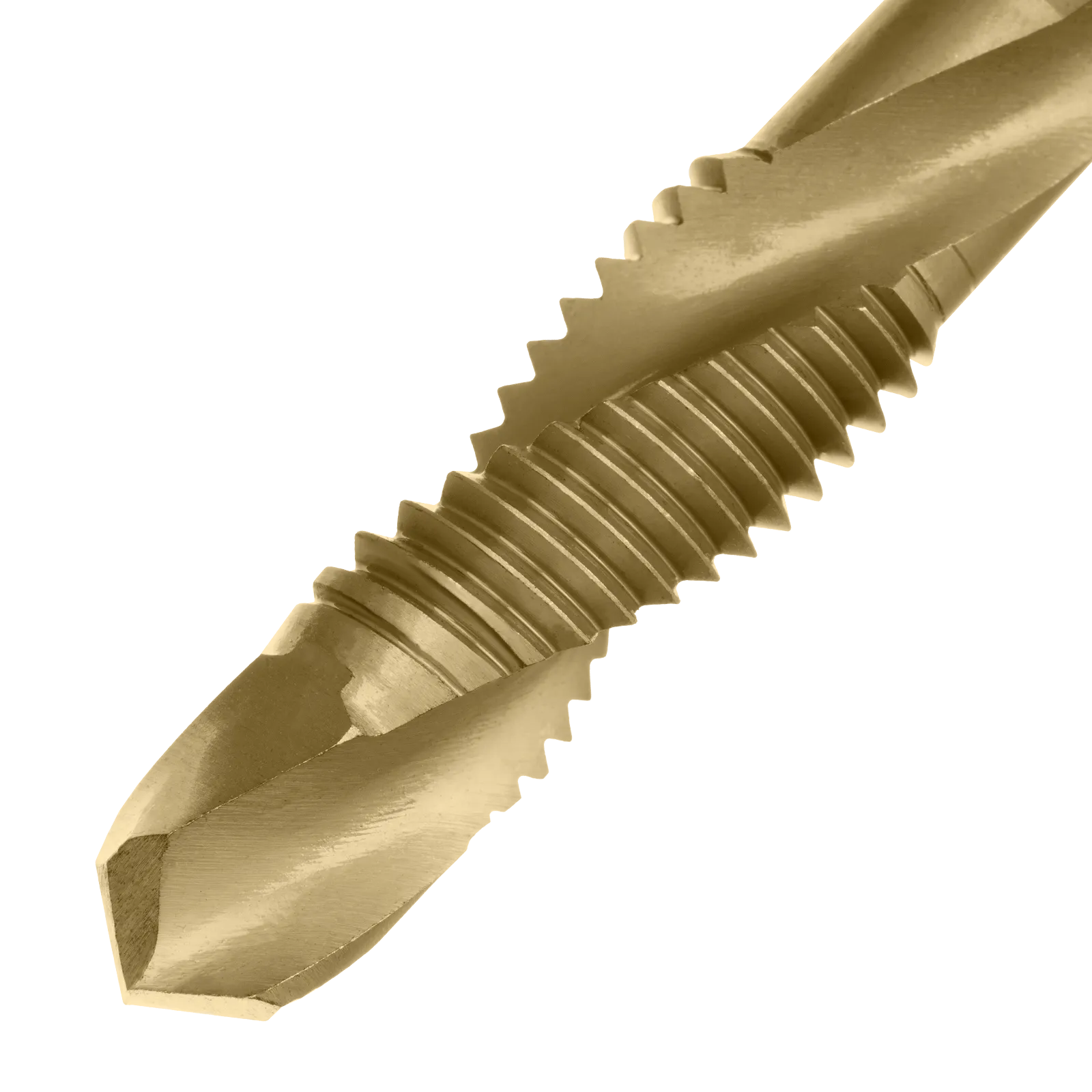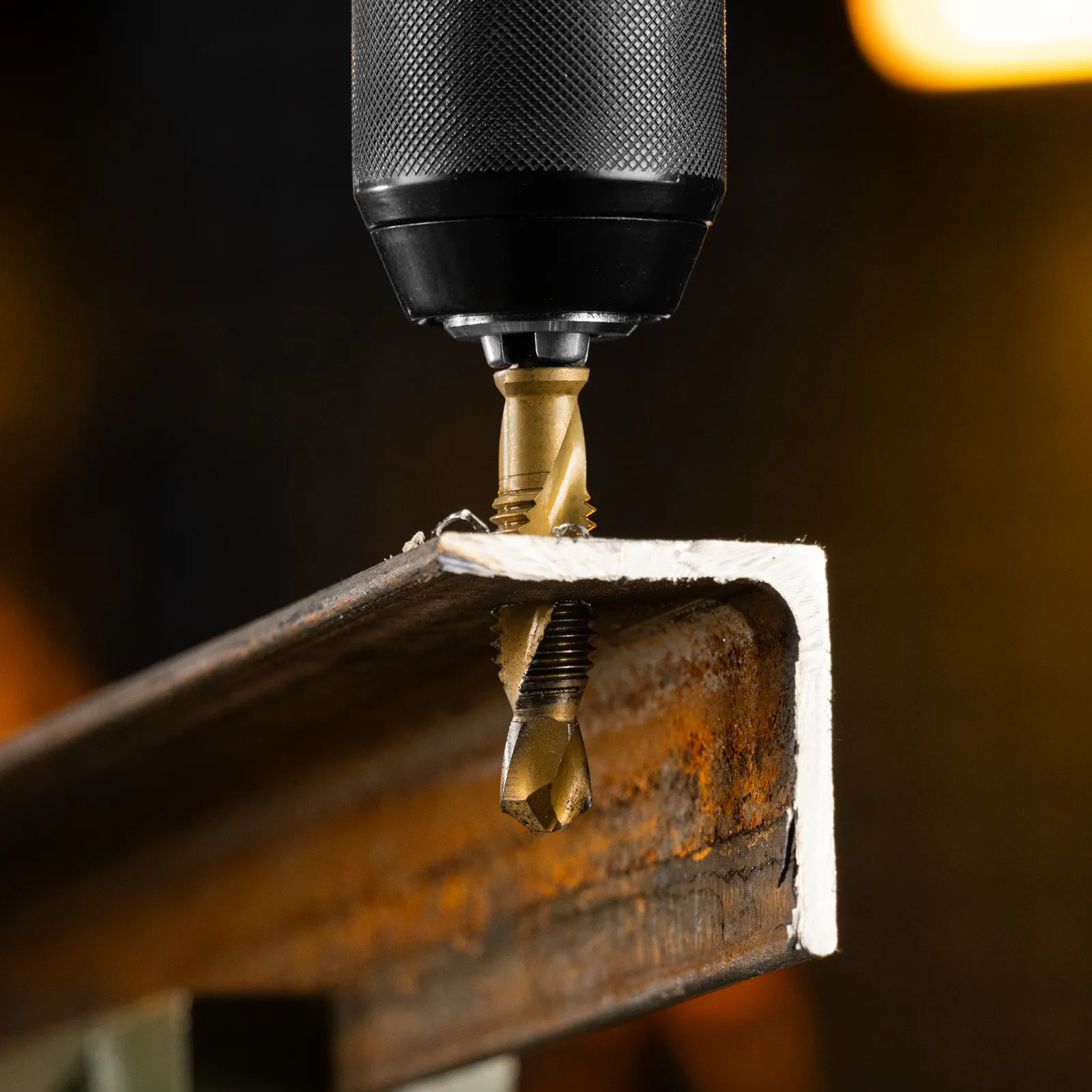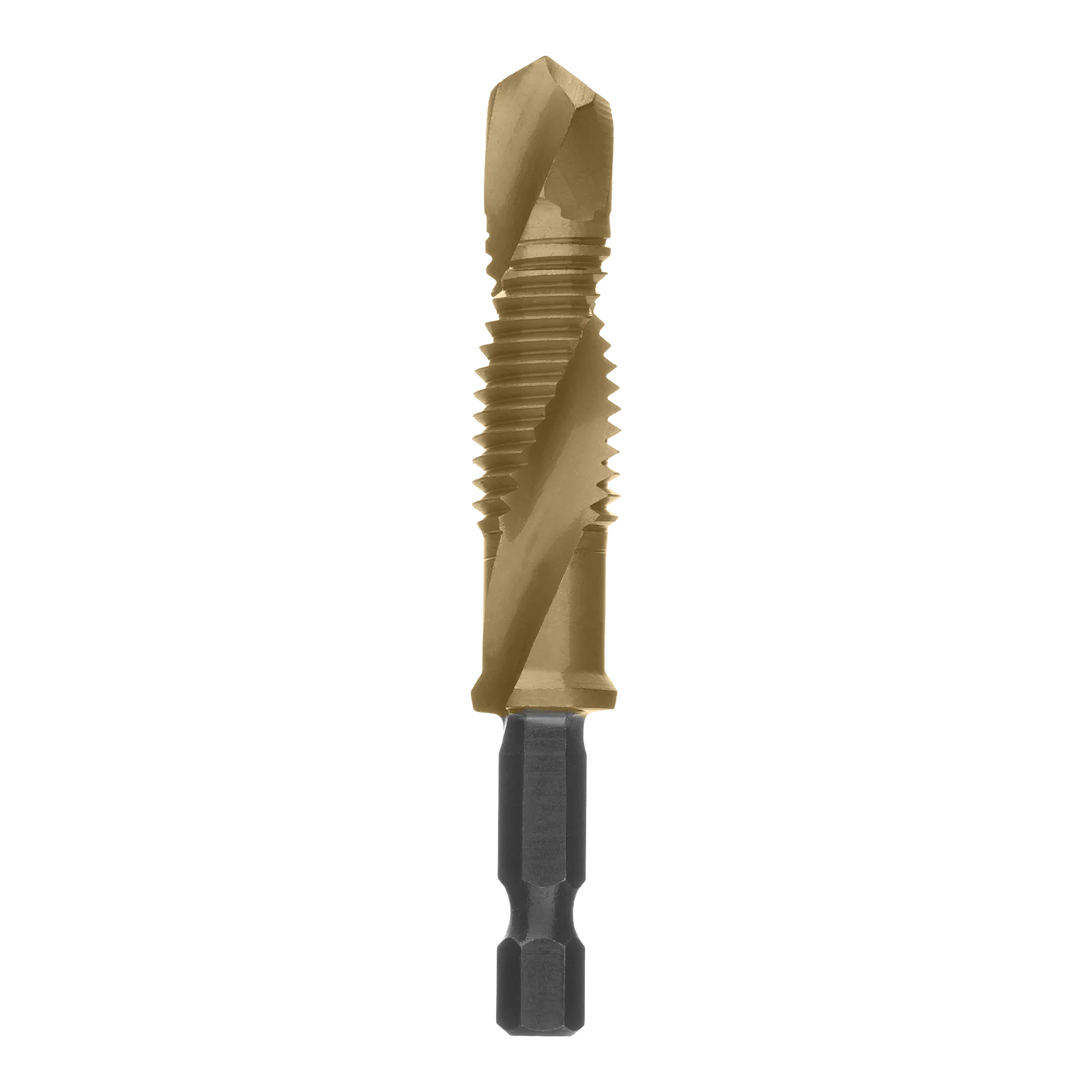 - Долговечность — нитридтитановое покрытие защищает от повреждений и уменьшает трение, что увеличивает устойчивость сверла-метчика к износу.