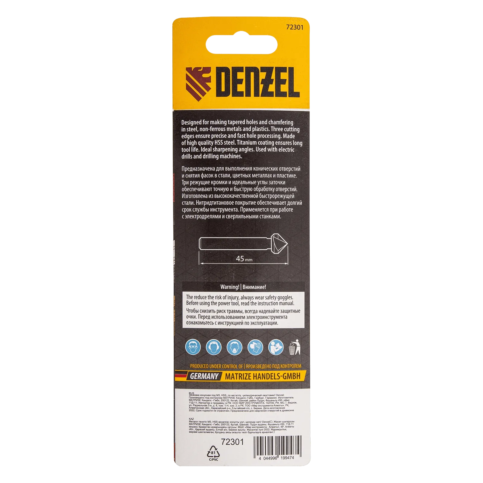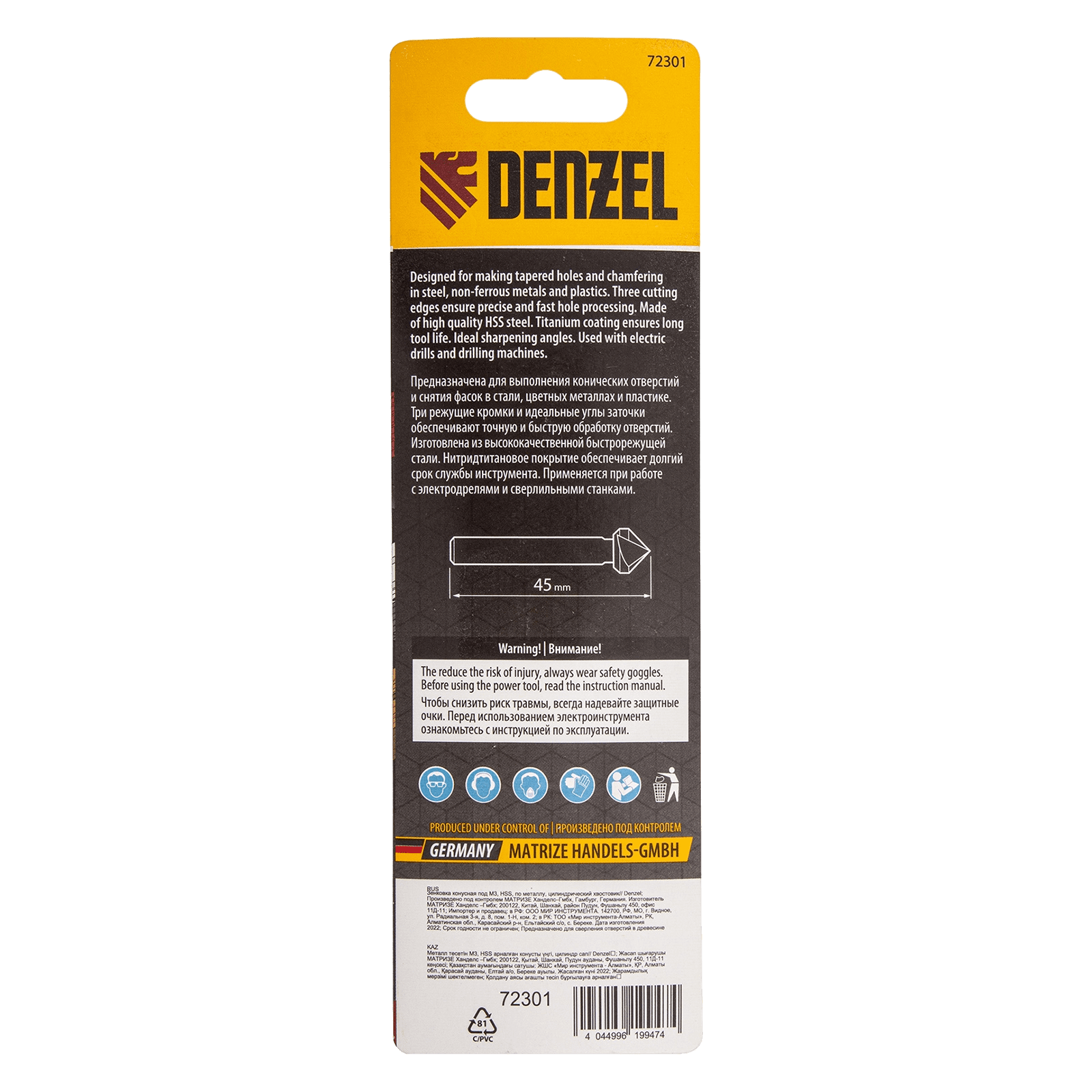 Конусная зенковка Denzel 72301 под болт M3, с 6-гранным хвостовиком, применяется для выполнения конических отверстий и снятия фасок в стали, цветных металлах, древесине и пластике. Устанавливается в патрон дрели или сверлильного станка. Три режущие кромки и идеальные углы заточки 90° обеспечивают точную и быструю обработку отверстий. Оснастка используется во время выполнения слесарных работ.