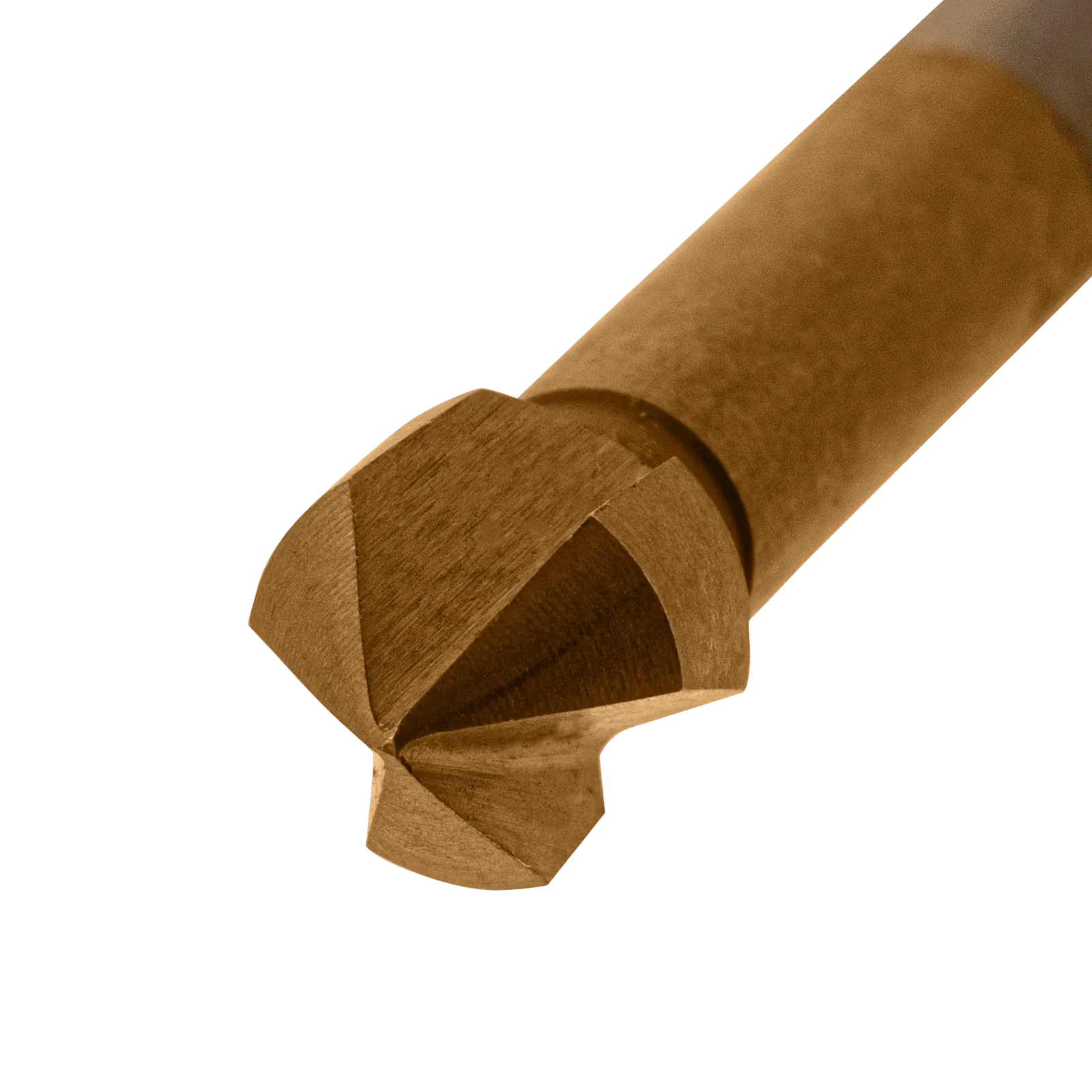 Конусная зенковка Denzel 72302 под болт M4, с 6-гранным хвостовиком, применяется для выполнения конических отверстий и снятия фасок в стали, цветных металлах, древесине и пластике. Устанавливается в патрон дрели или сверлильного станка. Три режущие кромки и идеальные углы заточки 90° обеспечивают точную и быструю обработку отверстий. Оснастка используется во время выполнения слесарных работ.