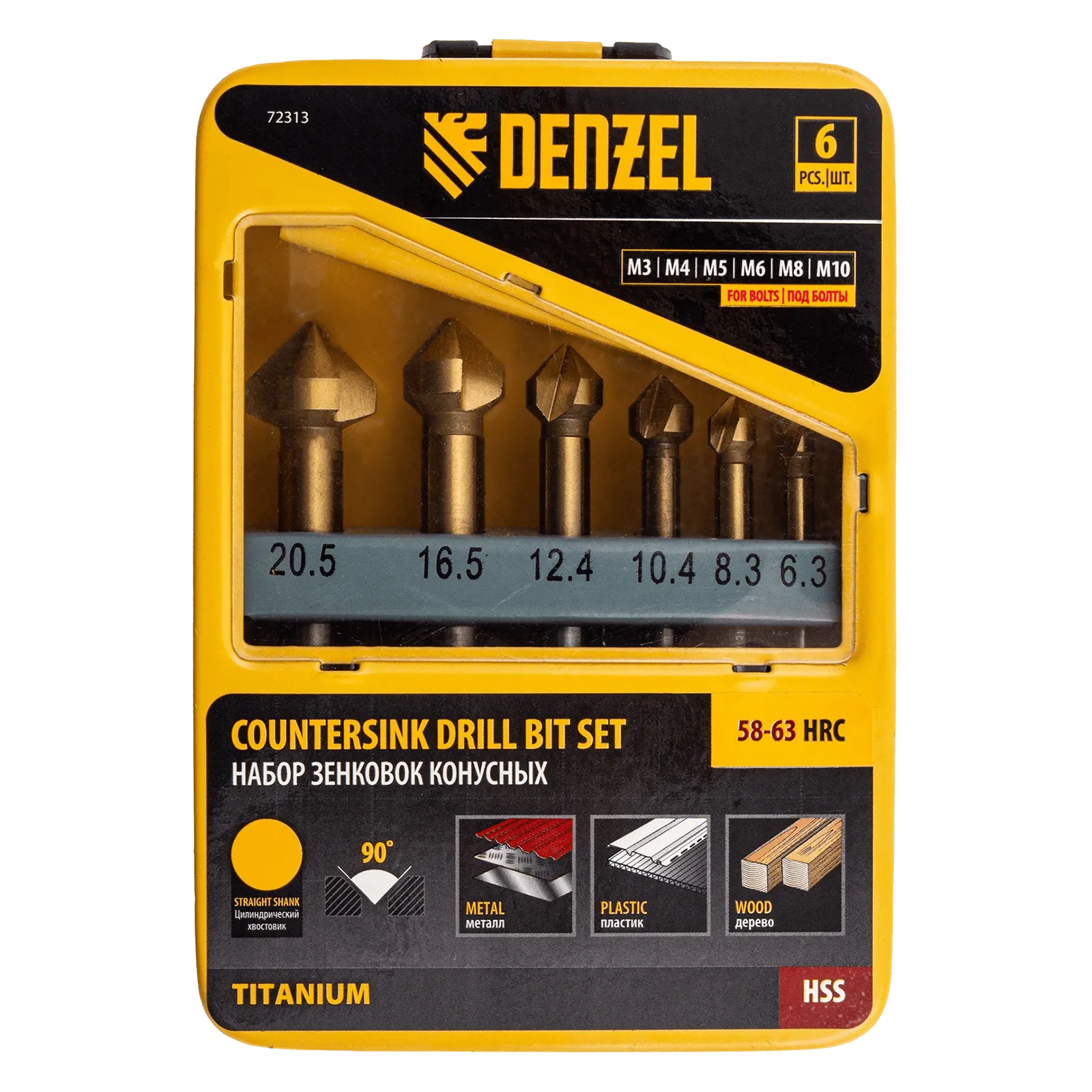Набор зенковок Denzel 72313 размером M3-M10 применяется при работе с электрическими дрелями и сверлильными станками. Зенковки используются для выполнения конических отверстий и снятия фасок в стали, цветных металлах, пластике и древесине. В комплекте 6 зенковок с шестигранными хвостовиками.