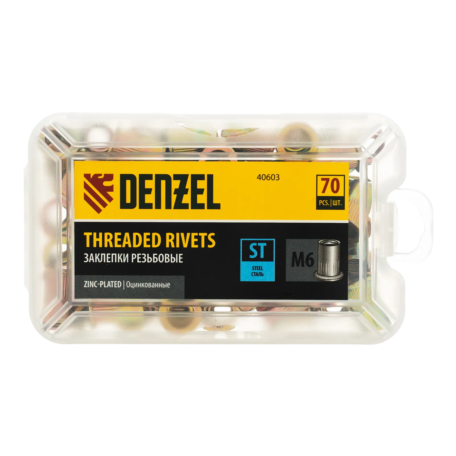 Стальные резьбовые заклепки Denzel 40603, с резьбой M6, оцинкованные, предназначены для скрепления листовых материалов толщиной 0,5-3 мм. Совместимы с заклепочником Denzel 40501. Позволяют получить резьбовое соединение даже при одностороннем доступе к месту крепления. Крепежные элементы используются для проведения строительных и монтажных работ, пригодятся на даче и в гараже.
