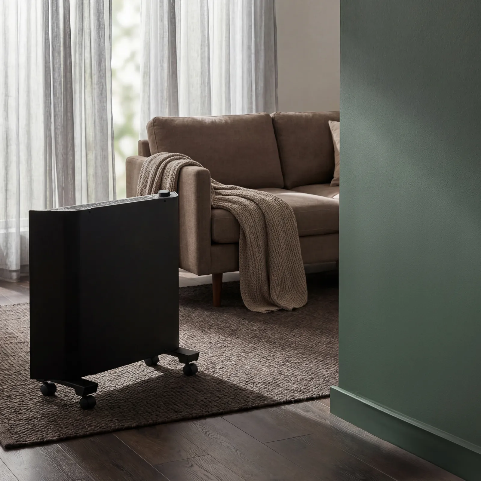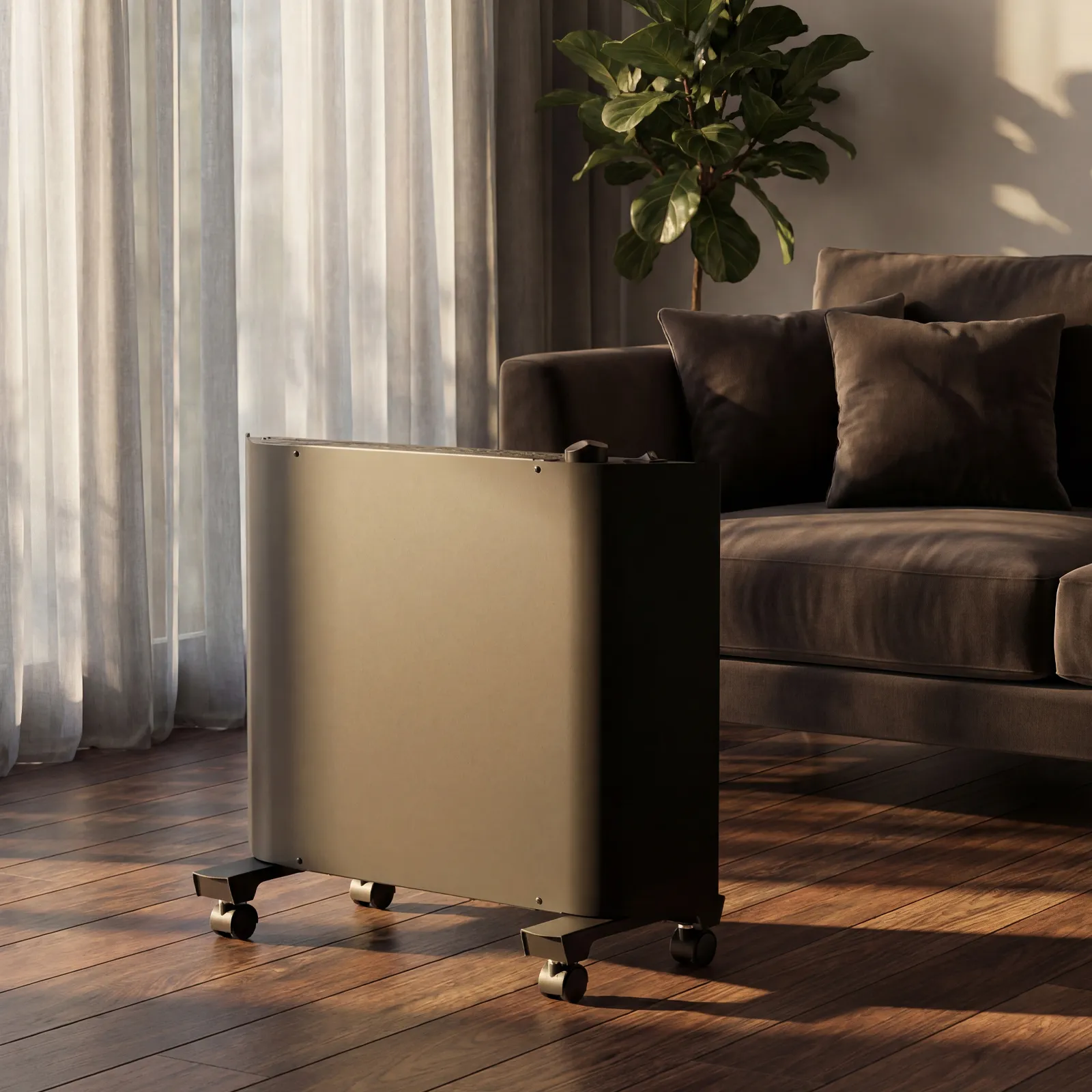 - Автономная работа — термостат автоматически включает и отключает конвектор, поддерживая заданную температуру в помещении.