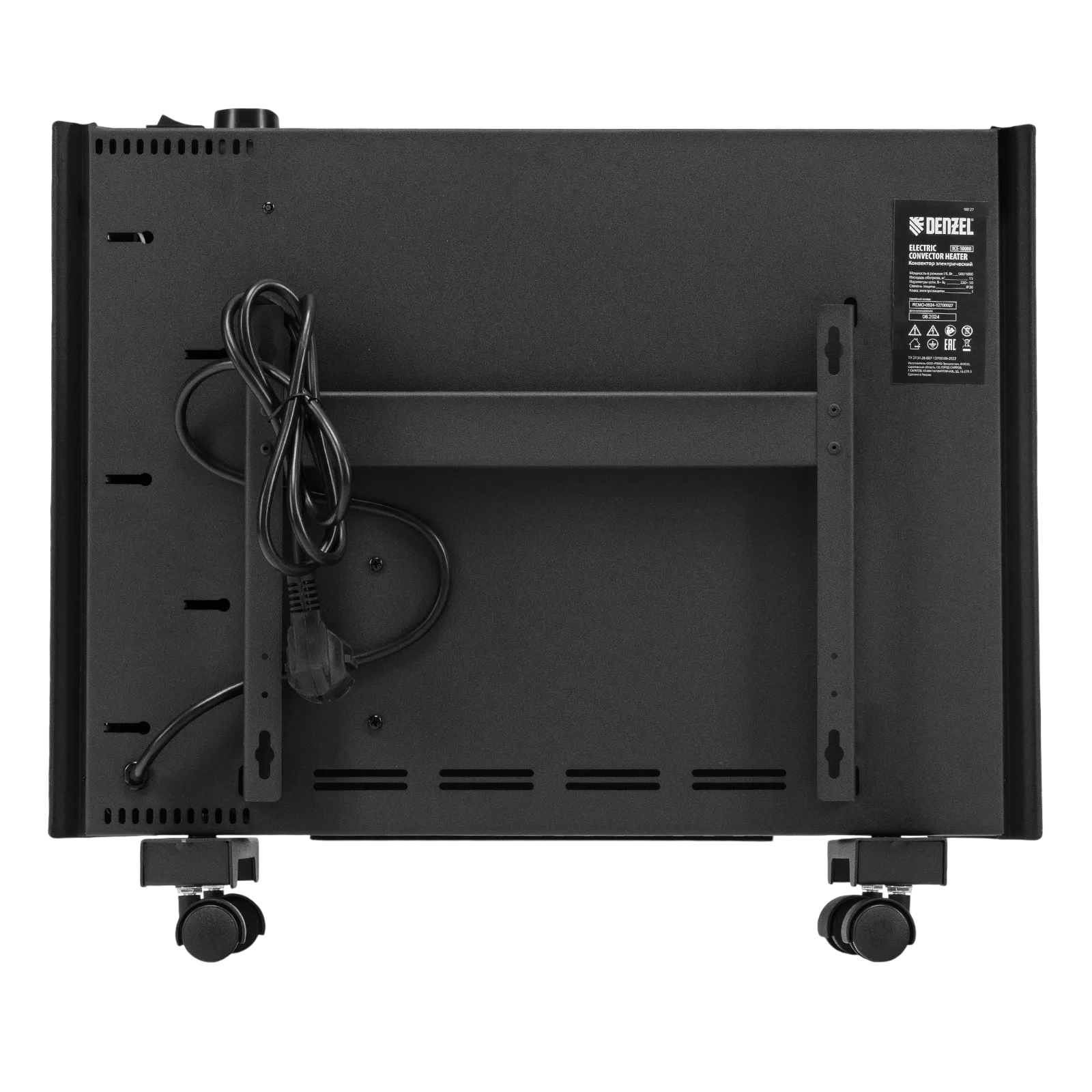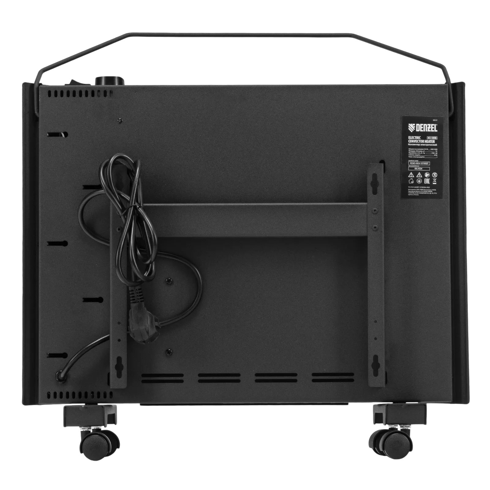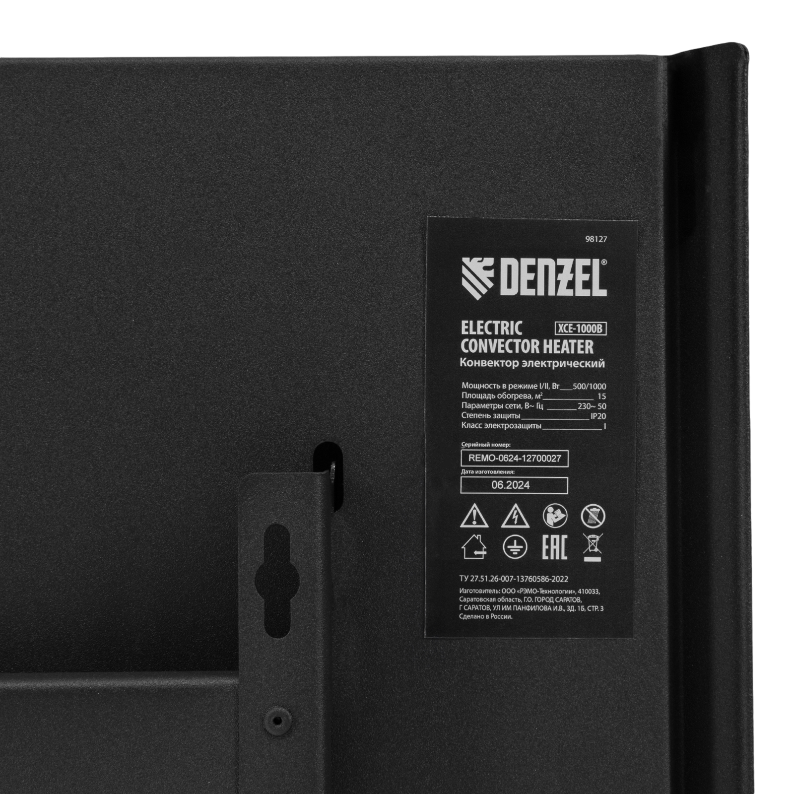 Электрический конвектор Denzel XCE-1000B 98127 черного цвета, максимальной мощностью 1000 Вт, с сушилкой для одежды, колесами и X-образным нагревательным элементом, работает от сети 230 В и предназначен для обогрева закрытых помещений площадью до 15 м2. Надежный и долговечный X-образный нагревательный элемент обеспечивает быстрый нагрев до необходимой температуры.