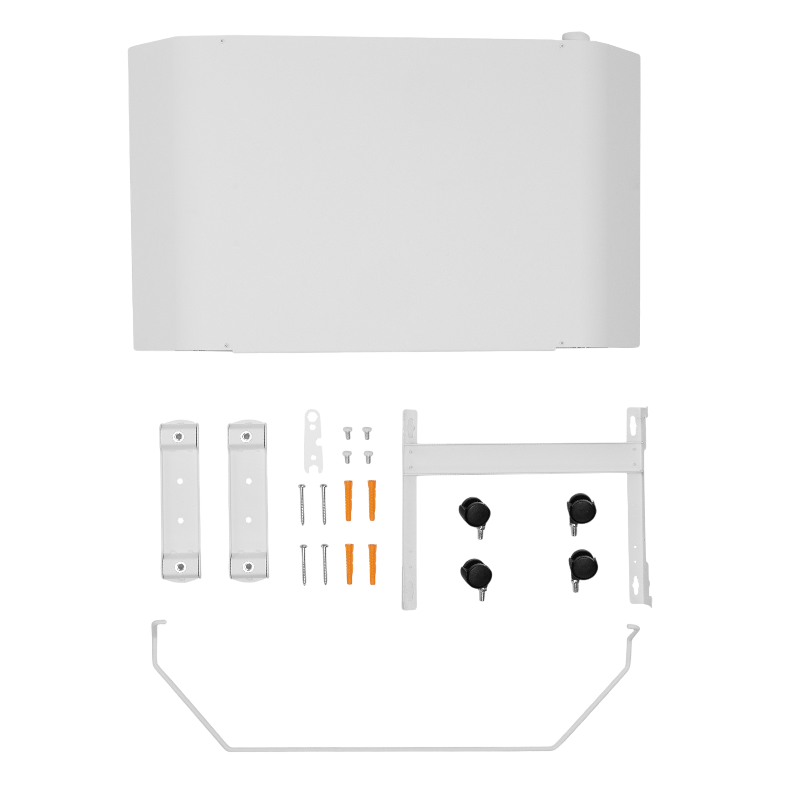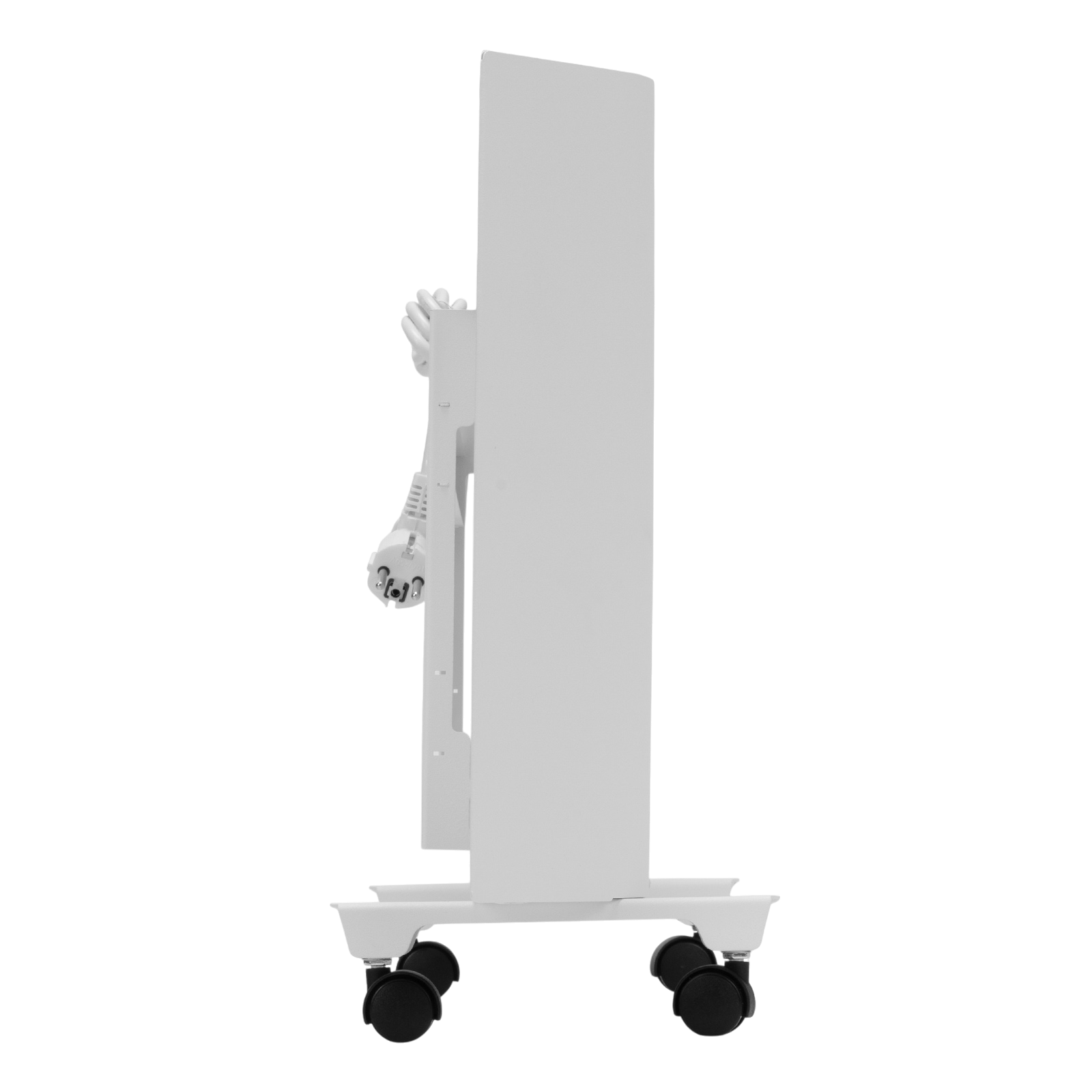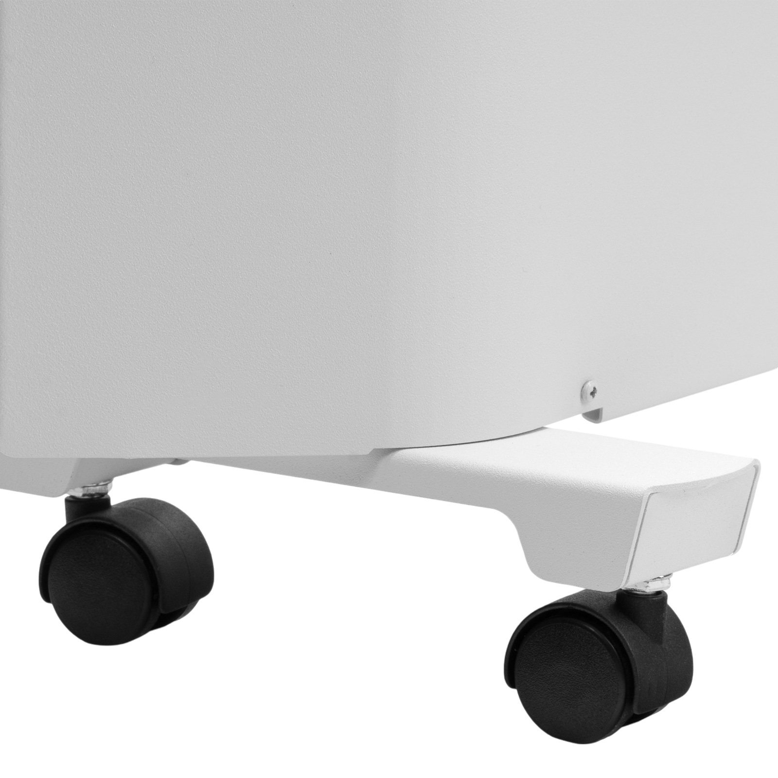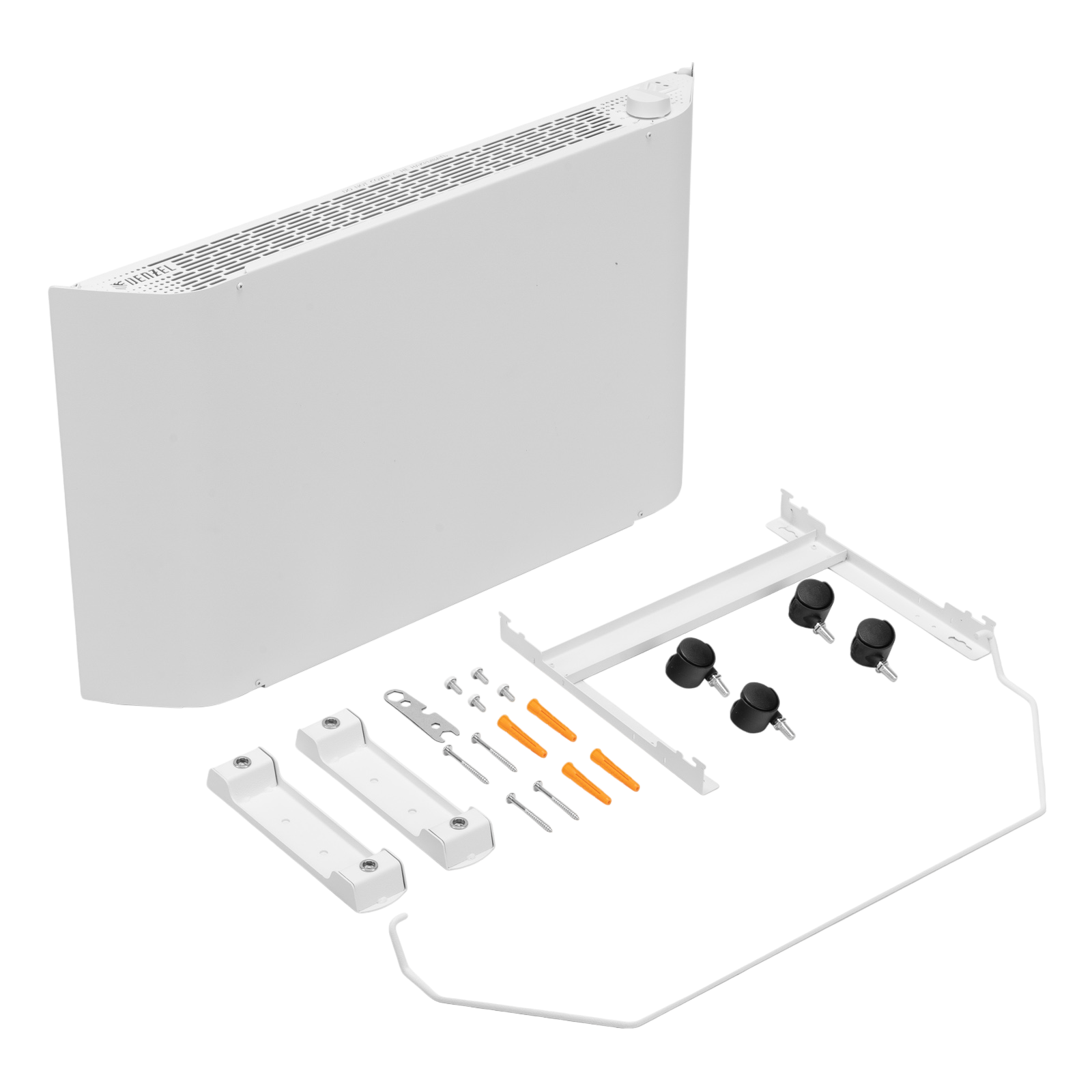 - Напольная или настенная установка — в комплект поставки включена цельнометаллическая крепежная рамка для стены, а также стальные ножки с колесами.