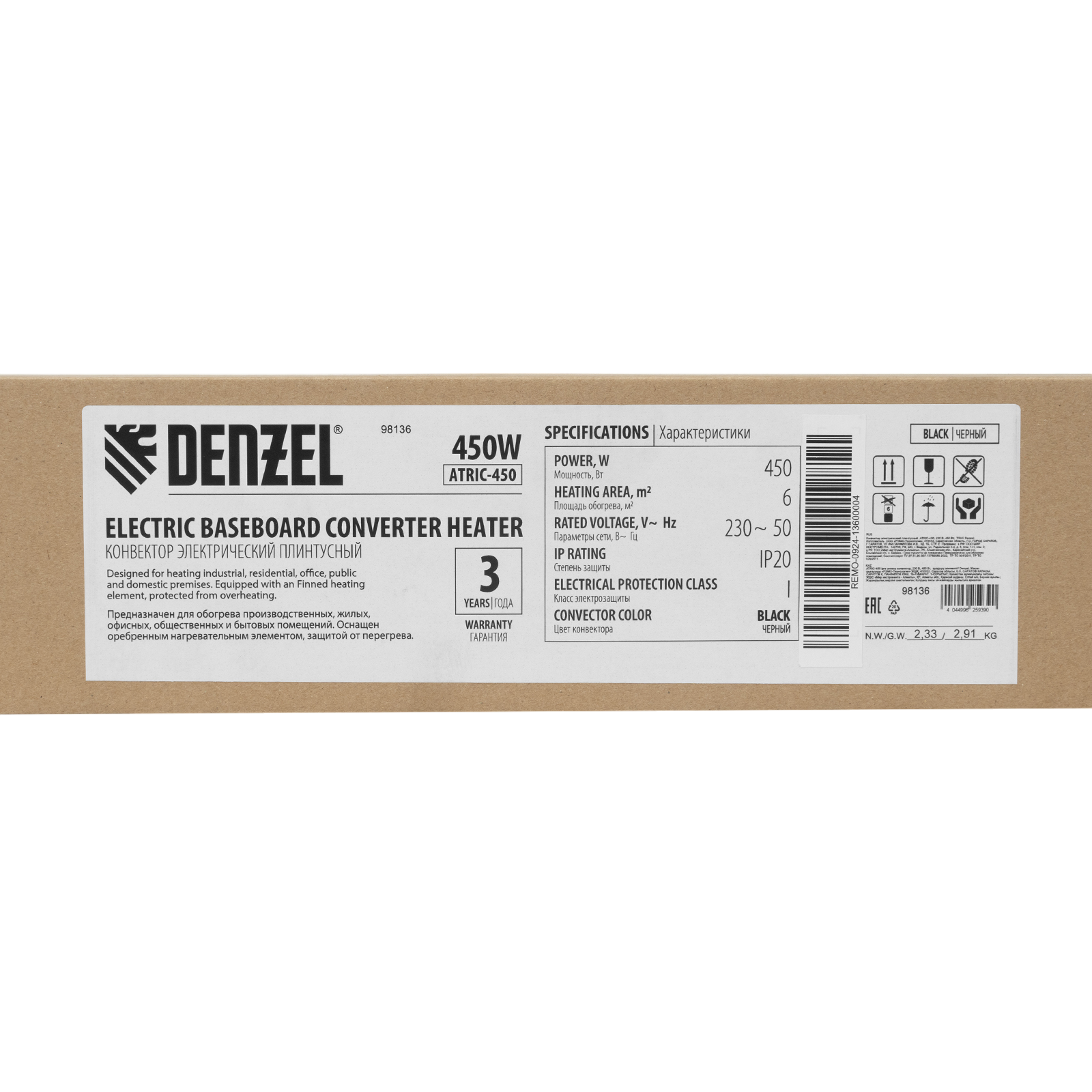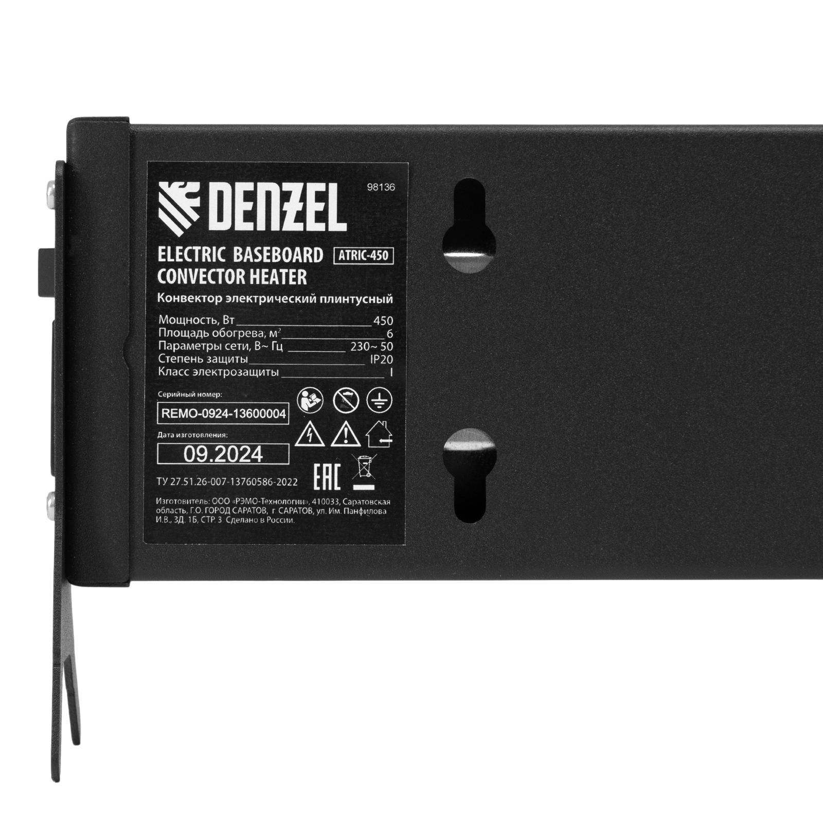Электрический плинтусный конвектор Denzel ATRIC-450B 98136 черного цвета, мощностью 450 Вт, работает от сети 230 В и предназначен для обогрева закрытых помещений при помощи трубчатого нагревательного элемента (ТЭН). Площадь обогрева составляет 6 м2. Оребренный нагревательный элемент обеспечивает увеличенную площадь контакта с окружающей средой, что повышает скорость нагрева воздуха. Конвектор пригодится в квартире, офисе и на производстве.