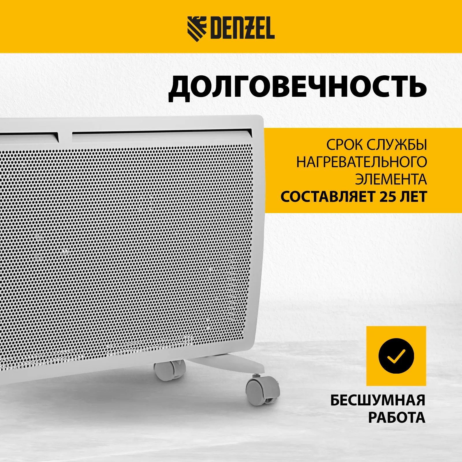 - Долговечность — срок службы нагревательного элемента составляет 25 лет.