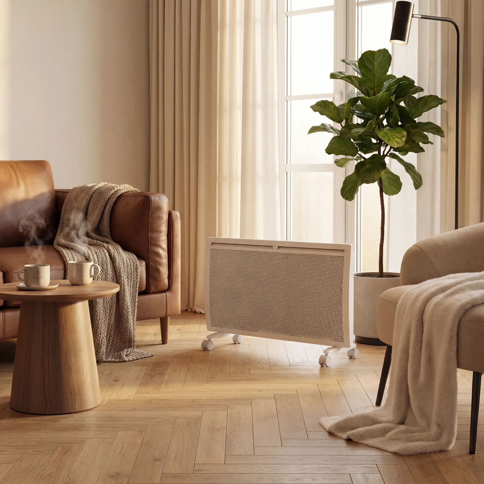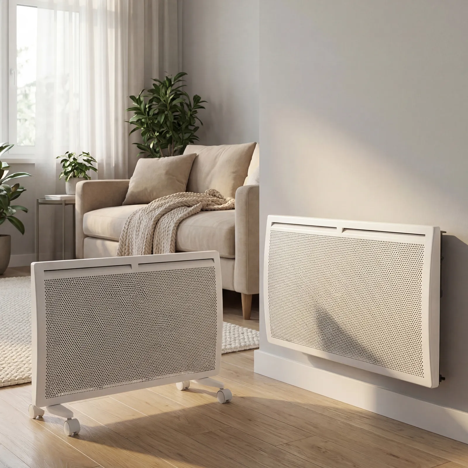 - Высокая энергоэффективность — гибридный нагревательный элемент излучает инфракрасное тепло и одновременно обеспечивает конвекцию воздуха, что позволяет прогревать помещение заметно быстрее при тех же затратах энергии.
