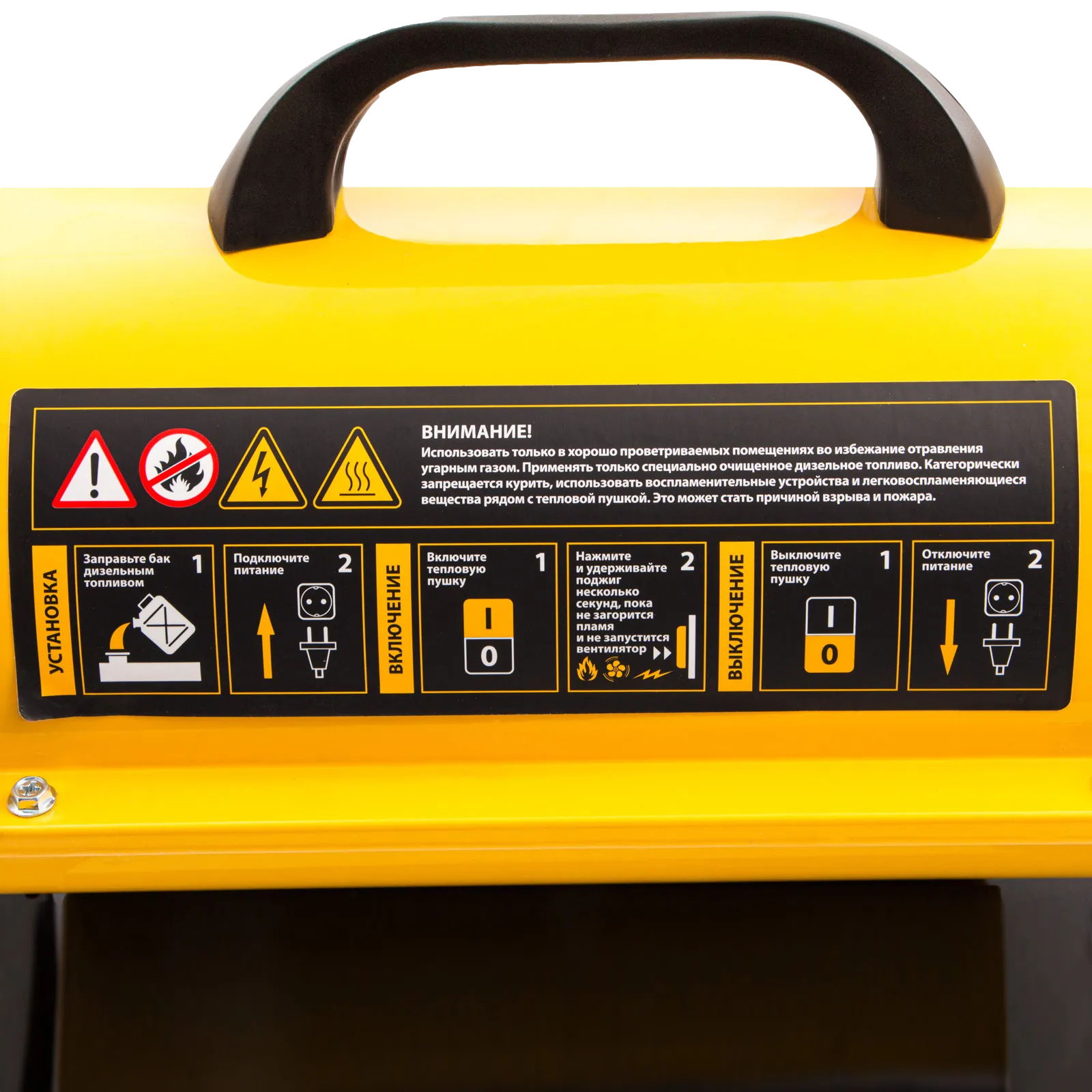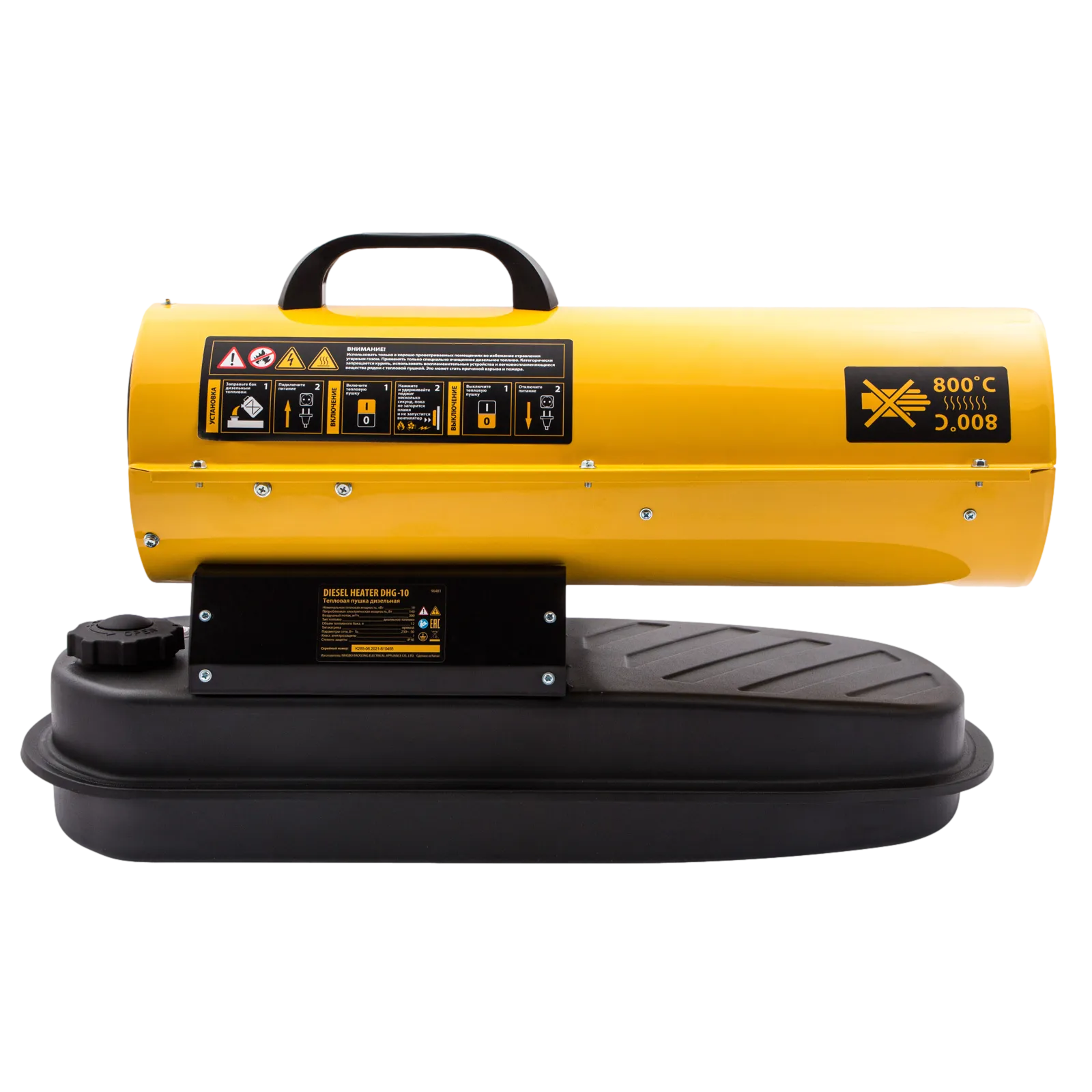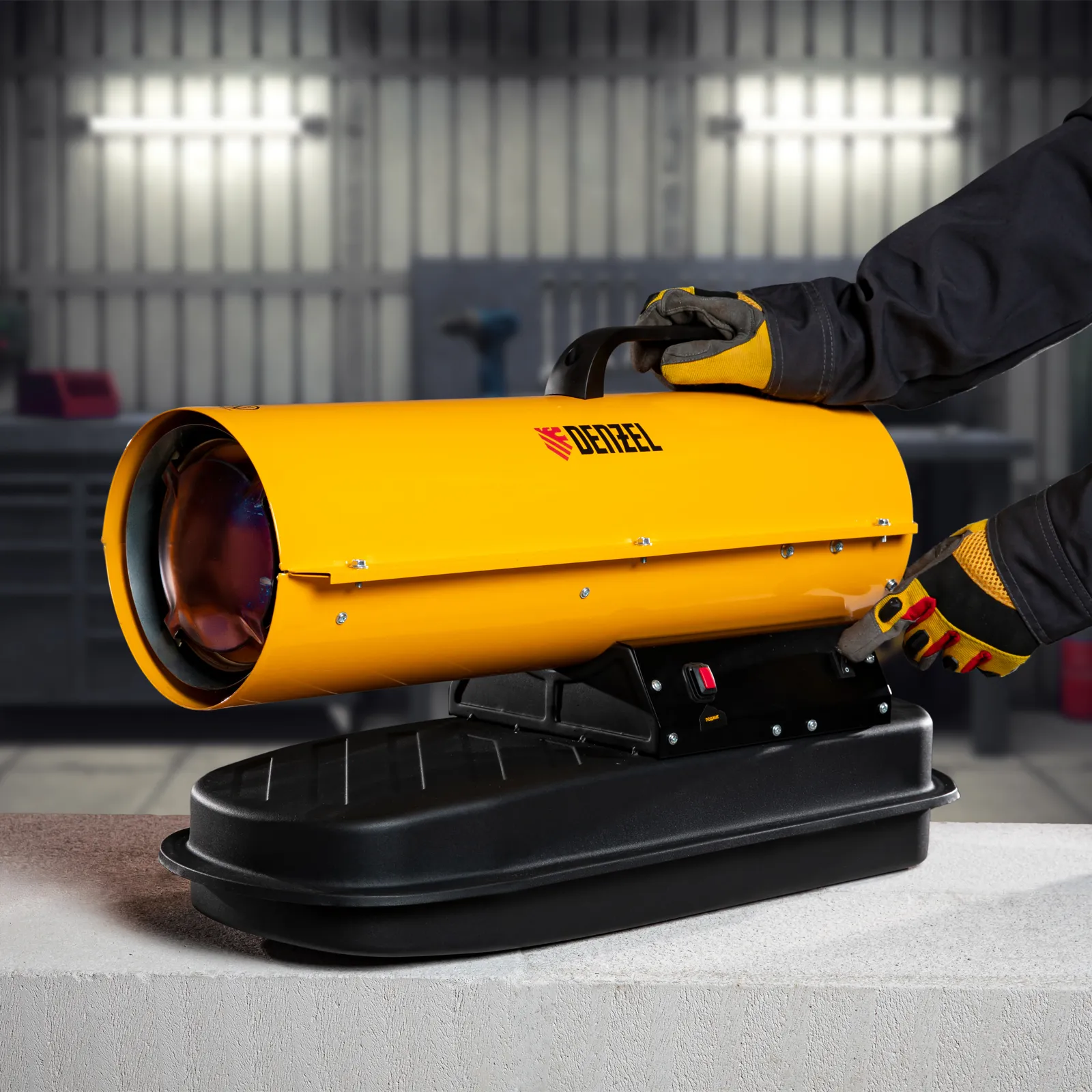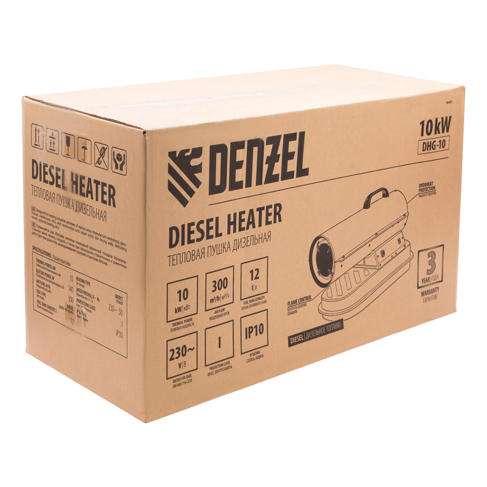 Дизельная тепловая пушка Denzel DHG-10 96481 мощностью 10 кВт и производительностью 300 м³/ч предназначена для прямого нагрева воздуха в цехах, ангарах, хранилищах и других нежилых помещениях с хорошей вентиляцией. Максимальная площадь обогрева составляет 100 м². Пушка служит эффективным источником тепла в полярных экспедициях. Пригодится также на строительной площадке для прогрева бетона, просушки стен и разморозки траншей. Для заправки может использоваться любое дизельное топливо: летнее, зимнее и арктическое.