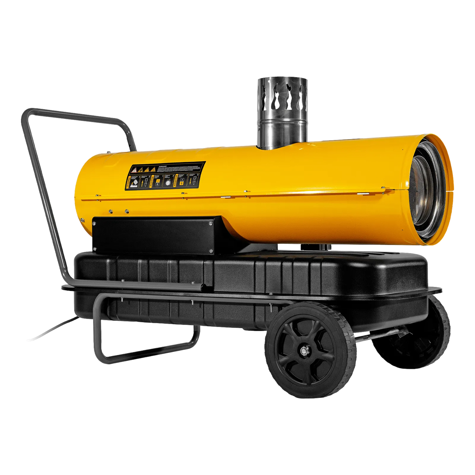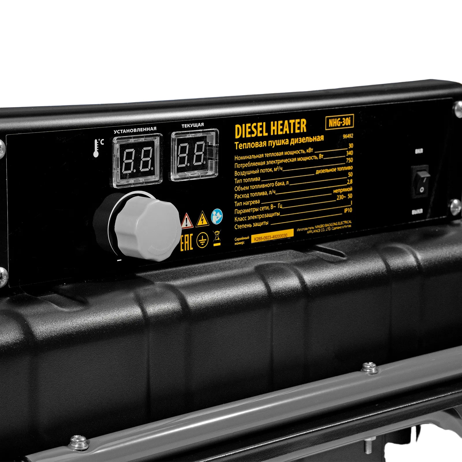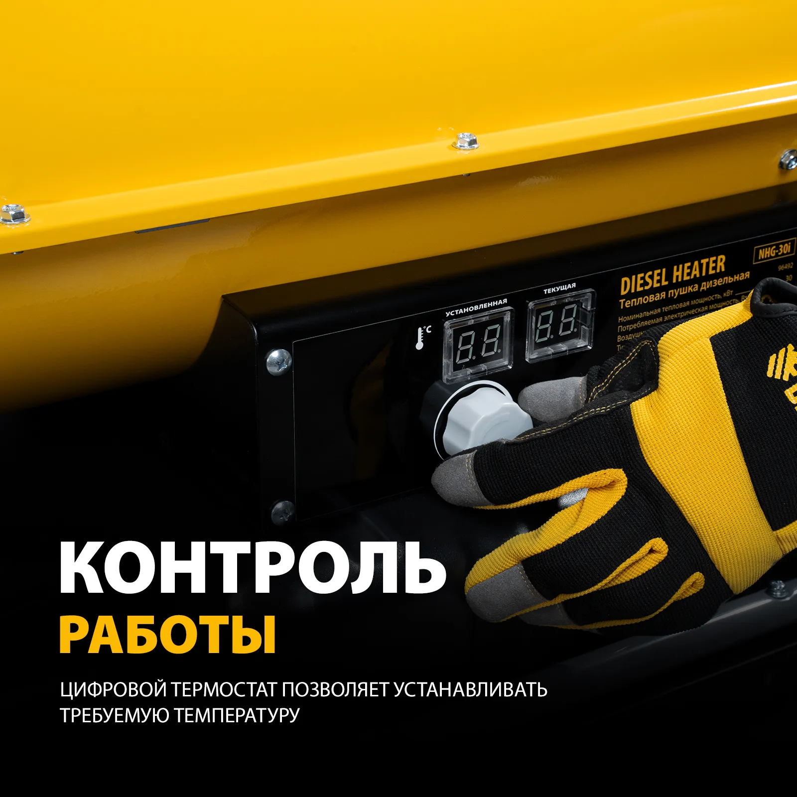 Дизельная тепловая пушка непрямого нагрева DENZEL NHG-30i 96492 с цифровым термостатом обладает тепловой мощностью 30 кВт и генерирует поток теплого воздуха 750 м3/ч. Предназначена для обогрева шатров, палаток, складов, а также технических помещений, ангаров, теплиц и строительных объектов. В работе пушки используется схема непрямого нагрева: при помощи отводного патрубка продукты горения можно полностью вывести за пределы помещения. Такое решение позволяет использовать устройство в присутствии людей.