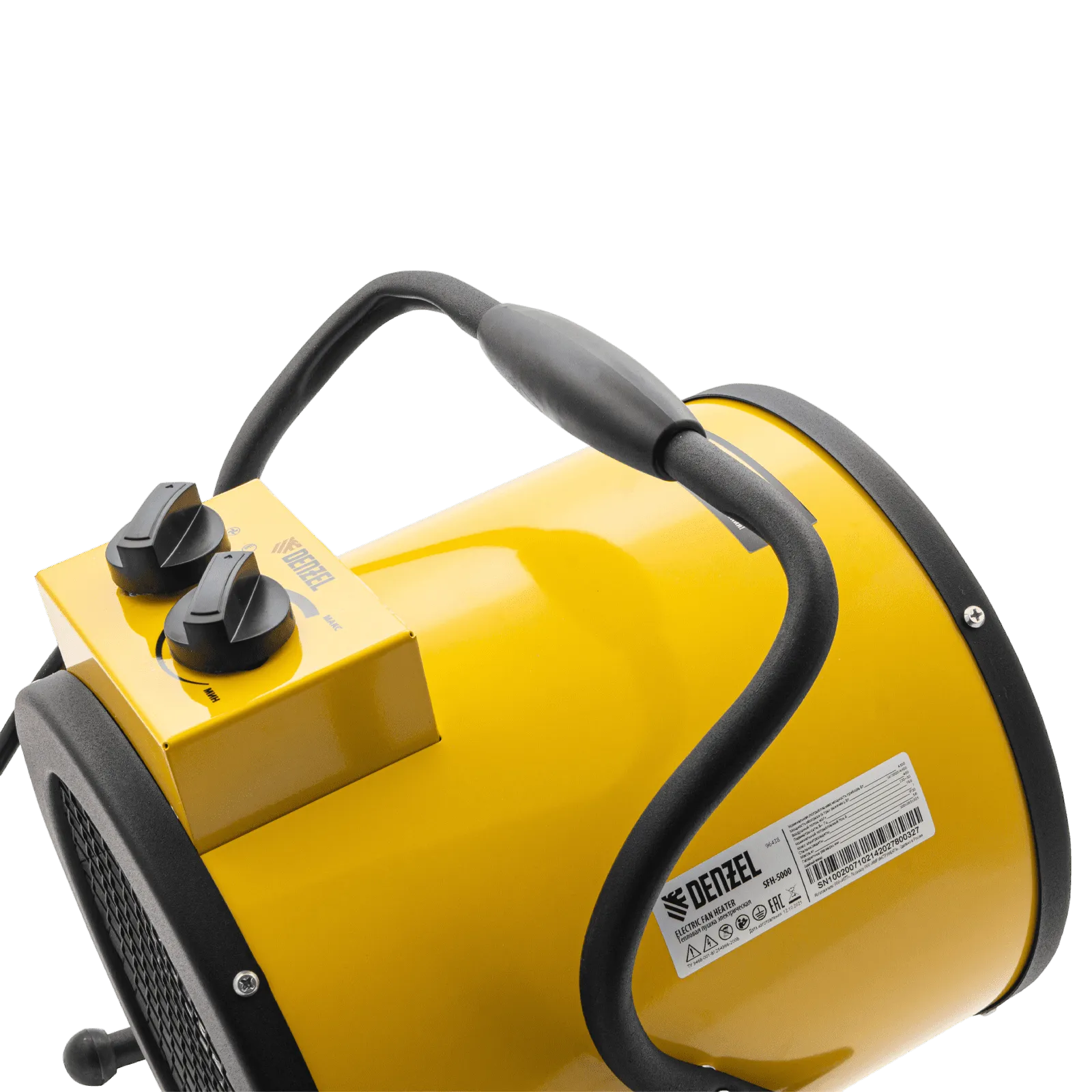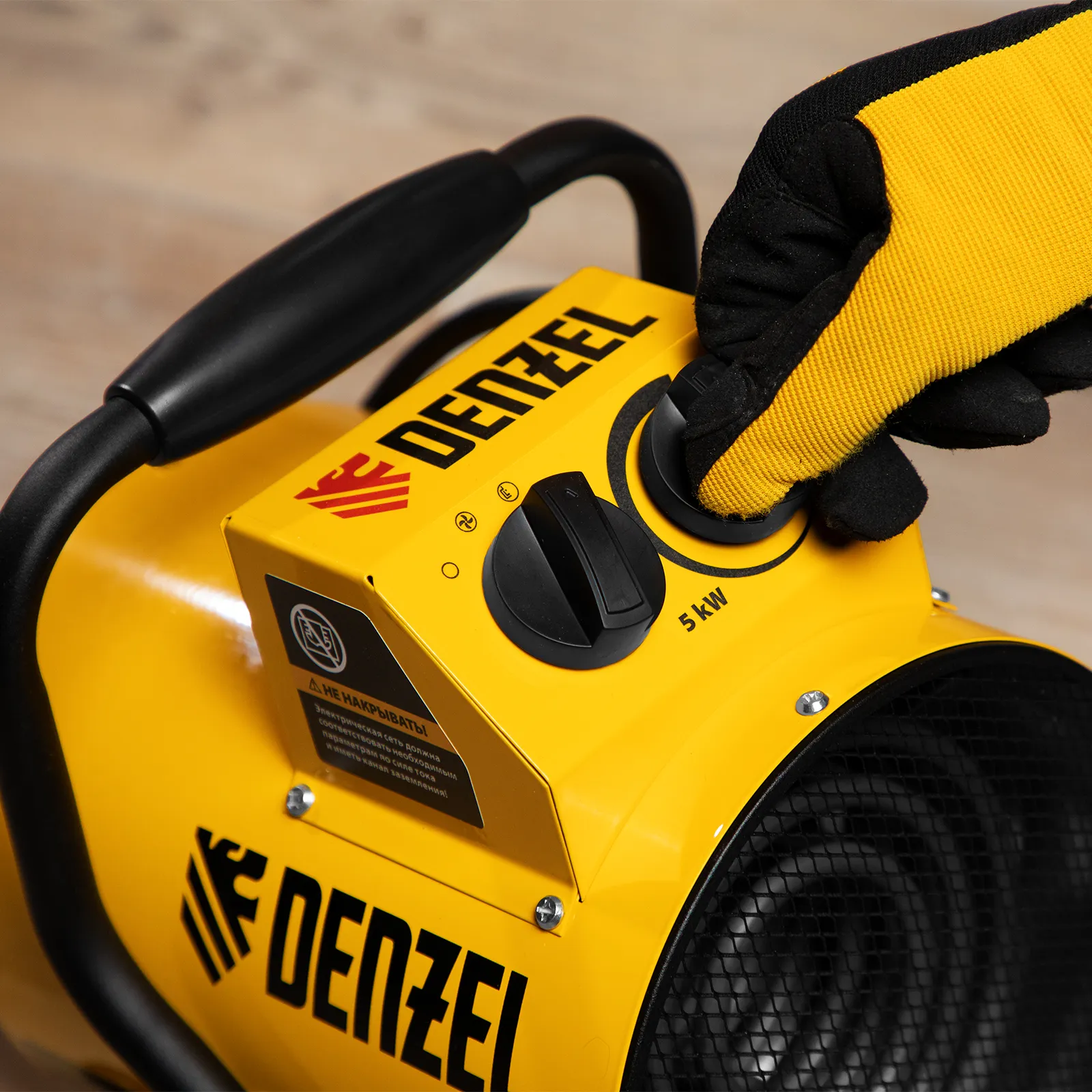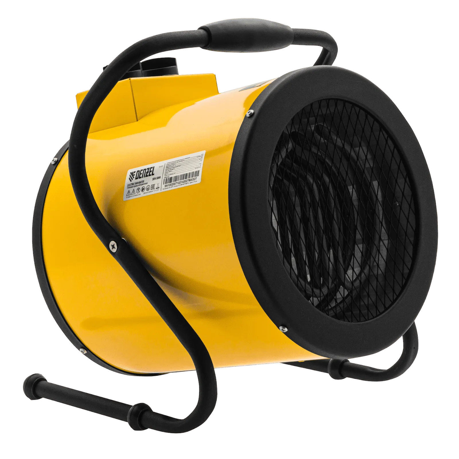 Тепловая пушка профессиональной серии Denzel SFH-5000 96438 питается от сети 230 В и генерирует воздушный поток мощностью 260 м³/ч. Работает в одном из 3 режимов: вентилятор, обогрев на мощности 2250 и обогрев на мощности 4500 Вт. Используется в складских, производственных, общественных помещениях площадью до 45 м². Подходит для дистанционной просушки поверхностей, например, окрашенных или оштукатуренных стен во время отделочных работ.