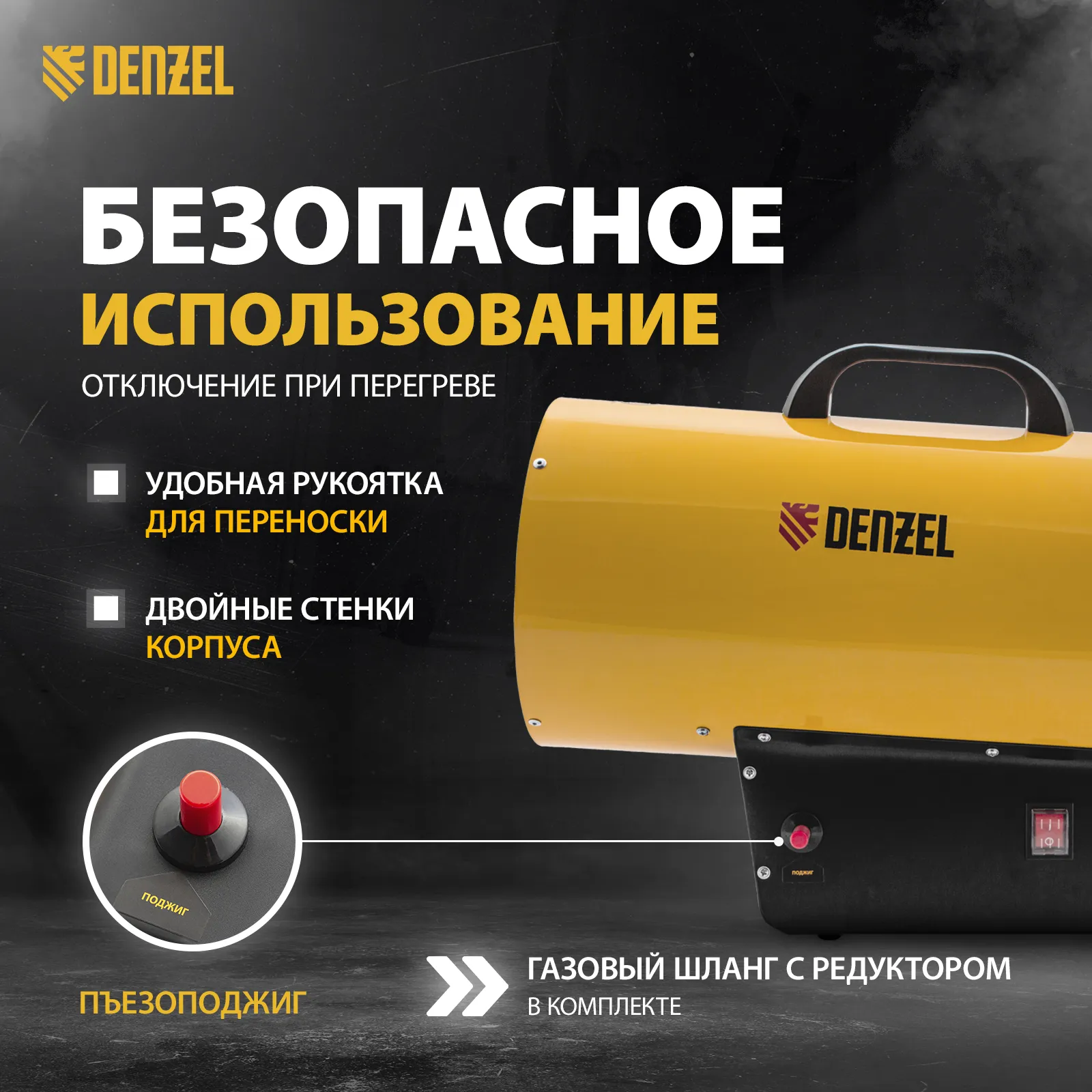 - Быстрый старт — для запуска тепловой пушки предусмотрен пьезоподжиг.