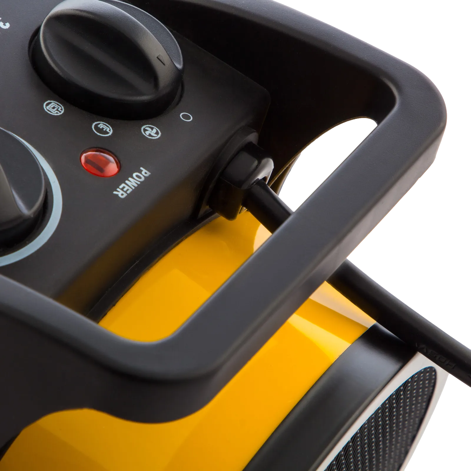 - Удобное хранение и транспортировка — тепловентилятор весит 1,8 кг, на корпусе предусмотрена рукоятка.
