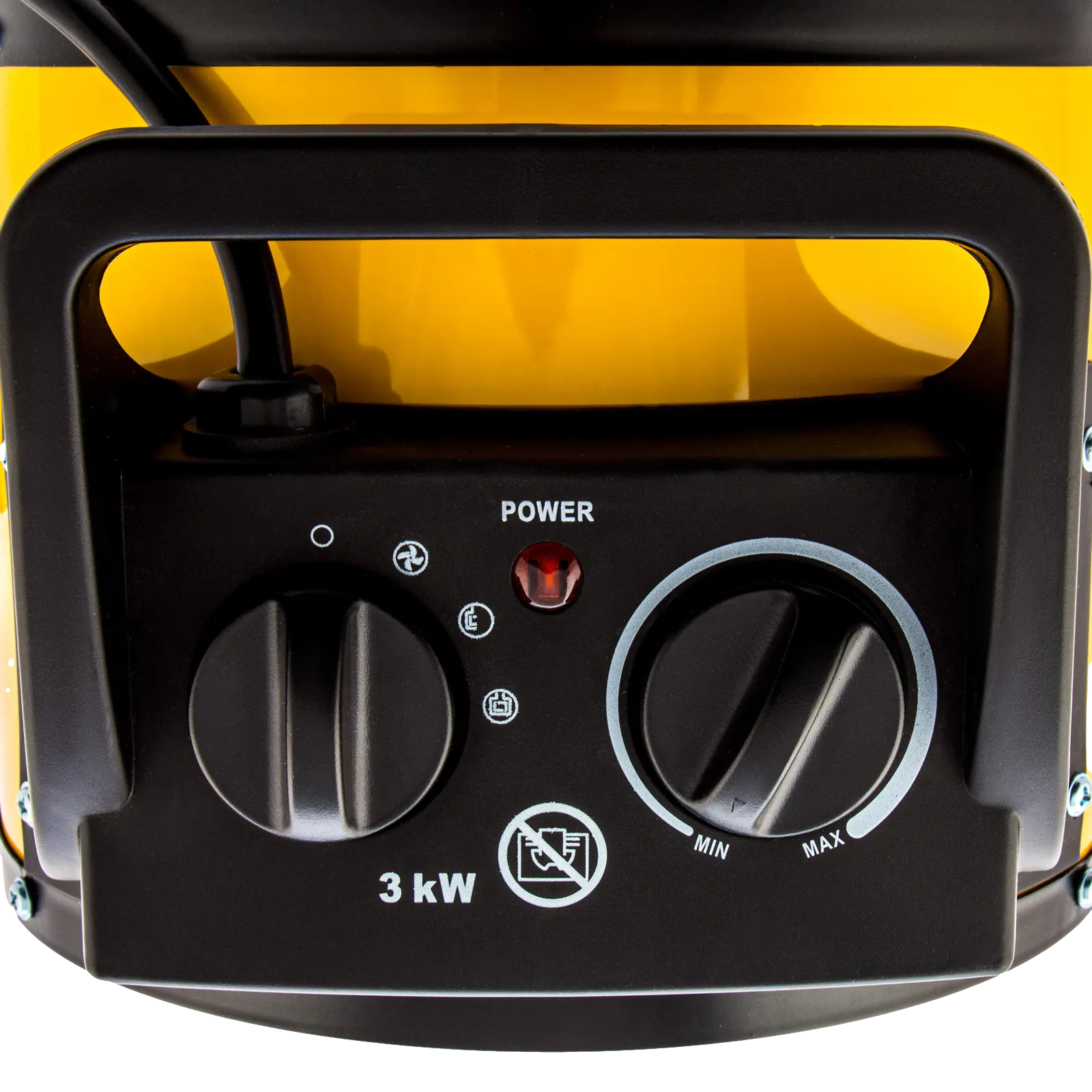 Тепловая пушка Denzel DHC 3-150 96431 работает на мощности 0,025, 1,5 или 3 кВт в зависимости от установленного режима. Подходит для бытового и полупрофессионального применения. С ее помощью можно обогреть помещение площадью до 30 м² или дистанционно просушить поверхность после отделки (оштукатуренные и окрашенные стены, стяжки). Также устройство можно использовать как вентилятор в жару. Керамический нагревательный элемент не сушит воздух и не выделяет вредных веществ, поэтому тепловентилятор безопасен для людей и животных.