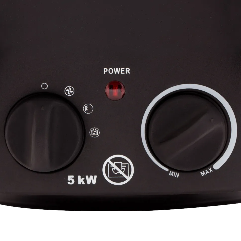 - Устойчивая конструкция — широкая опора с 4 ножками исключает опрокидывание тепловентилятора.