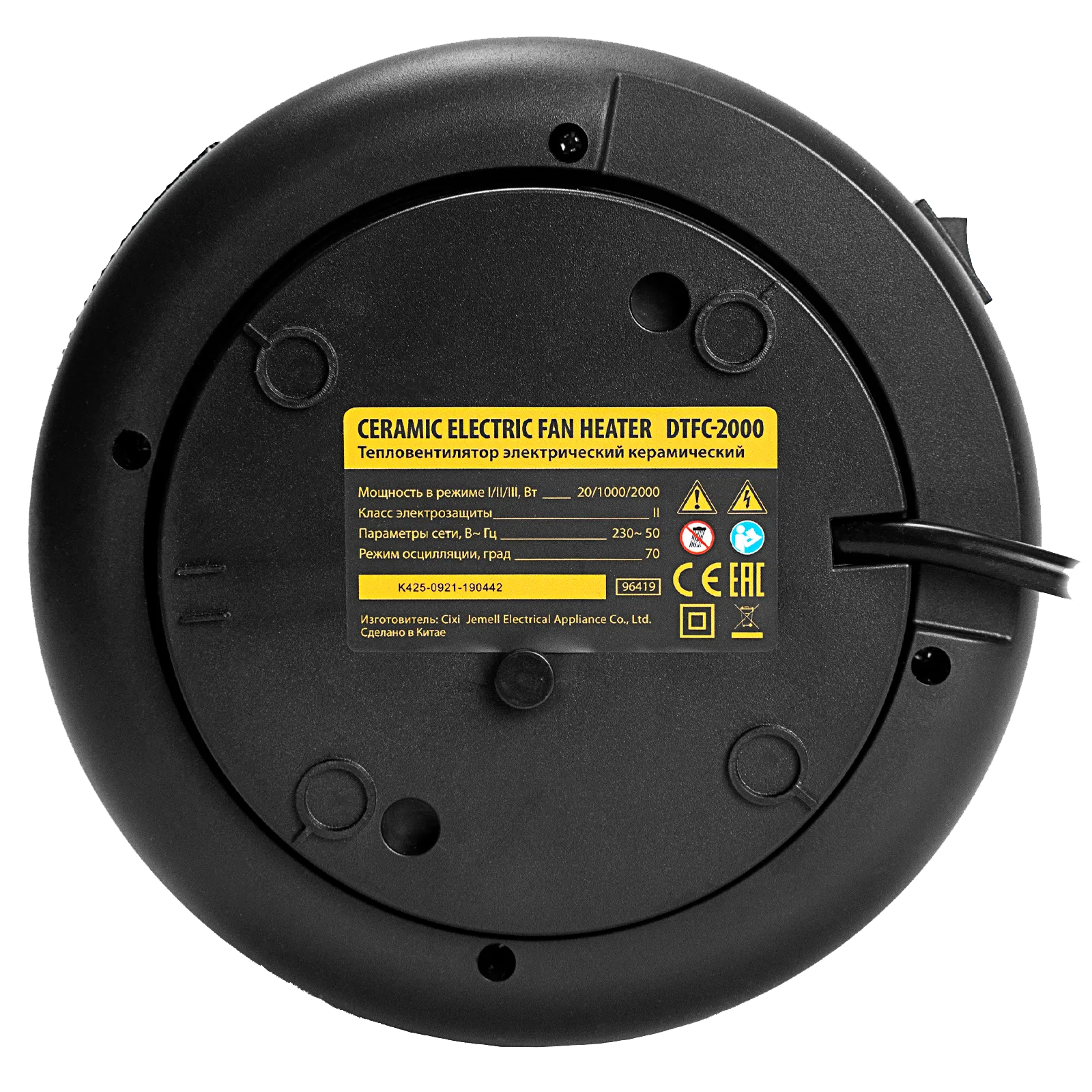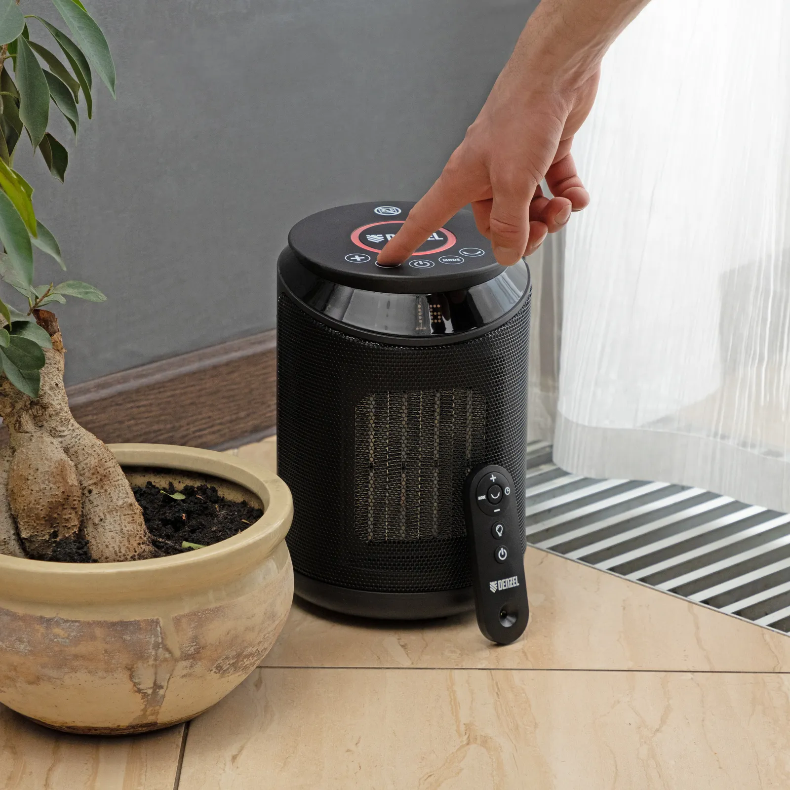 Электрический тепловентилятор Denzel DTFC-2000, 96419 с керамическим нагревательным элементом предназначен для обогрева и вентилирования бытовых помещений площадью до 20 м2. Он позволяет поддерживать комфортный климатический режим как в холодное, так и в теплое время года. Удобный и компактный тепловентилятор способен работать в 3 режимах: вентиляция, обогрев теплым и горячим воздухом. С помощью цифрового терморегулятора можно настроить необходимую температуру.