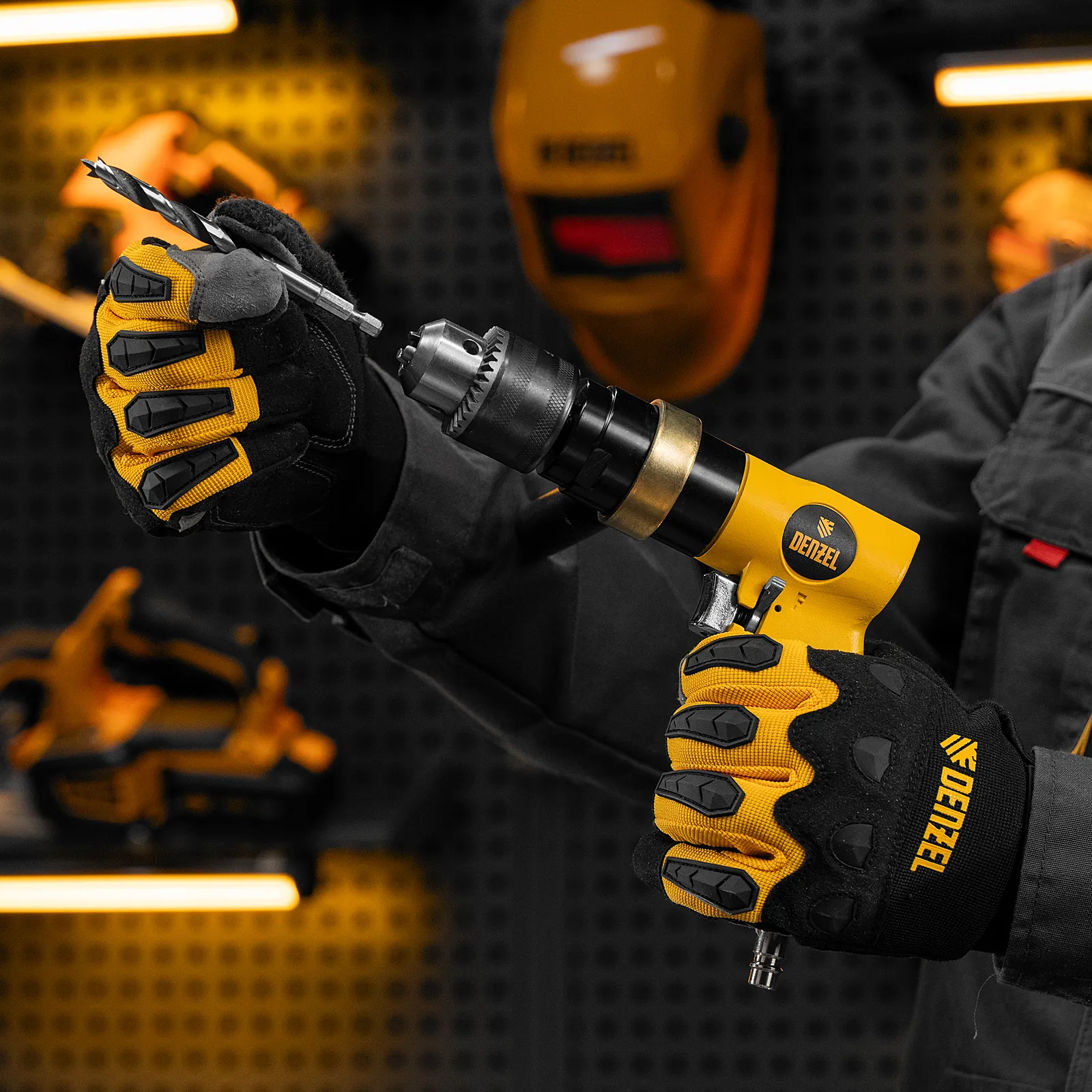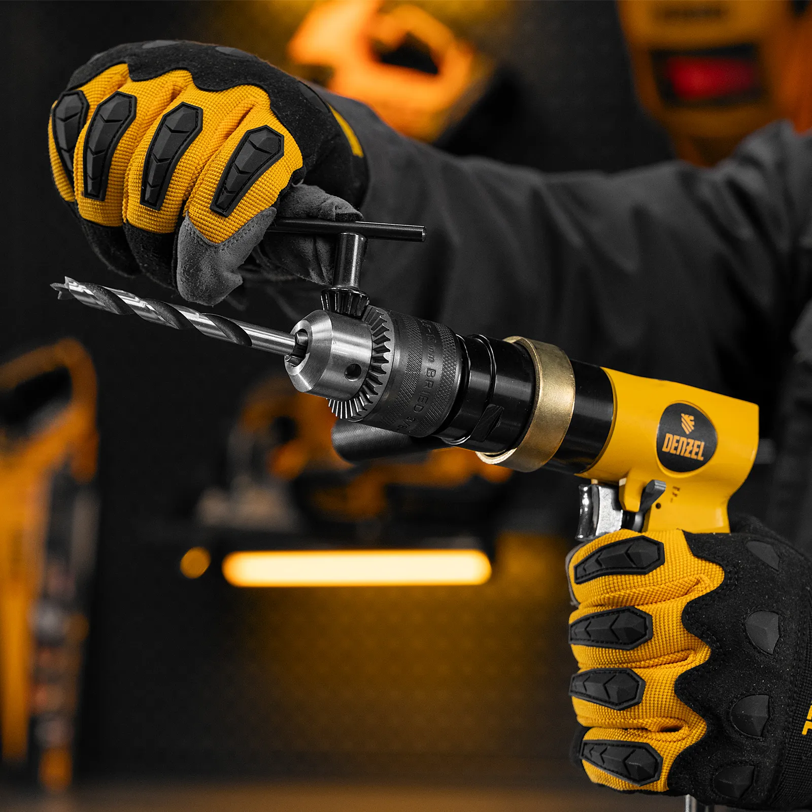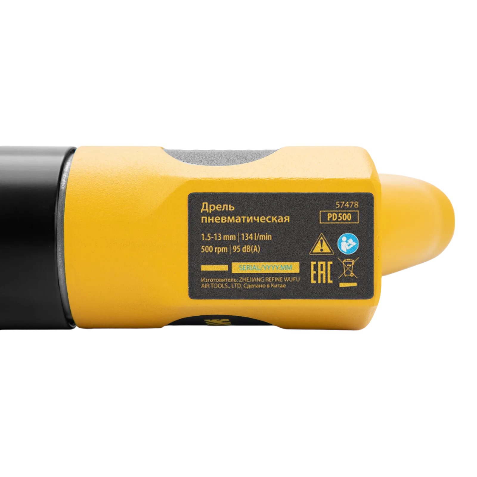 Пневматическая дрель Denzel PD500 57478 с ключевым патроном 1,5-13 мм работает со скоростью 500 об/мин при среднем расходе сжатого воздуха 114 л/мин. Используется для сверления отверстий в древесине, металле и пластике, закручивания и откручивания резьбовых крепёжных элементов. Дрель может применяться в строительстве, монтажных работах, ремонте и обслуживании автомобилей, на малых производствах и в домашних мастерских.;Инструмент предназначен для работы под давлением 6,3 бар, расход воздуха не превышает 200 л/мин, поэтому в качестве источника сжатого воздуха подойдет компрессор средней мощности. Во время работы не забывайте использовать специальное масло ISO 46, которое можно добавлять как напрямую в инструмент, так и с помощью блока подготовки воздуха Denzel 57469, включающего в себя лубрикатор для автоматической подачи масла.