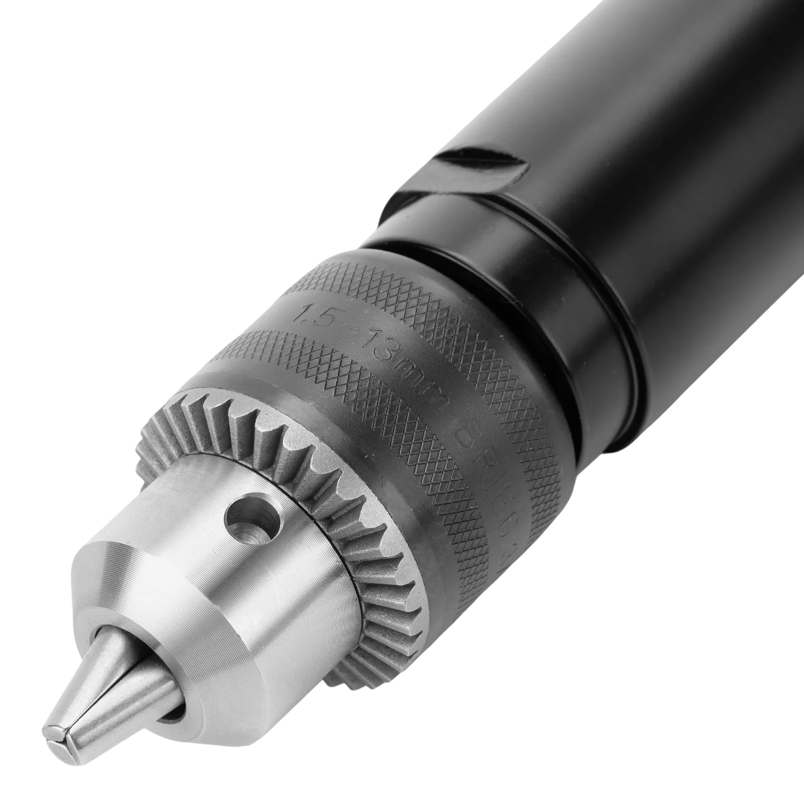 - Надежная фиксация оснастки — кулачковый ключевой патрон обеспечивает прочное крепление сверл диаметром 1,5-13 мм.