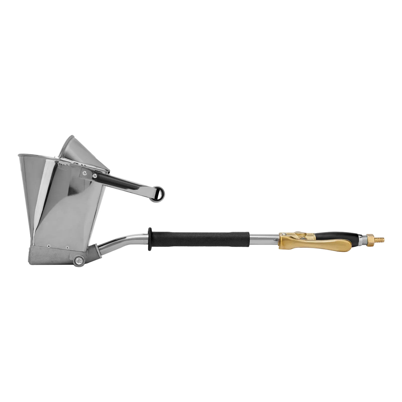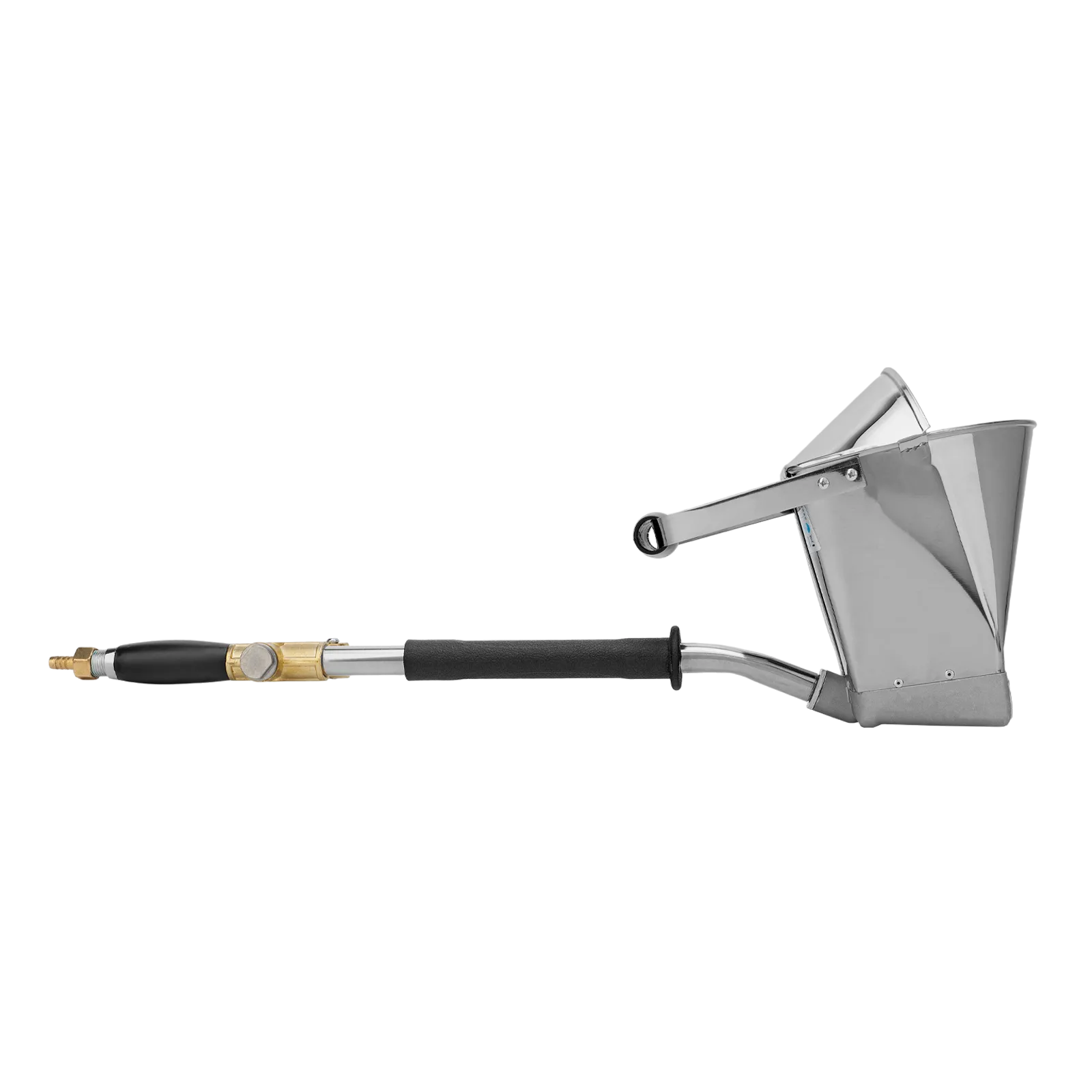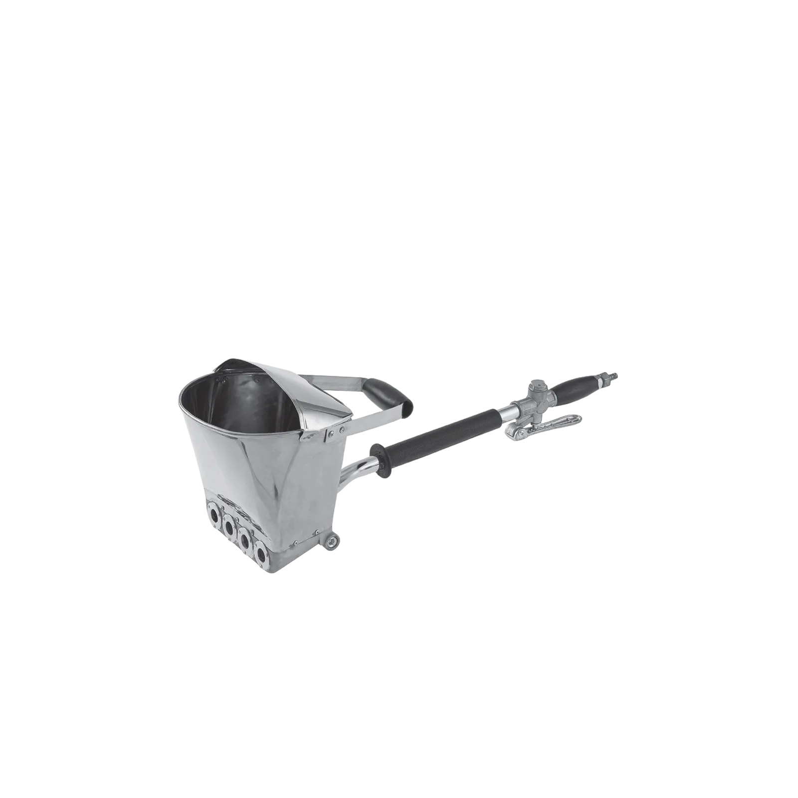 Хоппер-ковш Denzel HB1 57438 емкостью 4 л подключается к компрессору при помощи шланга с внутренним диаметром 10 мм и расходует 350 л сжатого воздуха в минуту. Используется для нанесения штукатурных растворов, позволяя ускорить выполнение отделочных работ и повысить их качество. 4 больших выходных сопла обеспечивают эффективное решение поставленных задач. Инструмент пригодится на строительной площадке.