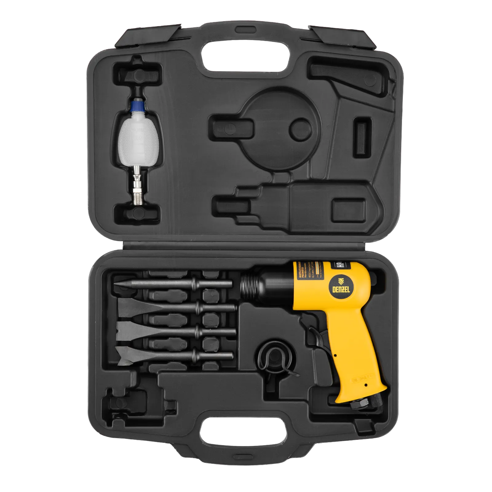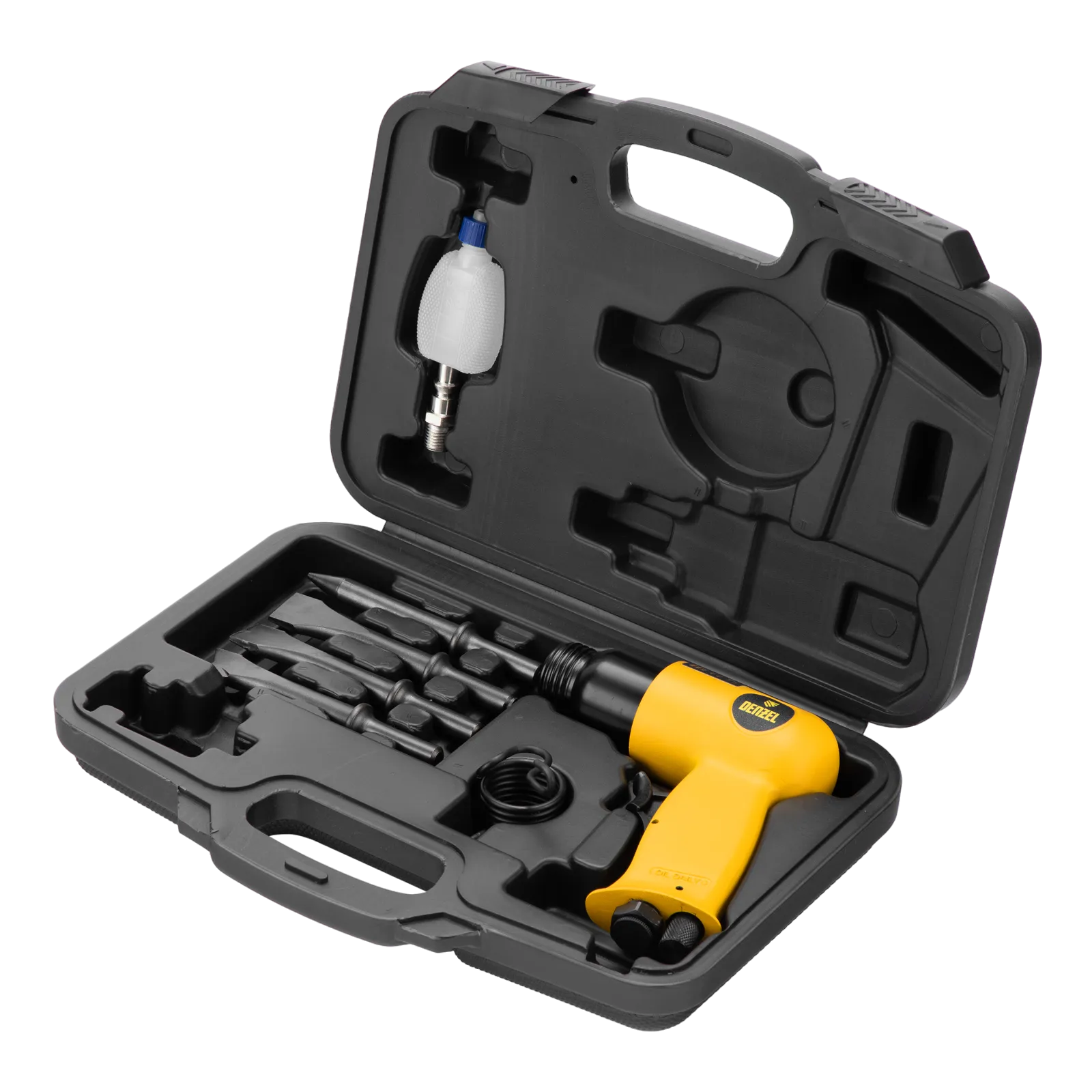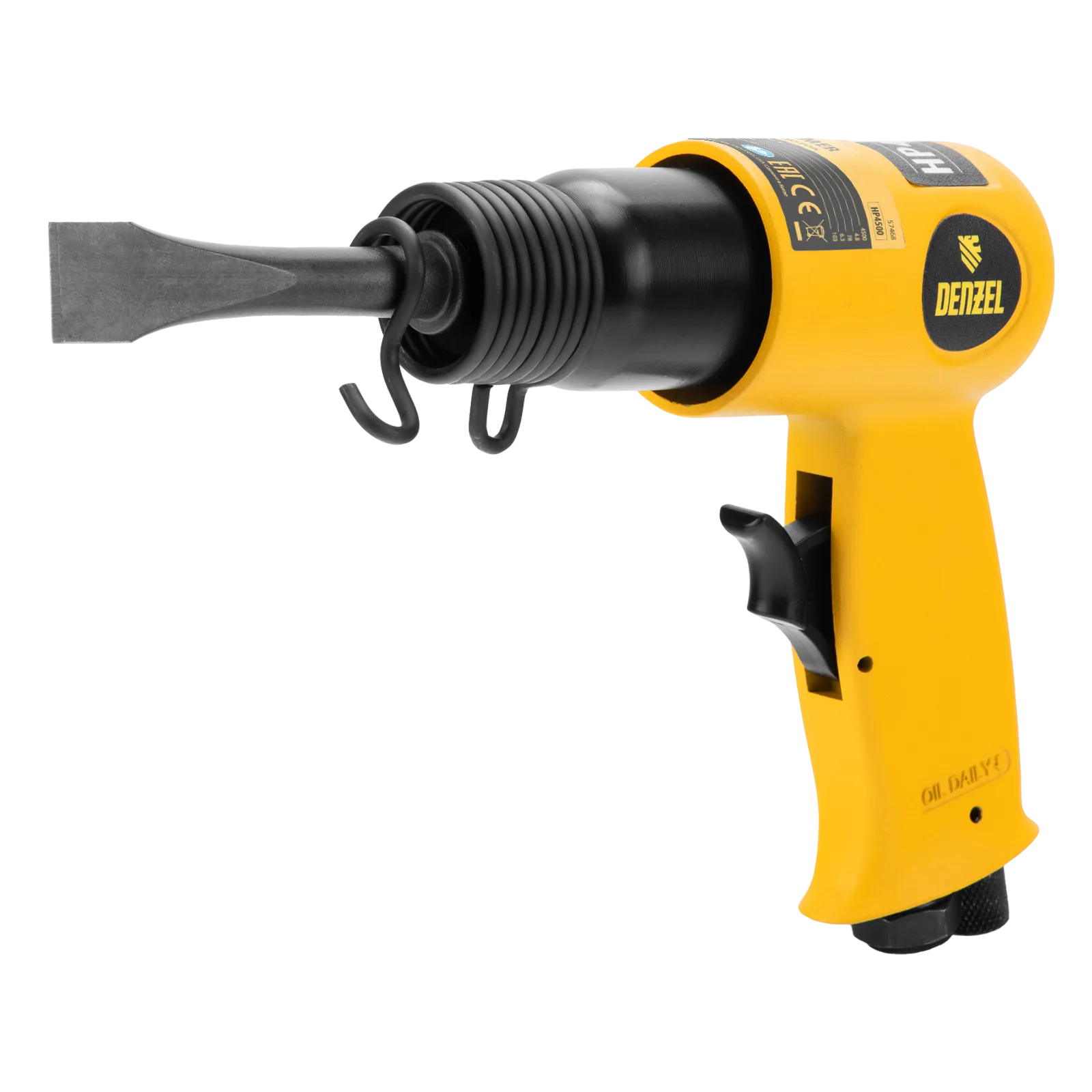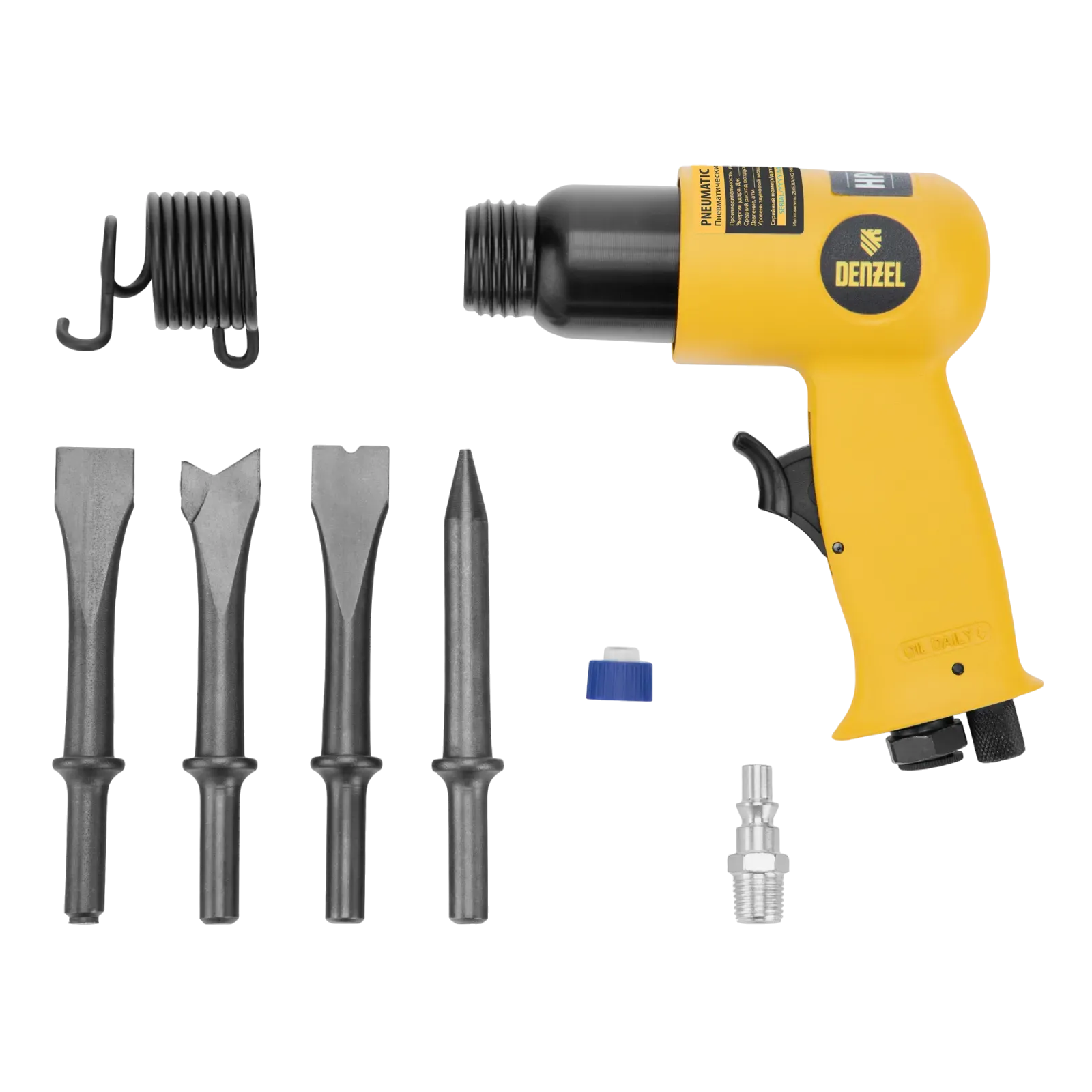 Пневматический молоток Denzel НР4500 57468 с набором насадок в комплекте, производительностью 4500 уд/мин, потребляет 113 л воздуха в минуту и используется для резки, дробления конструкций и материалов из древесины, кирпича, камня или бетона. Благодаря высокой скорости работы подходит для профессионального использования. Расход воздуха невелик, поэтому молоток можно использовать с небольшими компрессорами.