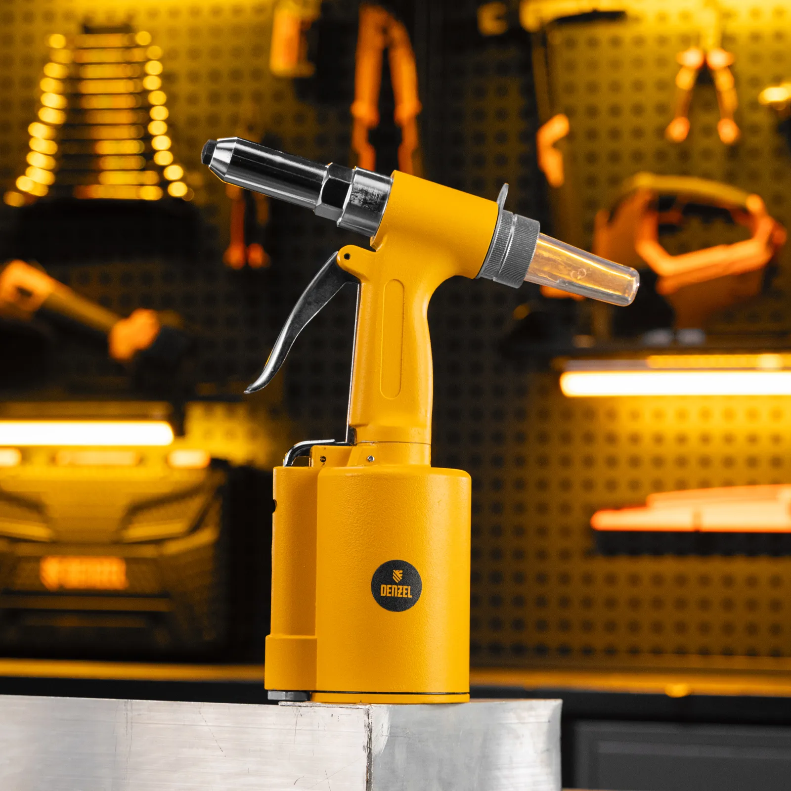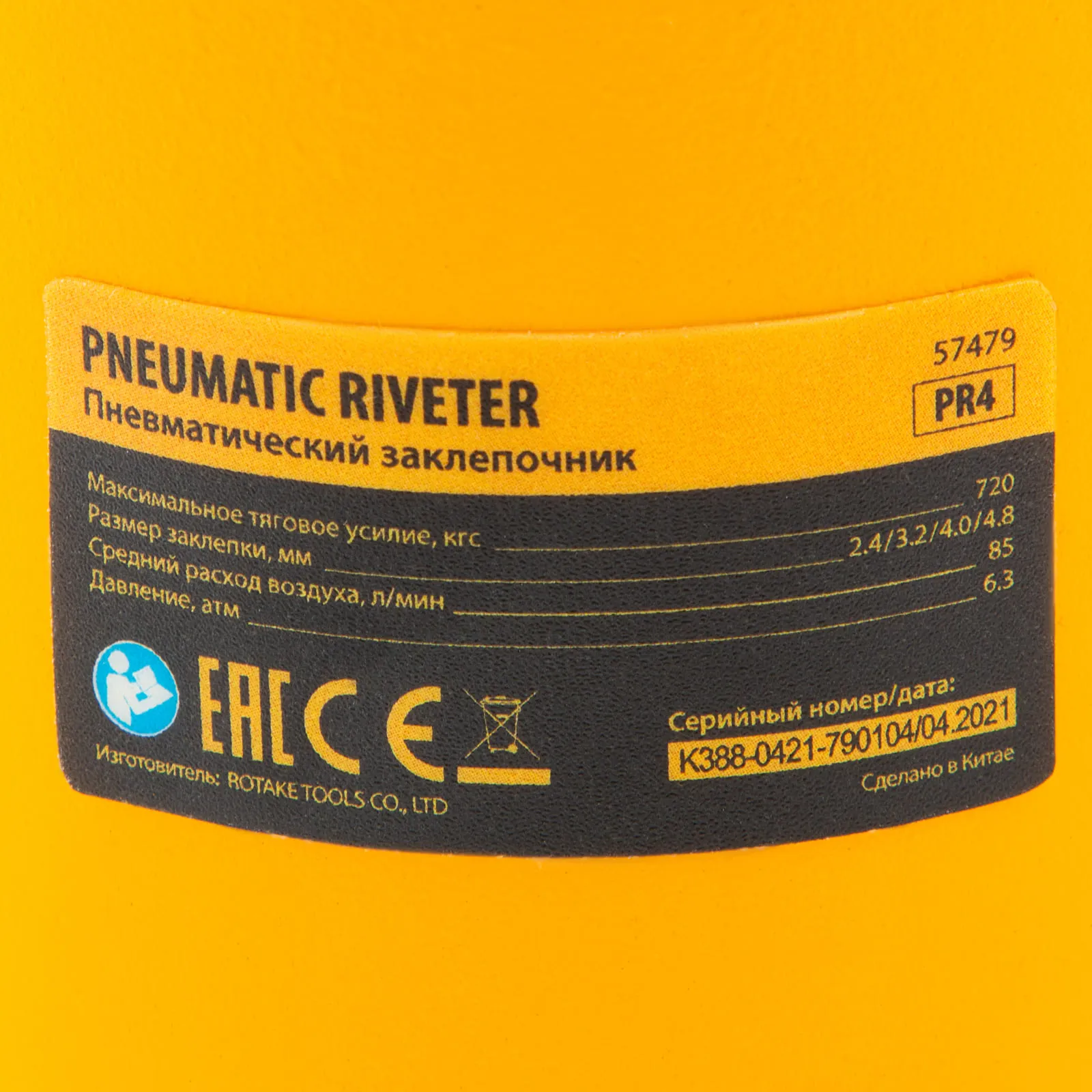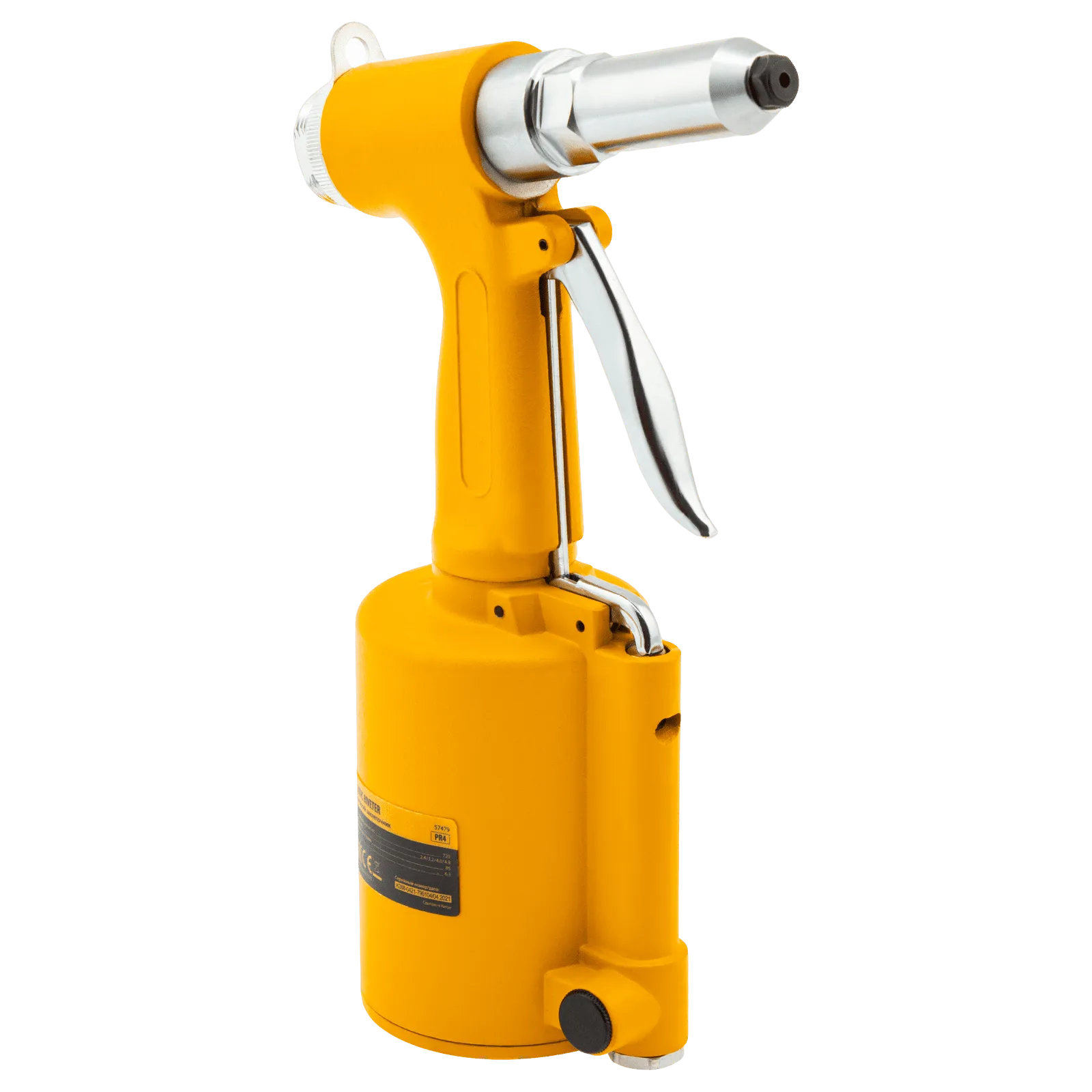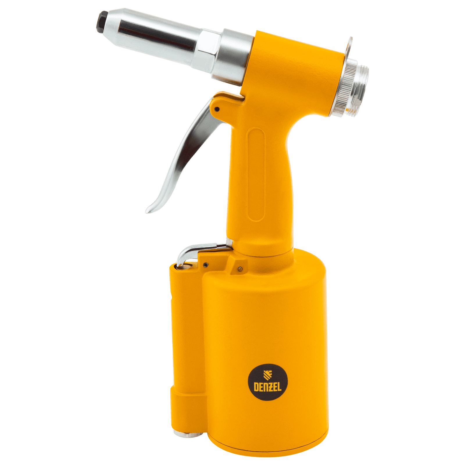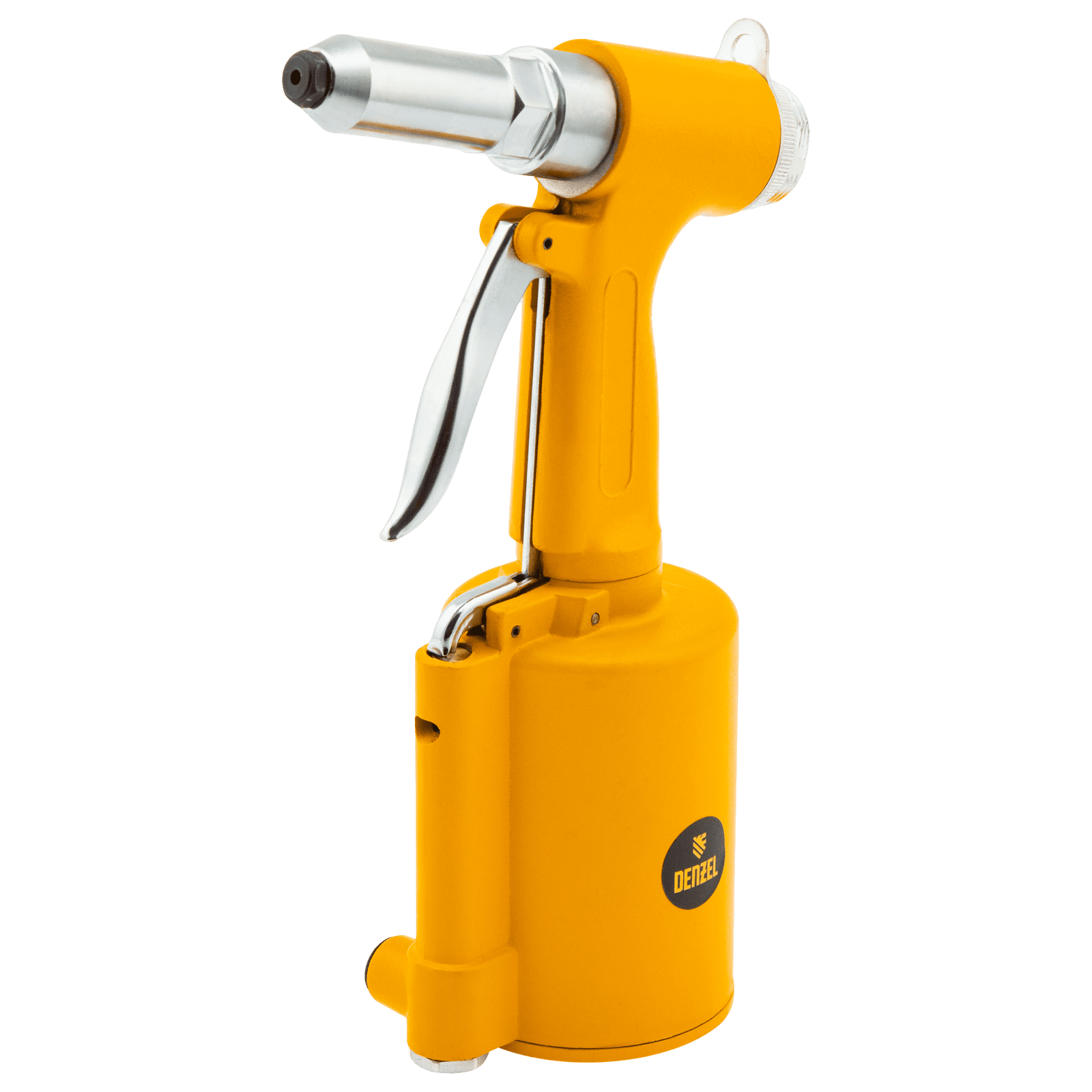 Пневматический заклепочник Denzel PR4 57479 значительно упрощает работу в автосервисах, домашних мастерских, на малых предприятиях и на ремонтных площадках. С его помощью можно без усилий скрепить листовой, профильный и панельный материал из пластика и металла.;Пистолет для вытяжных заклепок работает под давлением 6,3 АТМ и расходует всего 85 литров воздуха в минуту, поэтому для него подойдет компрессор средней мощности. В качестве оснастки используются заклепки размером 2,4-4,8 мм. В комплект поставки входит 4 насадки под заклепки размерами 2,4 мм, 3,2 мм, 4 мм и 4,8 мм.