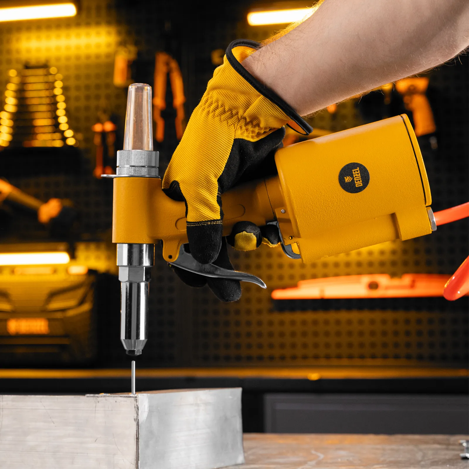 - Лоток для отработанных заклепок — специальный контейнер помогает поддерживать рабочую площадку в чистоте.