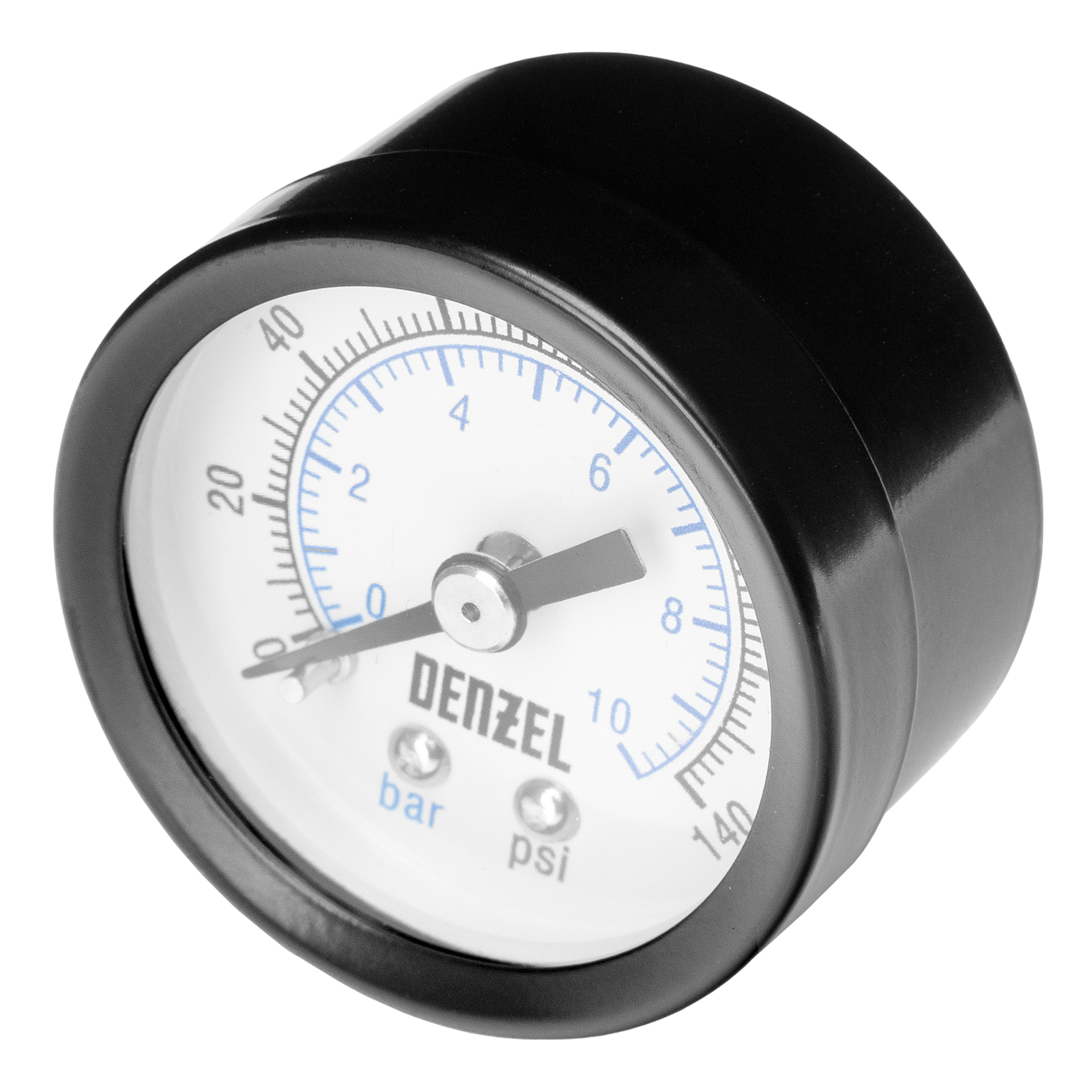 Воздушный манометр Denzel G10 57402 диаметром 40 мм, с резьбой 1/8″, — прибор для измерения давления в диапазоне 0-10 бар. Легко монтируется на стандартные соединения, может устанавливаться на компрессор для контроля работы пневмоинструмента. Пригодится на станции ТО и на производстве.