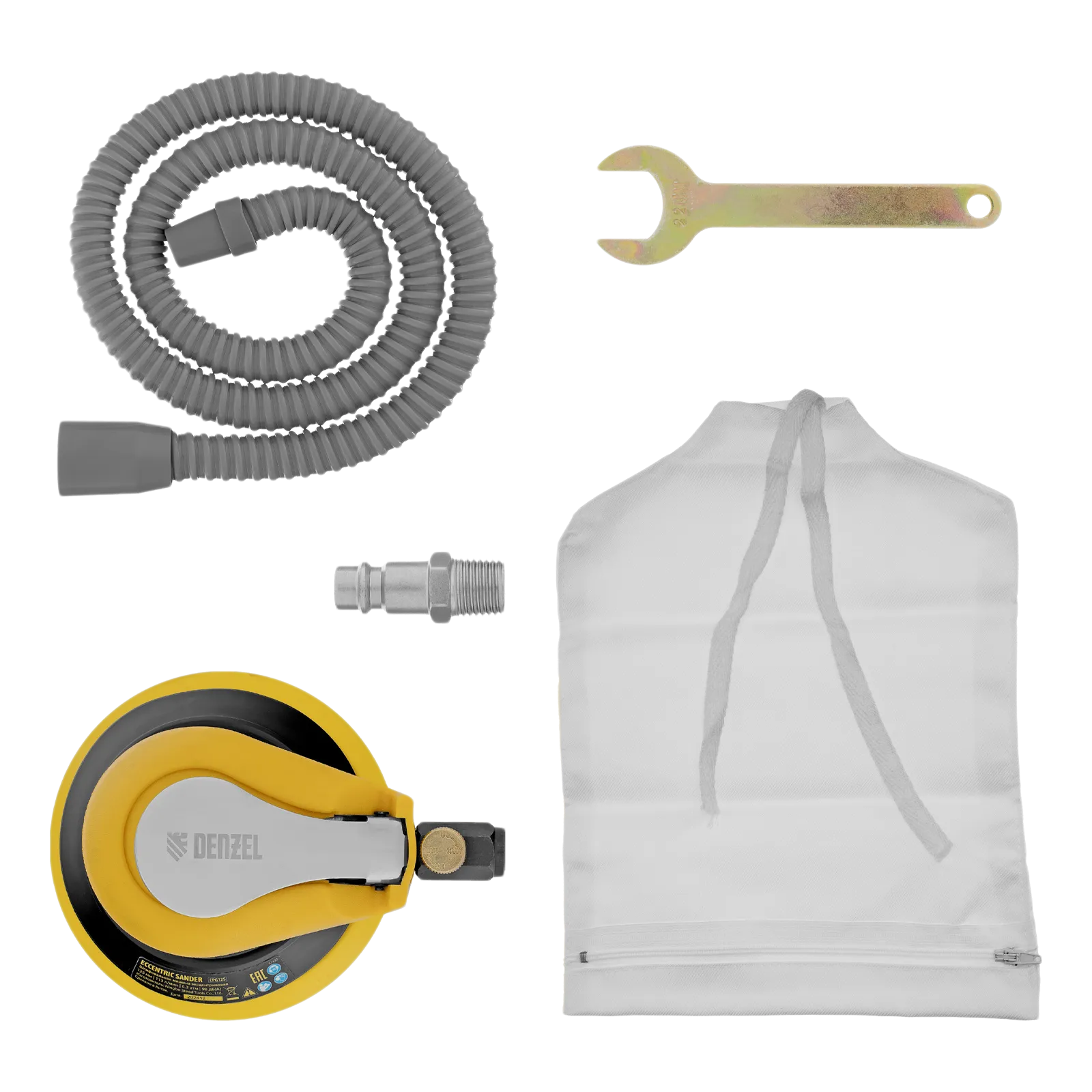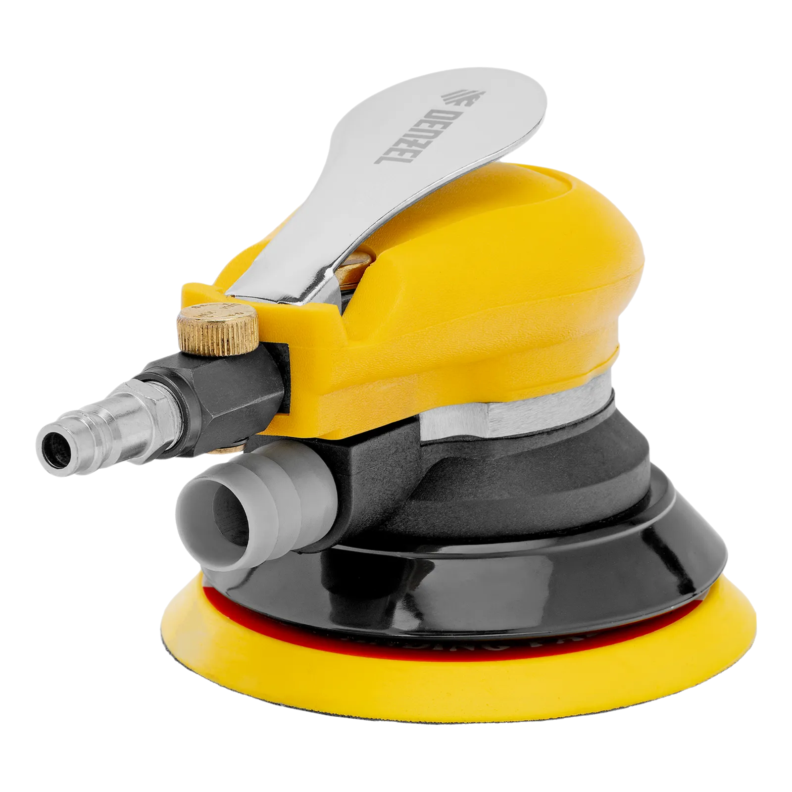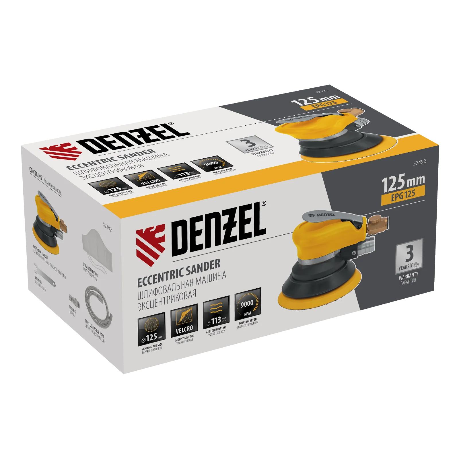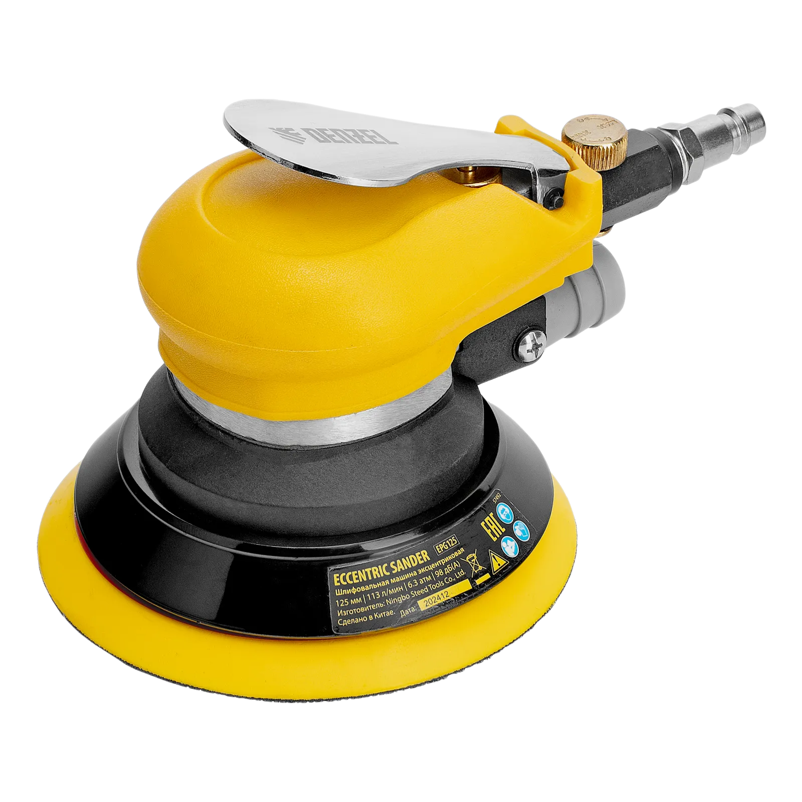 Эксцентриковая шлифовальная машина Denzel EPG125 57492 с амплитудой колебаний 5 мм обеспечивает скорость вращения до 9000 об/мин при среднем расходе воздуха 113 л/мин и давлении 6,3 бар, что делает ее идеальным инструментом для шлифовки и обработки различных материалов. Диаметр подошвы составляет 125 мм, поэтому инструмент оптимален для выполнения работ в труднодоступных местах, а также для детальной обработки небольших поверхностей, что особенно важно при подготовке к покраске и отделке.
