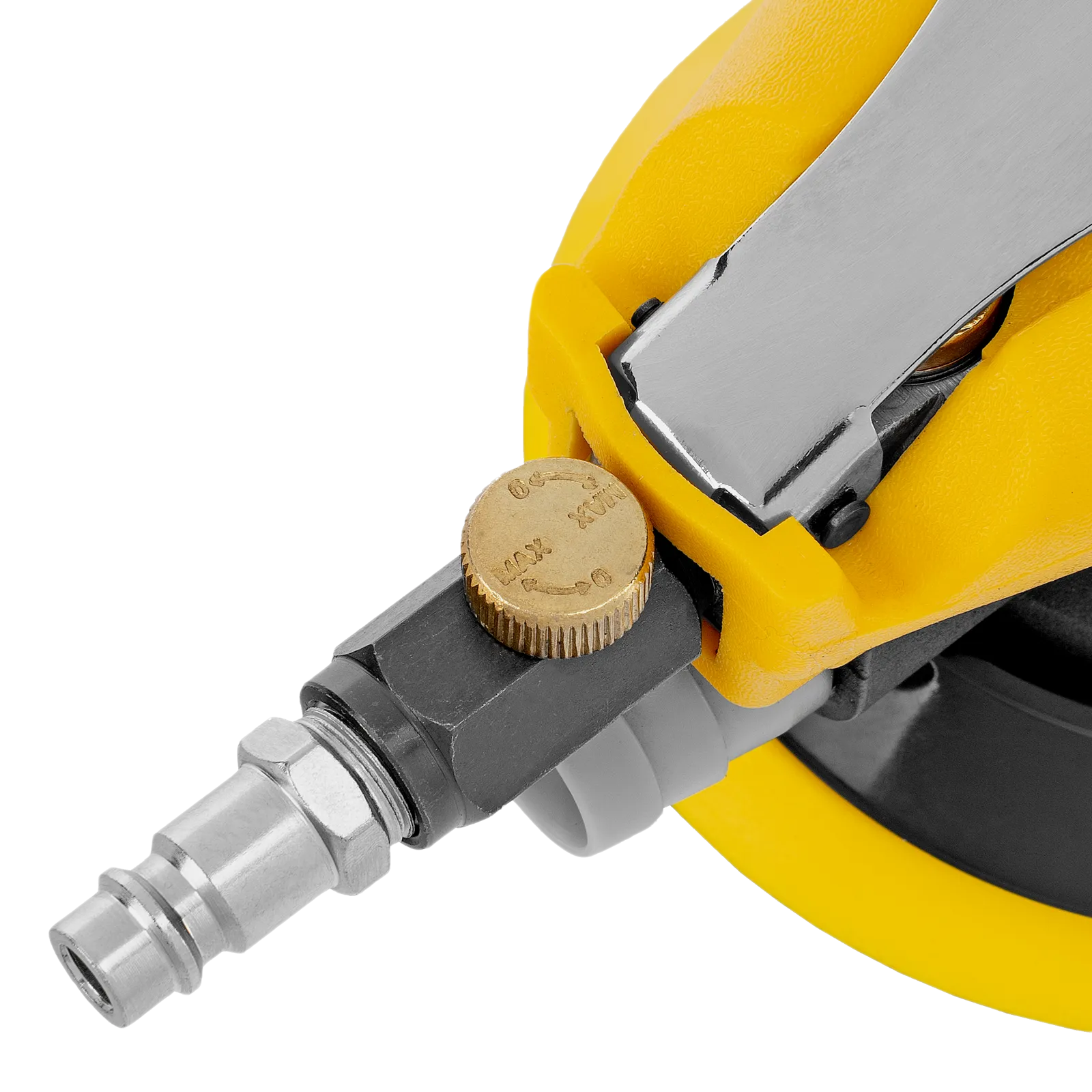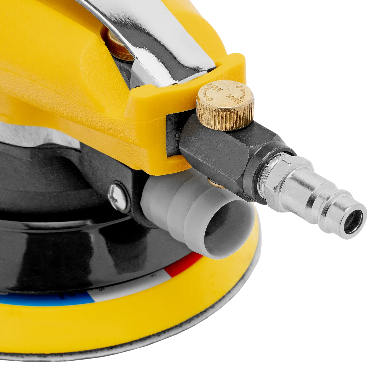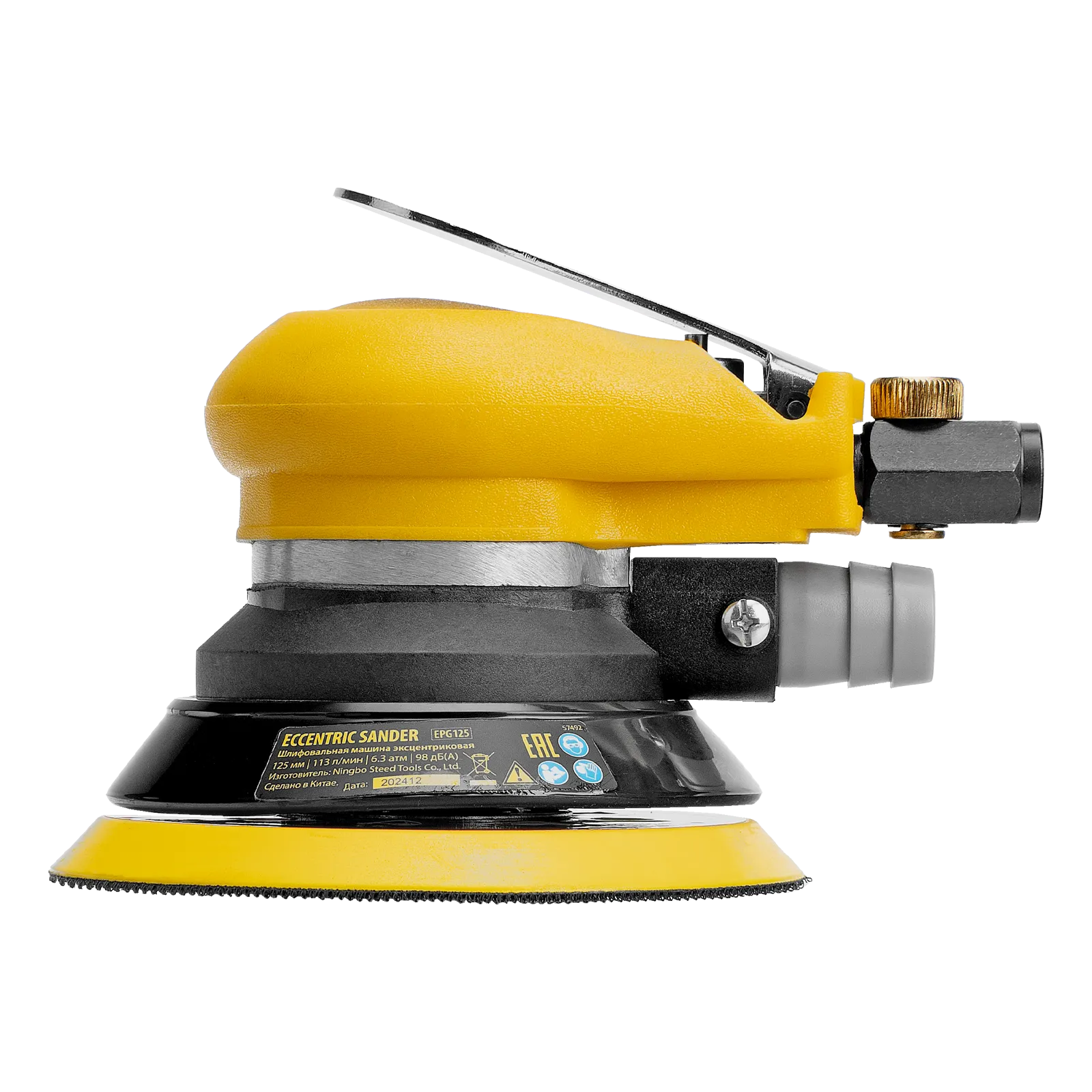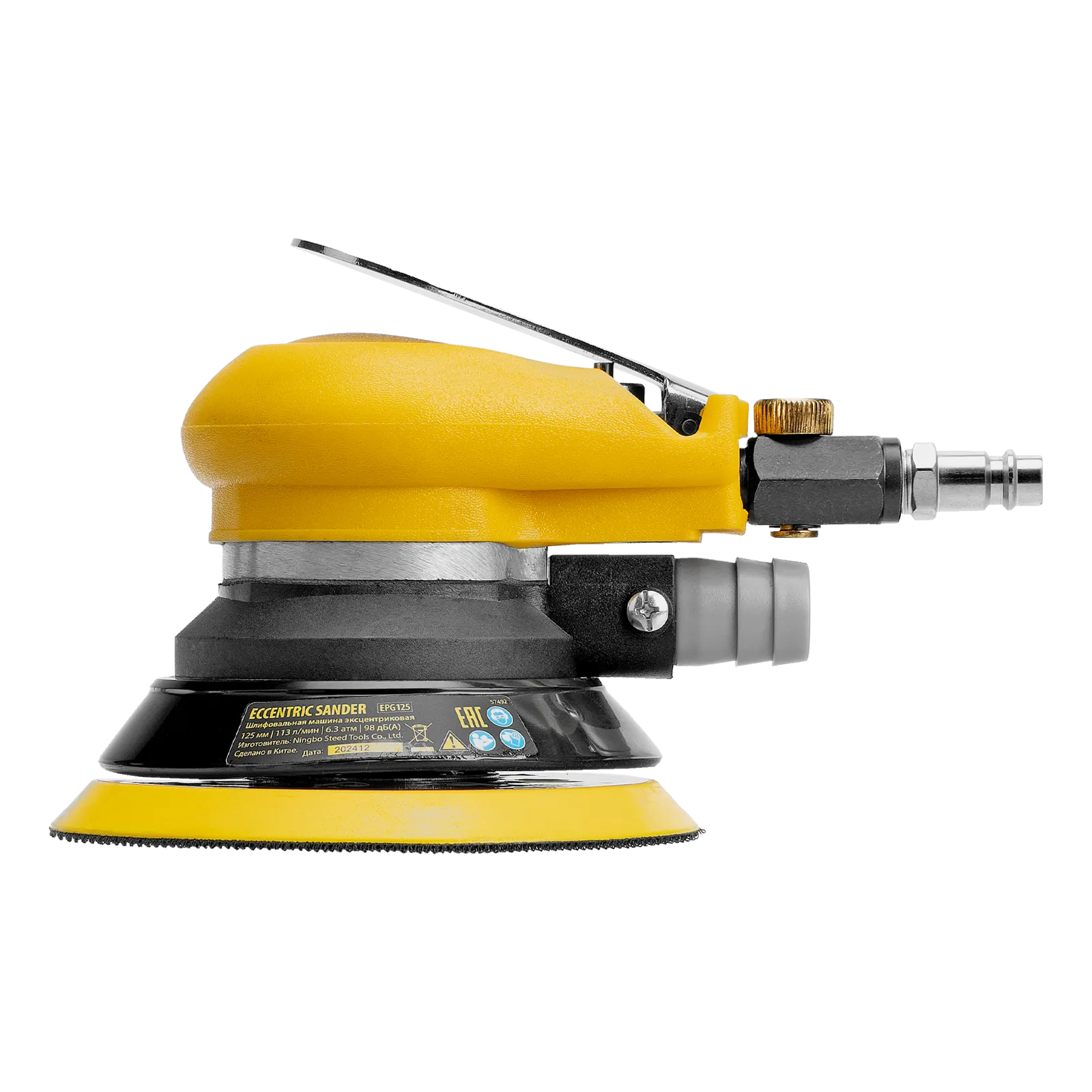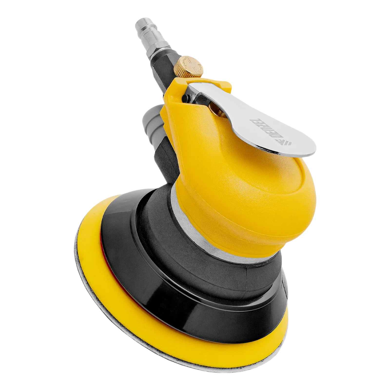 Эксцентриковая шлифовальная машина Denzel EPG125 57492 с амплитудой колебаний 5 мм обеспечивает скорость вращения до 9000 об/мин при среднем расходе воздуха 113 л/мин и давлении 6,3 бар, что делает ее идеальным инструментом для шлифовки и обработки различных материалов. Диаметр подошвы составляет 125 мм, поэтому инструмент оптимален для выполнения работ в труднодоступных местах, а также для детальной обработки небольших поверхностей, что особенно важно при подготовке к покраске и отделке.
