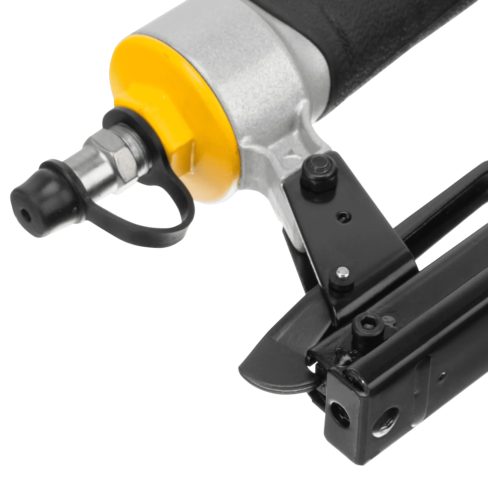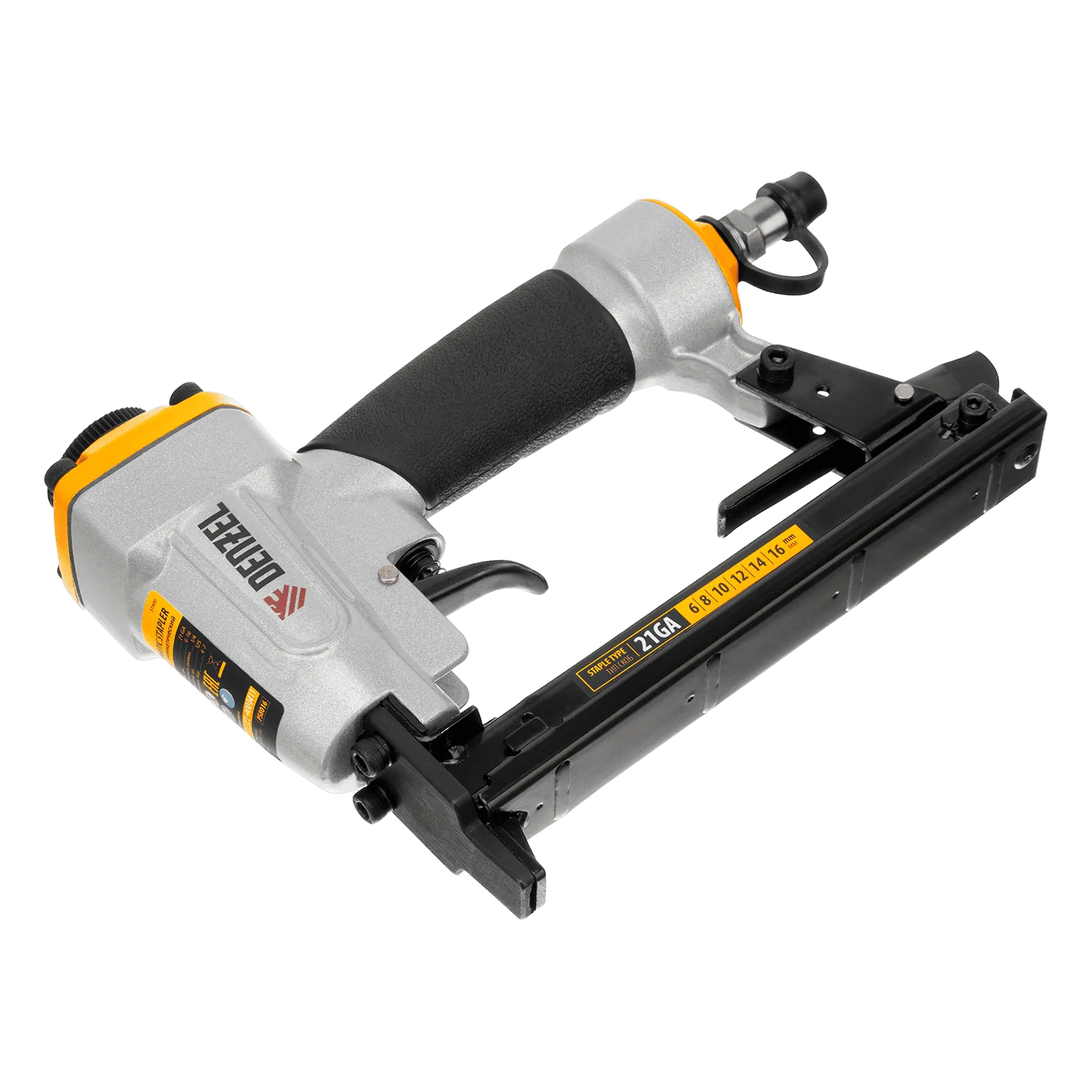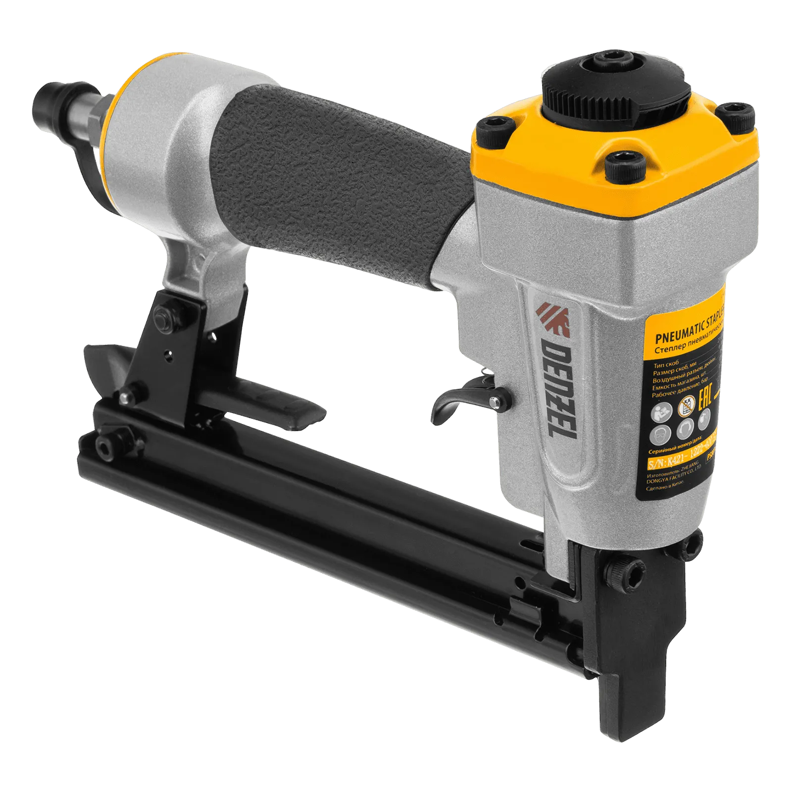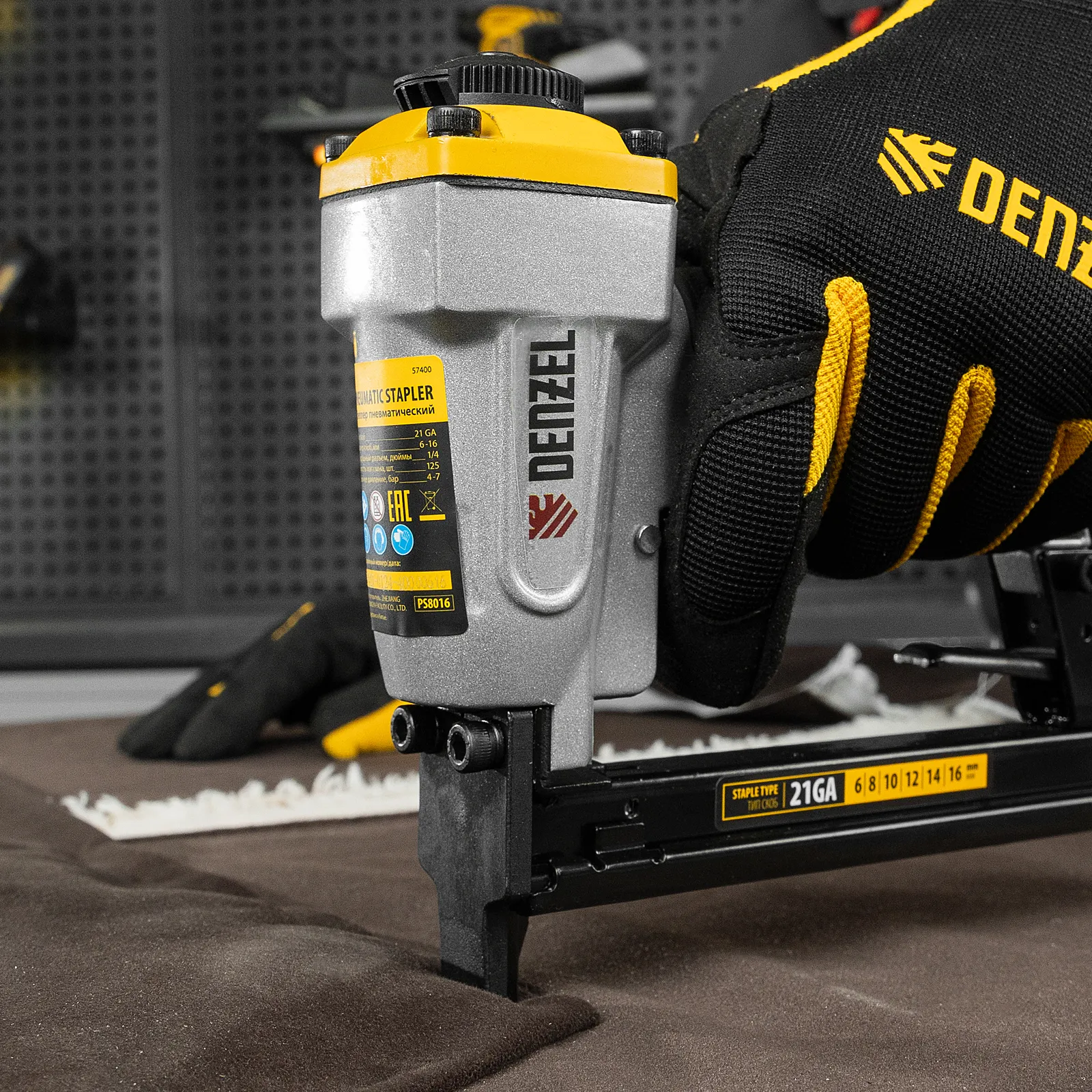 Пневматический степлер Denzel PS8016 57400 предназначен для крепления к основанию листовых материалов при помощи прямоугольных скоб 21GA размером 6-16 мм. Подходит для закрепления фанеры, оргалита, ДСП, обивочной ткани. Незаменим во время отделочных работ и производства мебели.
