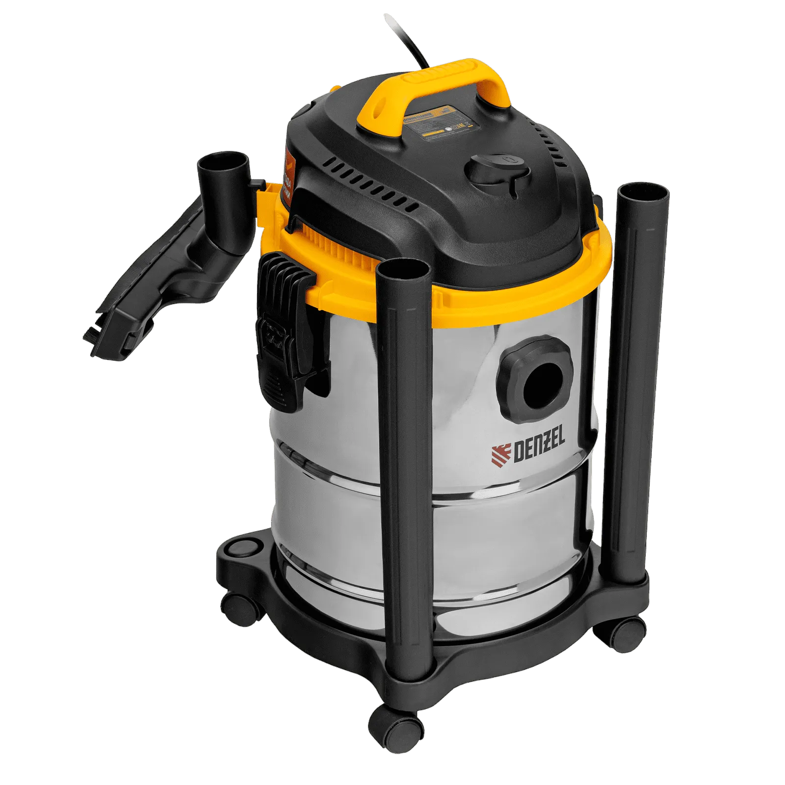 Пылесос строительный Denzel SVC15 28201 мощностью 1200 Вт, с баком объемом 15 л и шлангом длиной 2 м, предназначен для уборки бетонной, кирпичной пыли, опилок, стружки, также предусмотрена функция сбора воды. Пылесос используется во время проведения строительных и ремонтных работ, будет полезен для поддержания чистоты в мастерской, гараже, производственном помещении.