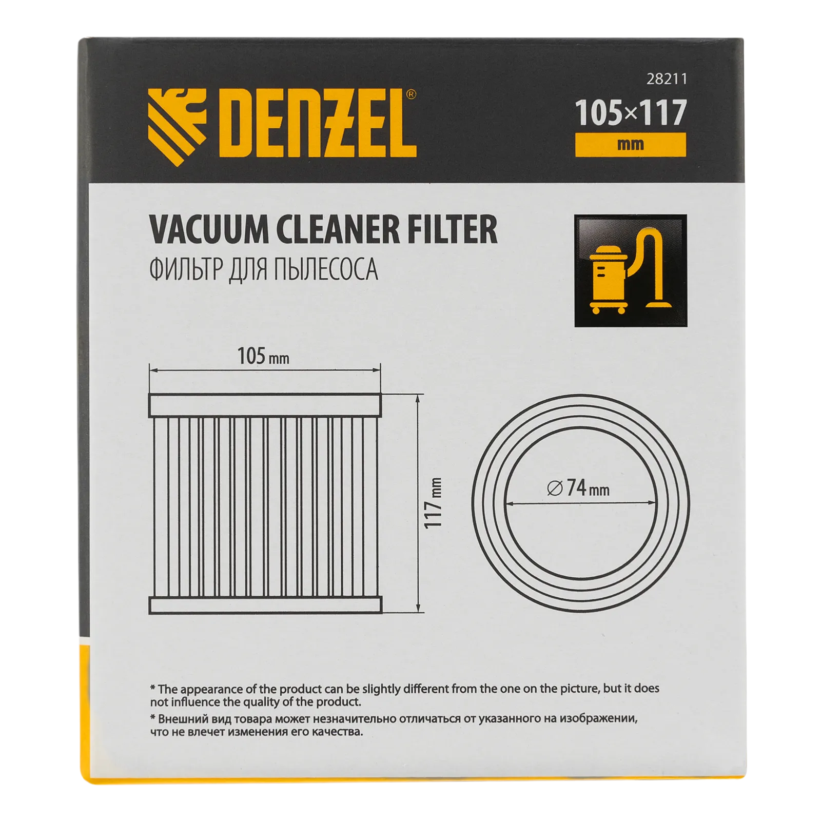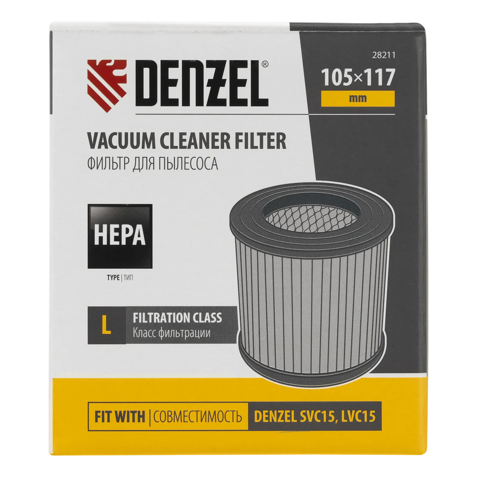 Каркасный складчатый HEPA-фильтр Denzel 28211 совместим со строительными пылесосами SVC15 (28201), LVC15 (28291). Устанавливается на корпус фильтра пылесоса и используется для проведения сухой уборки. Имеет класс фильтрации L, успешно справляется с частичками лака, краски, искусственного камня и т.п.
