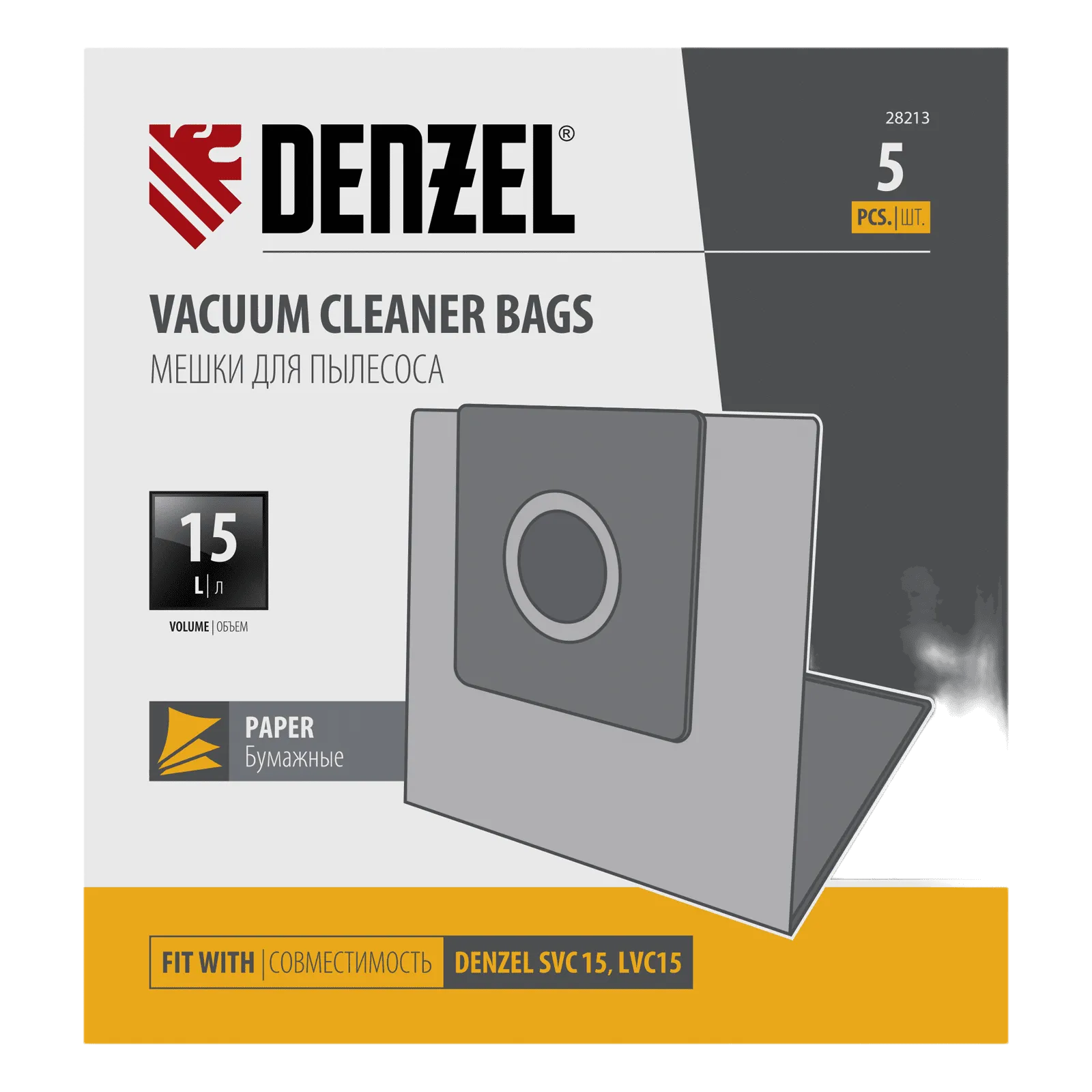 Комплект одноразовых мешков Denzel 28213 представляет собой набор из 5 расходников для строительных пылесосов SVC15 (28201), LVC15 (28291). Мешок объемом 15 л устанавливается в специальное гнездо с внутренней стороны бака и служит для сбора мусора во время сухой уборки.
