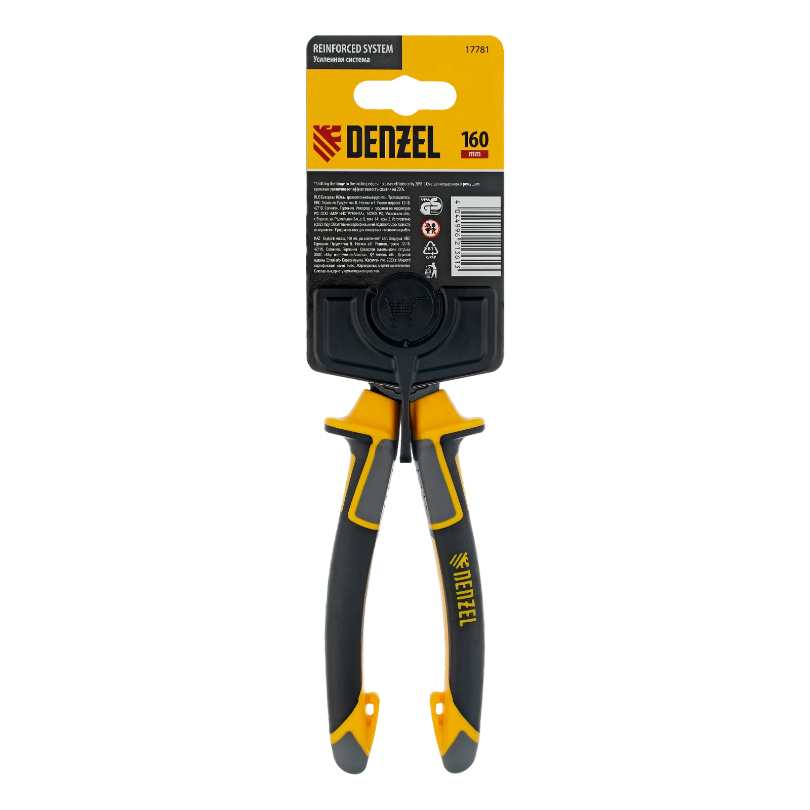 Бокорезы Denzel 17781 длиной 160 мм, с трехкомпонентными рукоятками, предназначены для разрезания кабелей из алюминия и меди, а также проволоки и стяжек. Максимальный диаметр перерезаемой мягкой проволоки (алюминиевой, медной, с пределом прочности 220 Н/мм2) составляет 6 мм, проволоки средней жесткости и гвоздей (750 Н/мм2) — 3,5 мм, жесткой (1800 Н/мм2) — 2 мм. Бокорезы используются для проведения слесарных и монтажных работ. Шарнир смещен к режущим кромкам, что позволяет сэкономить 20% усилий и максимально эффективно решать поставленные задачи.